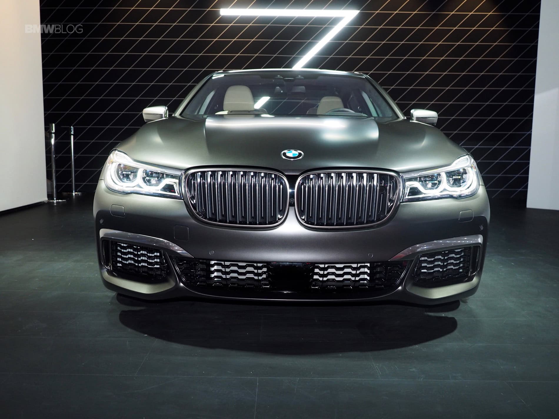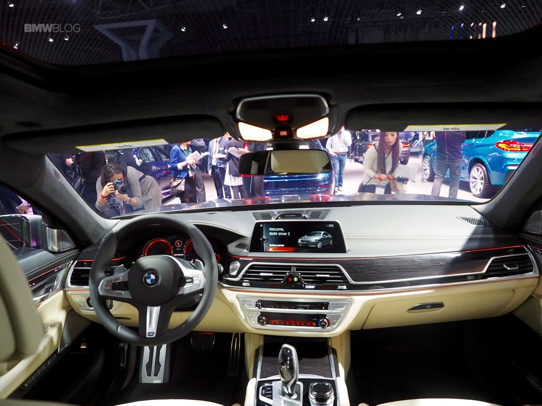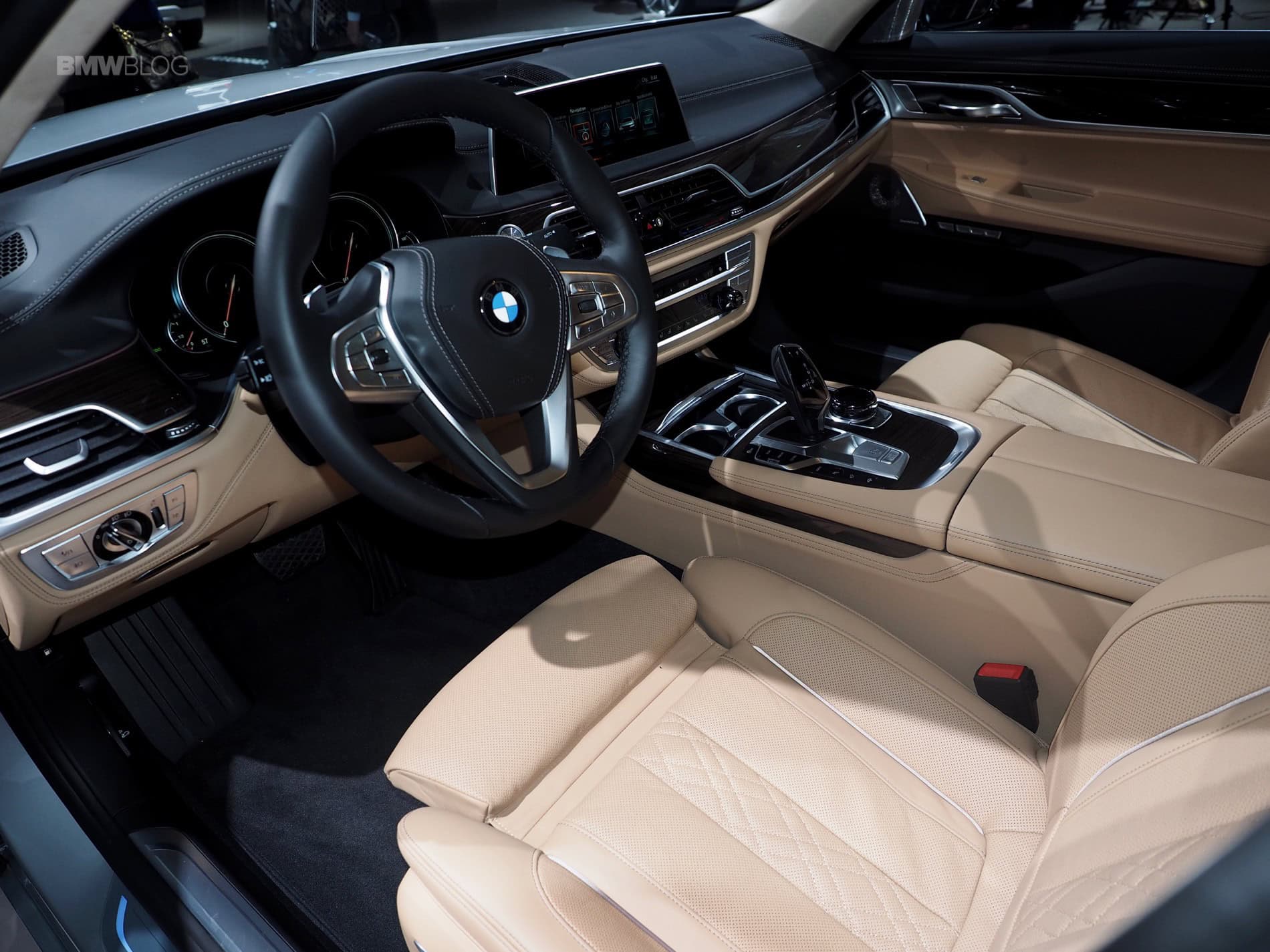 On the interior, Fineline black fine wood interior trim strips with high-gloss metal effect team up with high-quality deep-pile floor mats in the rear compartment and an Alcantara Anthracite headliner to generate a luxurious ambiance. Exclusive Nappa leather trim covers the seat surfaces, seat side sections, head restraints, door cards, center armrests and side armrests to round off the elegant atmosphere in tasteful style. But the biggest change is the new steering wheel which looks fantastic and is clearly a sporting evolution of the 7 Series’ wheel.