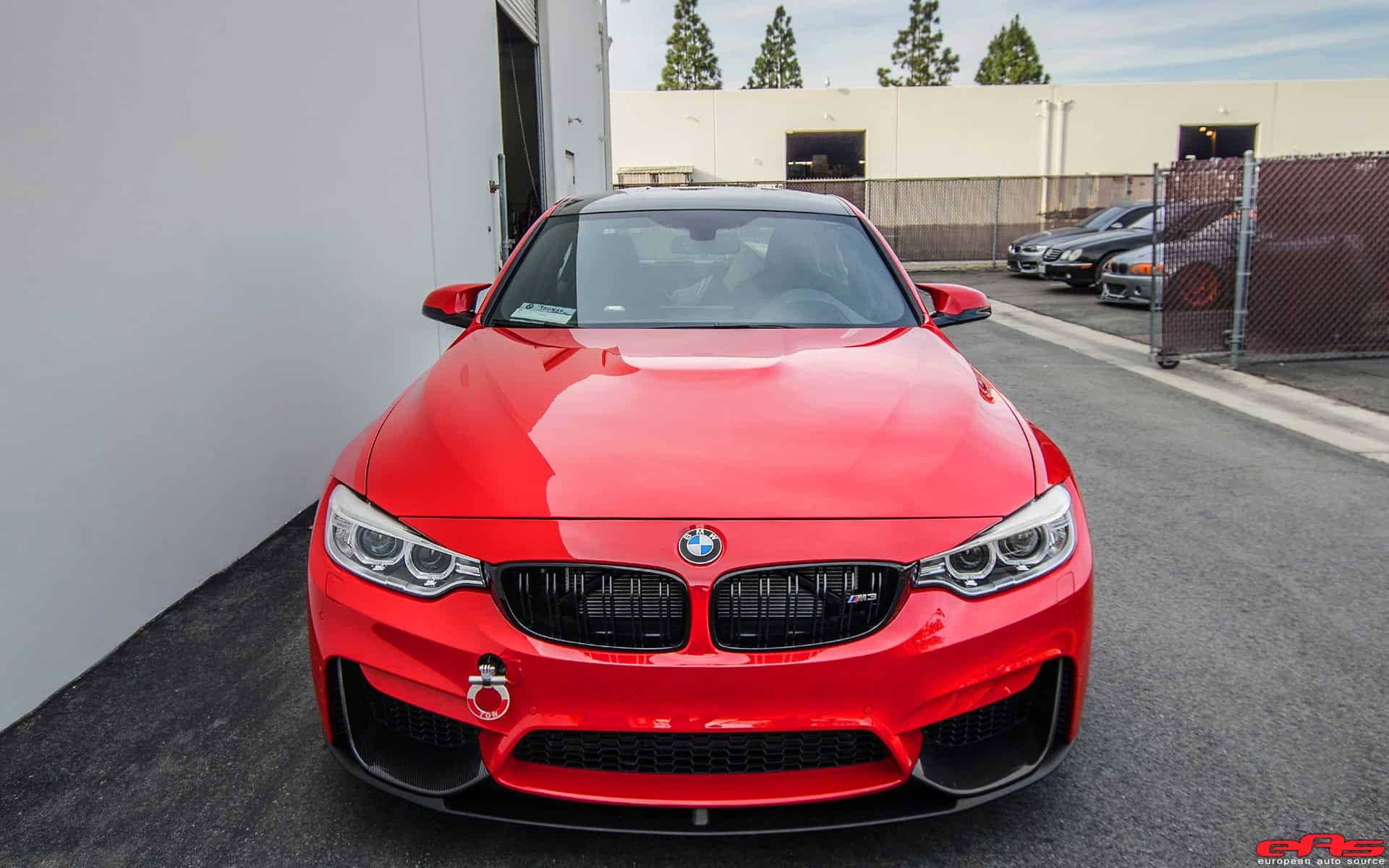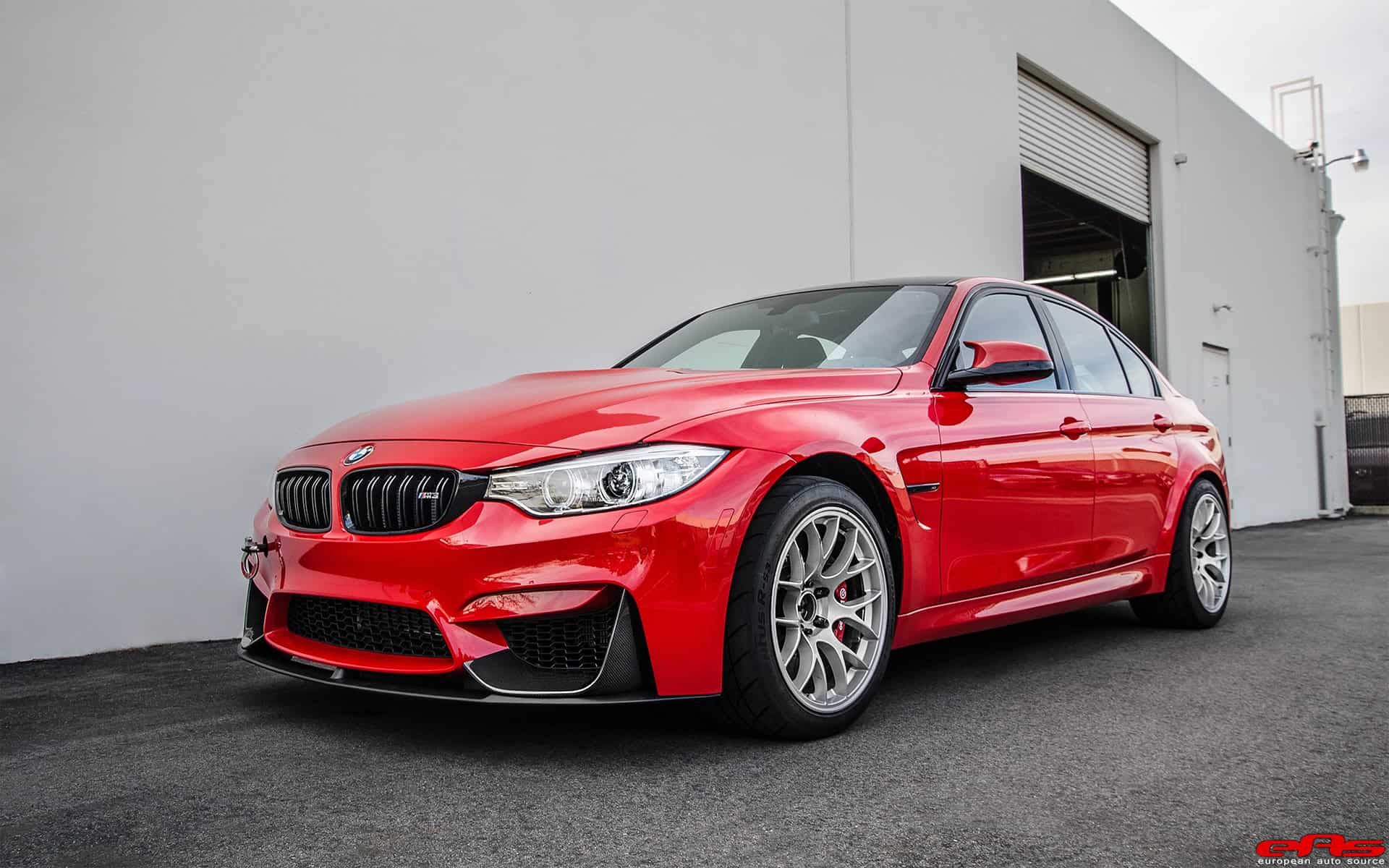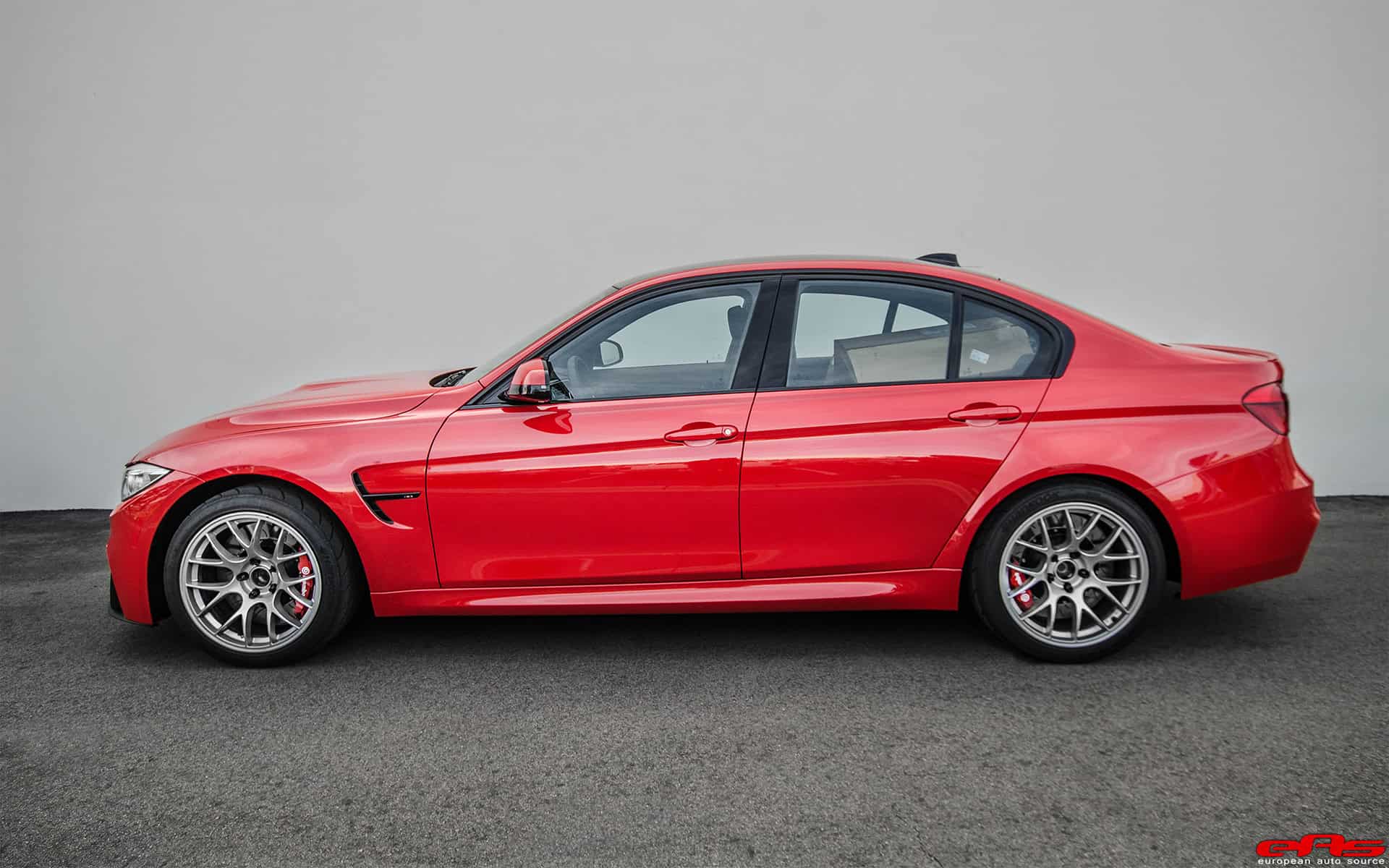 This BMW M3 comes with the standard 3.0 Liter BMW TwinPower Turbo engine delivering 425 horsepower. The power output allows the red beast to travel from 0-62mph (0-100km/h) in just 4.1 seconds and reach a top speed of 155mph (250km/h). This M3 comes with Eisenmann downpipes and an M Performance exhaust yielding more power, better throttle response and a throatier sound overall.