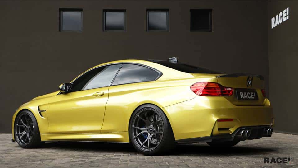 Tuning shop RACE pairs up with California-based aftermarket parts maker Vorsteiner to create a new BMW M4 Coupe project. While the sporty coupe shies away from the full widebody kit designed by Vorsteiner, it still gets plenty of upgrades to make it stand out on its own. This M4 gets an Evo carbon fiber front spoiler lip and rear carbon diffuser insert, paired with side skirts and aftermarket wheels.