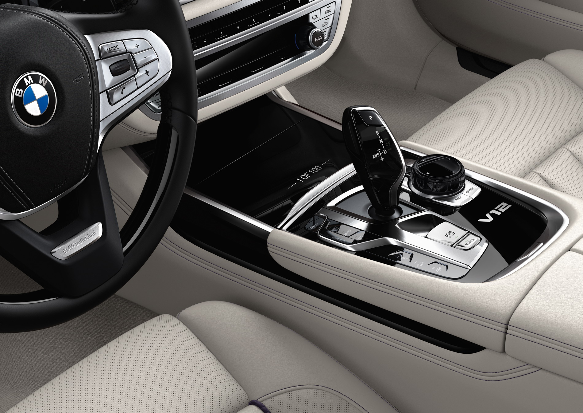 The two other engine variants featured in the BMW 7 Series centennial models are due to be launched during the BMW Group’s anniversary year. The plug-in hybrid luxury sedan “BMW Individual 740Le iPerformance THE NEXT 100 YEARS” (“BMW Individual 740Le xDrive iPerformance THE NEXT 100 YEARS”), the BMW eDrive technology of which is based on expertise gained from the development of BMW i automobiles, will boast path-breaking efficiency. A four-cylinder petrol engine featuring BMW TwinPower Turbo technology and a synchronous electric motor deliver a total system output of 240 kW/326 hp*. The “BMW Individual 740Le iPerfomance THE NEXT 100 YEARS” (with xDrive) achieves an average fuel consumption of just 2.1 litres per 100 kilometres* and fuel exhaust emissions of 49 grams per kilometre* (combined fuel consumption: 2.3 l/100 km, 53 g/km*) (figures as per EU test cycle using standard tyres).