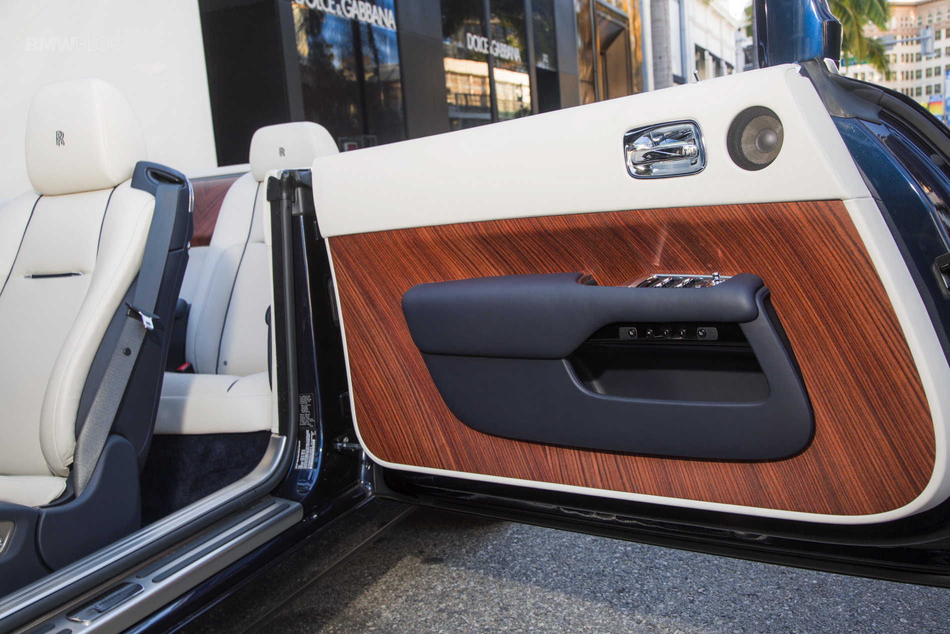 Now it’s time to see our Dropheads for the day. In front of the hotel, Rolls-Royce displayed four Dawn models with their own character and bespoke configuration. Spahn goes on to describe this new car as the most uncompromised open-top motoring experience in the world, and the quietest open-top car ever made. Even though the Dawn is based on the Wraith, 80 percent of the Dawn’s body panels are new and it even gets some new interior bits to differentiate itself. The sills are thicker to allow for body strengthening and there are hidden roll hoops behind the rear headrests that pop out in the event of what would have to be a stupendously enormous car crash.