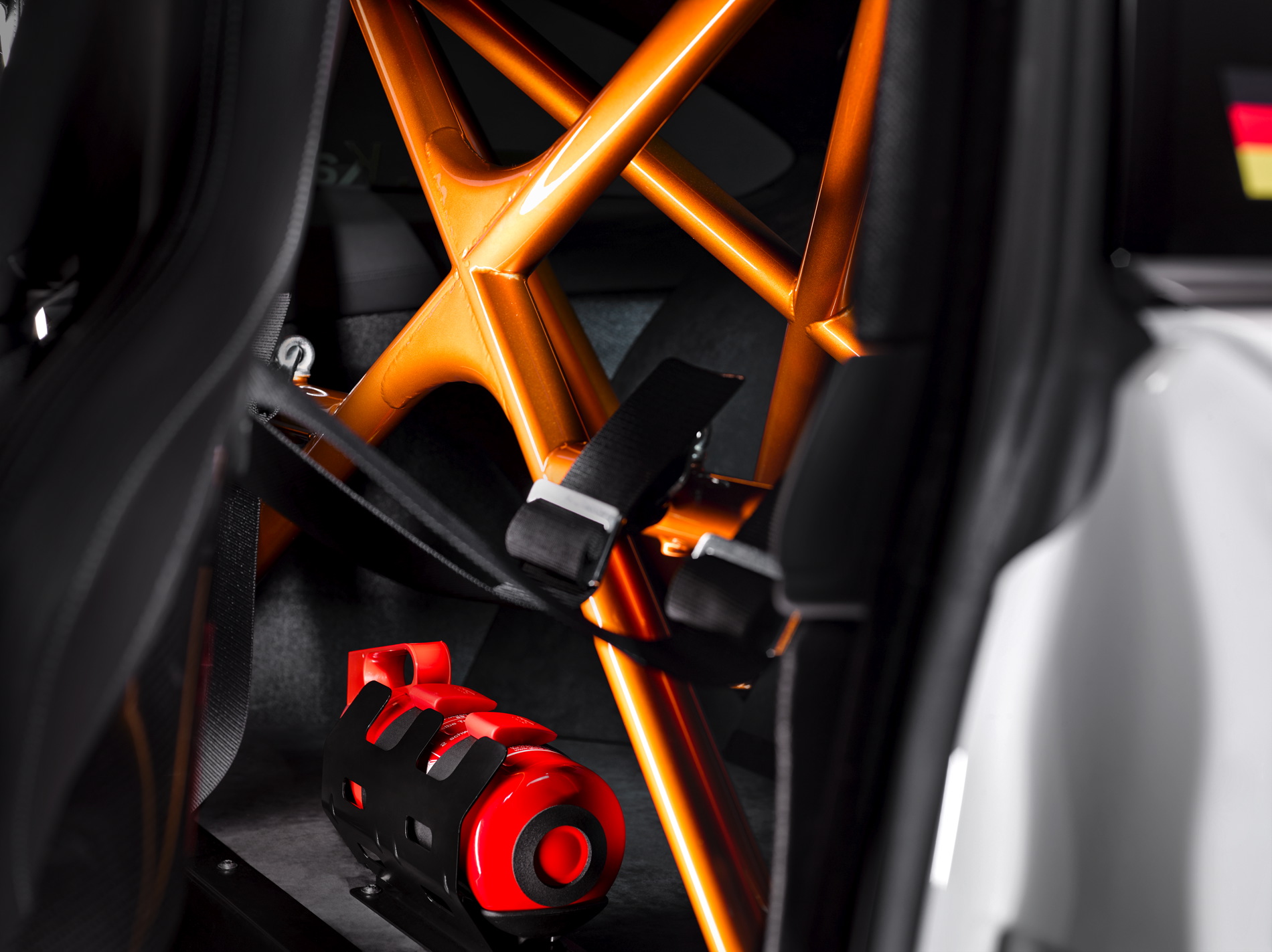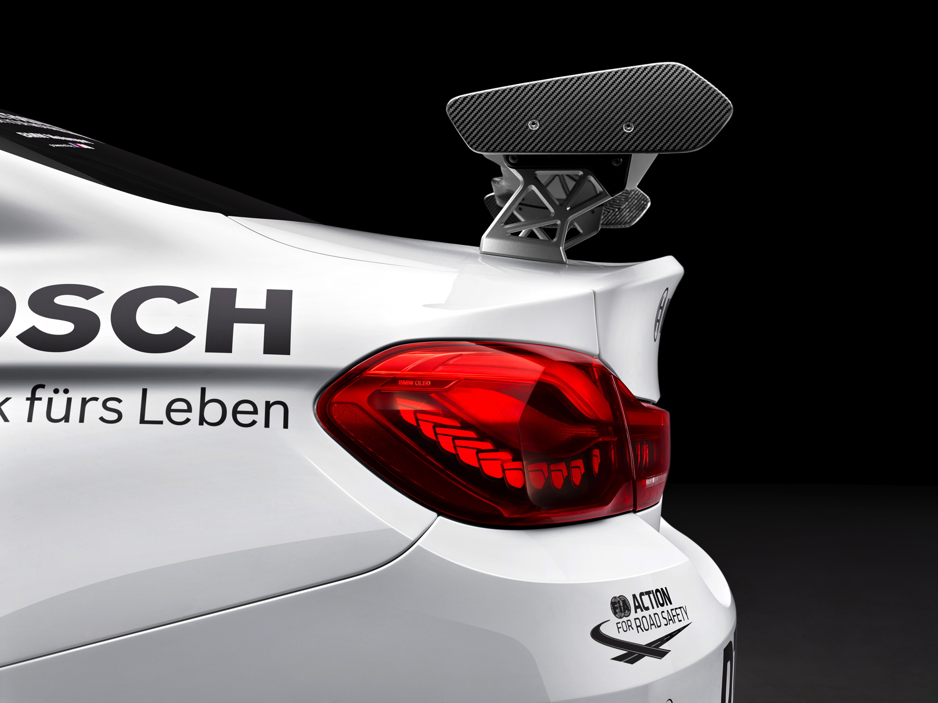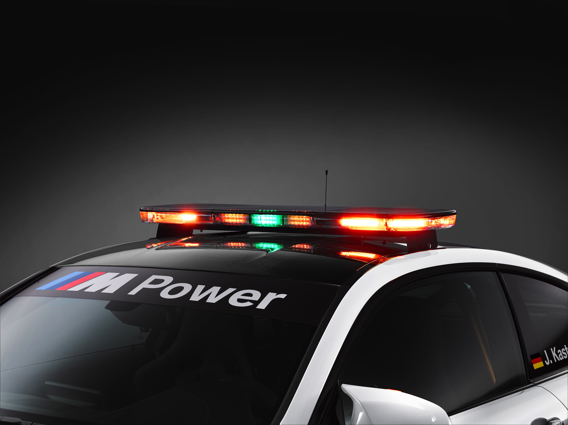 Moreover, the mandatory safety features for the DTM safety car are already fitted: in the form of the optional Clubsport Package – available for the BMW M4 GTS at no extra cost – including an Acid Orange roll bar located behind the front seats, 6-point seat belts especially adapted for racing and a fire extinguisher. Therefore, to render the car suitable for DTM racetracks, it was only necessary to install the specific safety car light system with an LED light bar on the roof, LED flashers in the distinctively designed front apron as well the flash mode function for the LED headlamps. Clearly visible “DTM Safety Car” stickers and a radio installation for interference-free communication between the safety car crew and the race control were also added.
