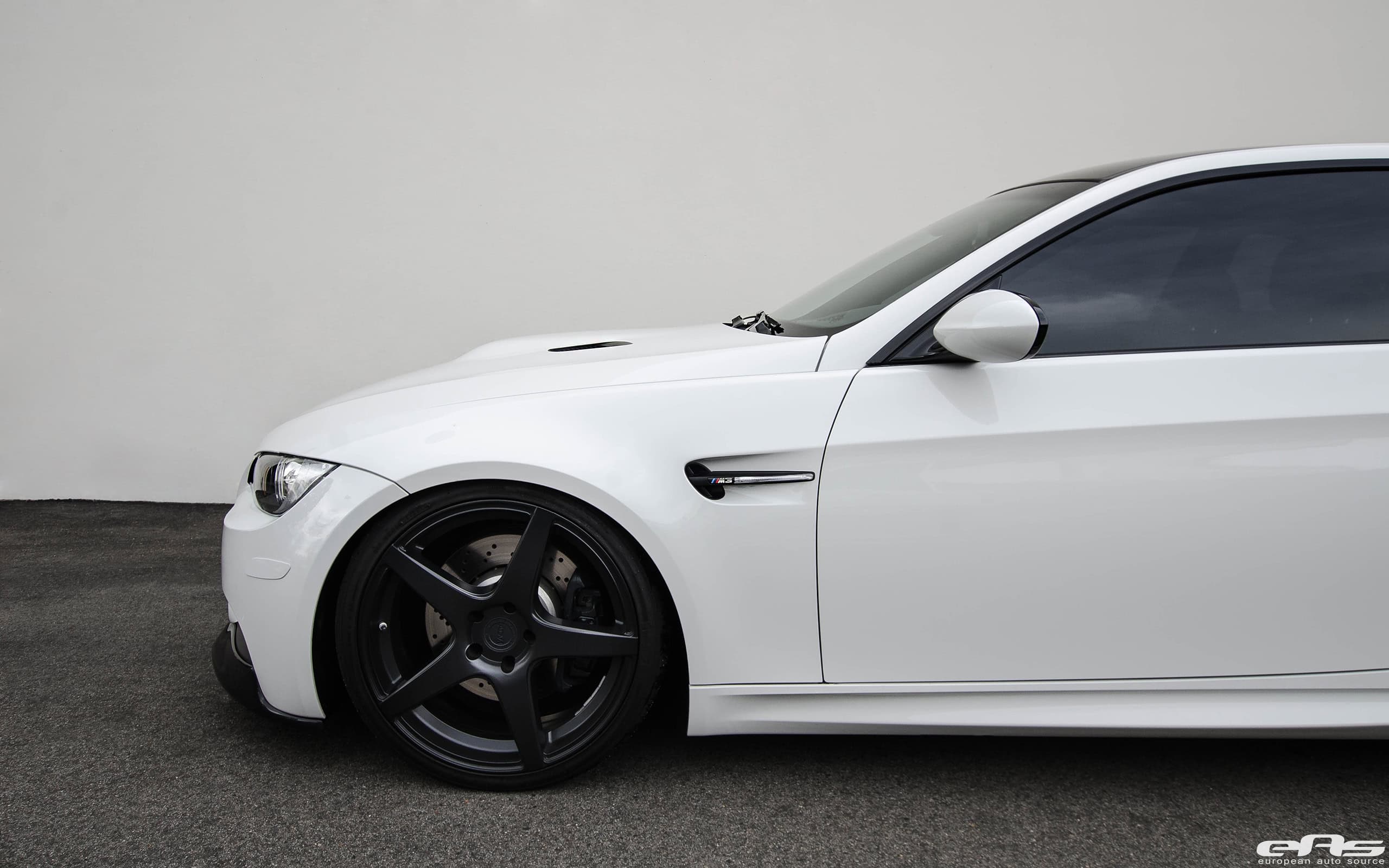 The owner of this BMW E92 M3 decided to take his M3 over to European Auto Source for some aggressive upgrades. First, this Alpine White M3 received a set of ADV1 5 MV.1 Wheels. The wheels utilize a five-spoke design, not often seen on a BMW. The M3 was lowered so the wheels now fit properly on the car.