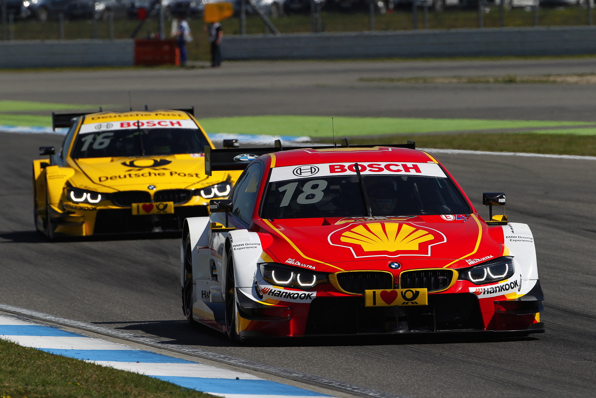 BMW Motorsport claimed its first podiums of the year in race two of the 2016 DTM season, which was the 50th race since BMW returned to the DTM in 2012. Starting from sixth place on the grid in the DEUTSCHE POST BMW M4 DTM, Timo Glock (DE) fought his way through to finish runner-up at the Hockenheimring (DE). Augusto Farfus (BR) was third in the Shell BMW M4 DTM, having started from the front row in second place. Victory went to Paul di Resta (GB, Mercedes).