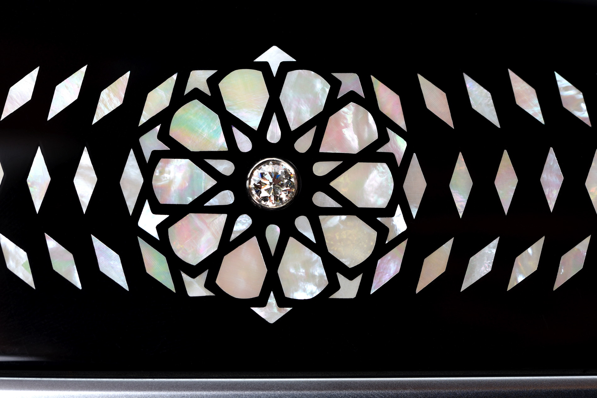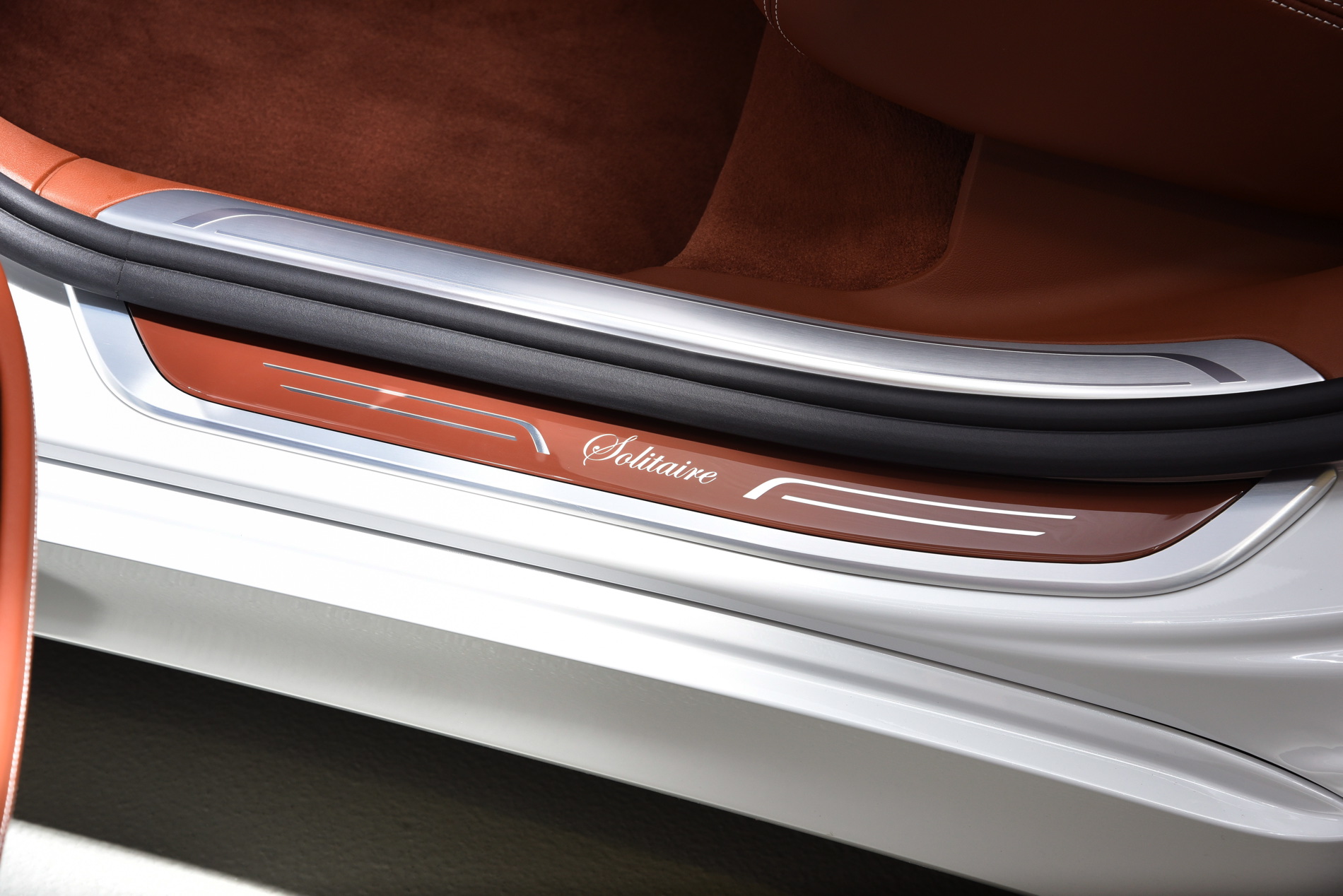 A bar compartment with tulip sparkling wine glasses and an integrated cooling box in the rear compartment center console are available for refreshments, whilst a silver-plated plaque on the center console discreetly informs passengers that they are traveling in a highly exclusive edition model that has been produced only seven times. However, the highlight of these special edition models are undoubtedly the five optional diamond inserts in the interior trims on the dashboard and doors.