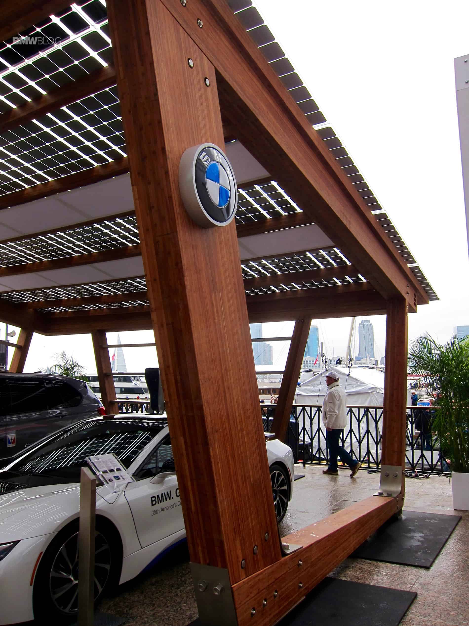 During the recent America’s Cup Yacht Race in New York City, the America’s Cup Village highlighted BMW’s i Solar Carport where it converted solar energy to charge a BMW i8 and a BMW X5 xDrive40e hybrid. The BMW Designworks Solar Carport is made out of bamboo, solar panels and marine grade stainless steel to create a gorgeous, sustainable and functional structure.