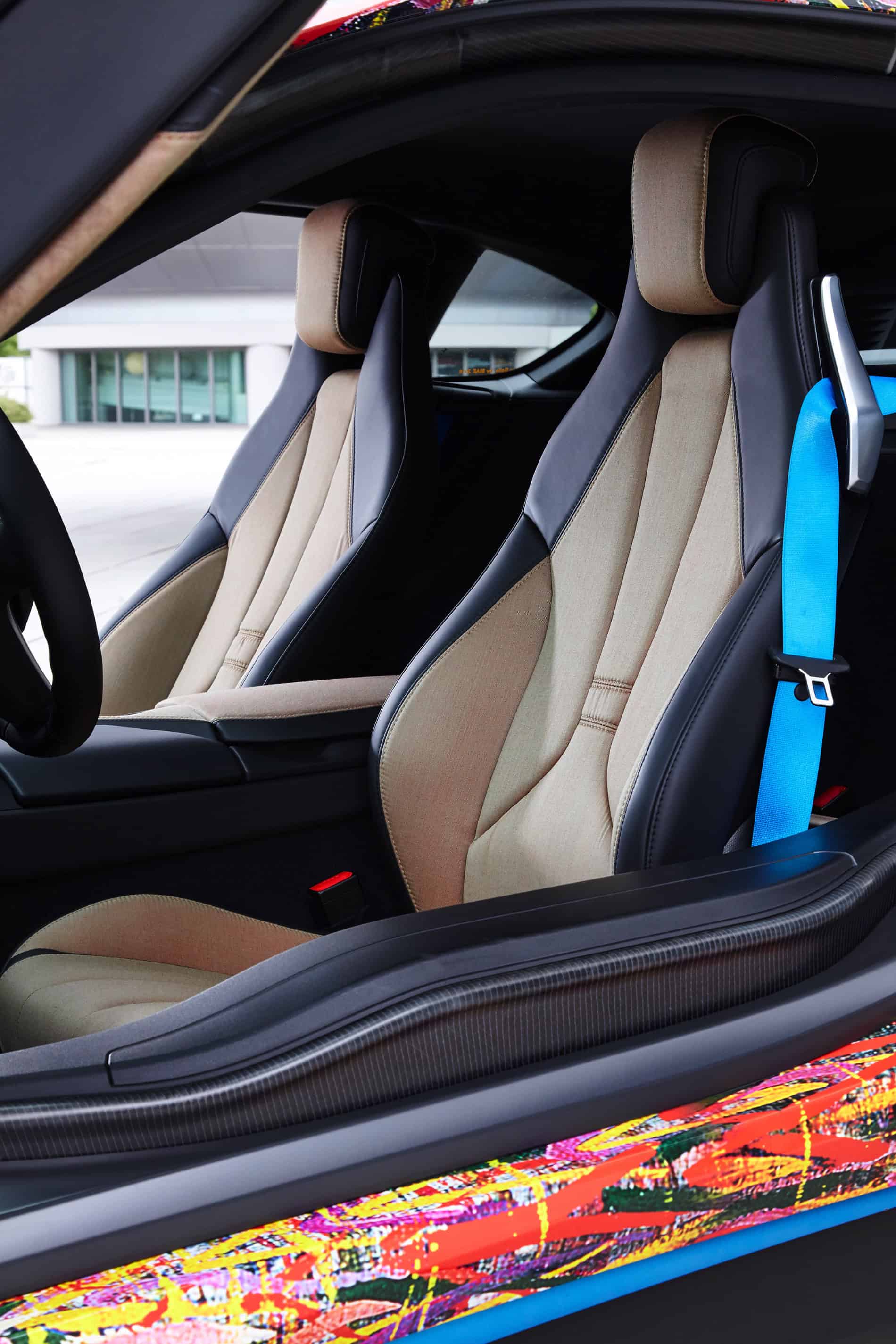 “Lampada ad Arco”, the work of Giacomo Balla, is replicated on the car. The original painting hangs in the Museum of Modern Art in New York. It represents a street lamp powered by electricity under moonlight. The revolutionary color technique and the advent of electricity in the 1900s are strictly linked to the future technology of the BMW i8. The upholstery in the interior shows iridescent reflections when hit by light and is made by Solaro, a fabric that is used for suits.