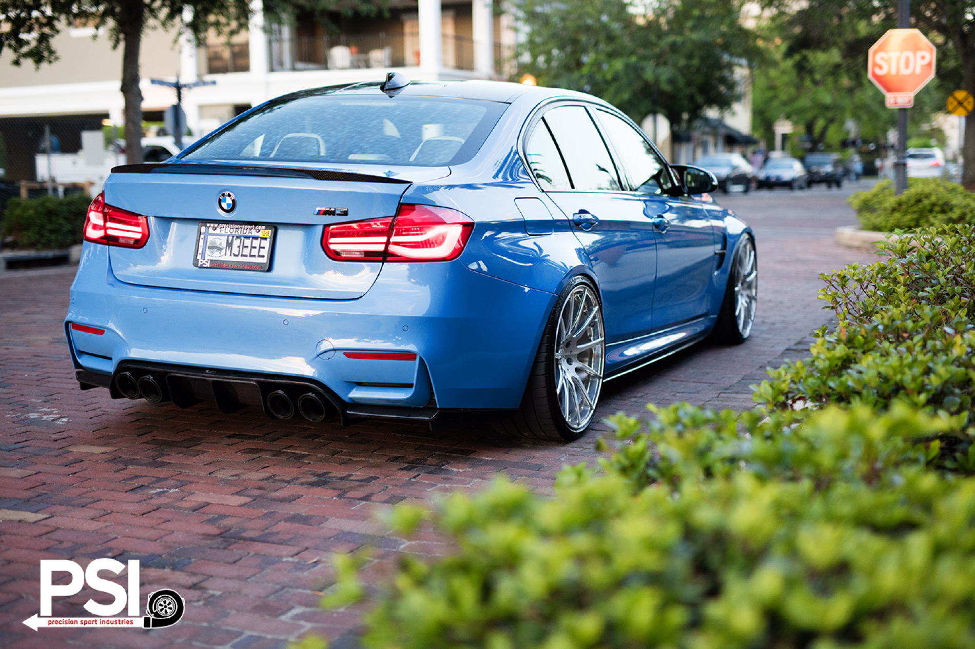 When most people think of the Florida coast, ocean breezes, palm trees, white sand, and that clear blue water all spring readily to mind. Incidentally, the BMW Yas Marina Blue offered on their new M3 and M4 is rumored to be named after the brilliantly colored runoff areas at the Yas Marina Abu Dhabi F1 Circuit, and when PSI’s customer Joe went hunting for his second F80, this was a theme he wanted to pursue. Not one to sit idly by on the modification front, he immediately contacted the team at PSI to see about topping his previous Austin Yellow build, and they tuning shop was powerless to resist.