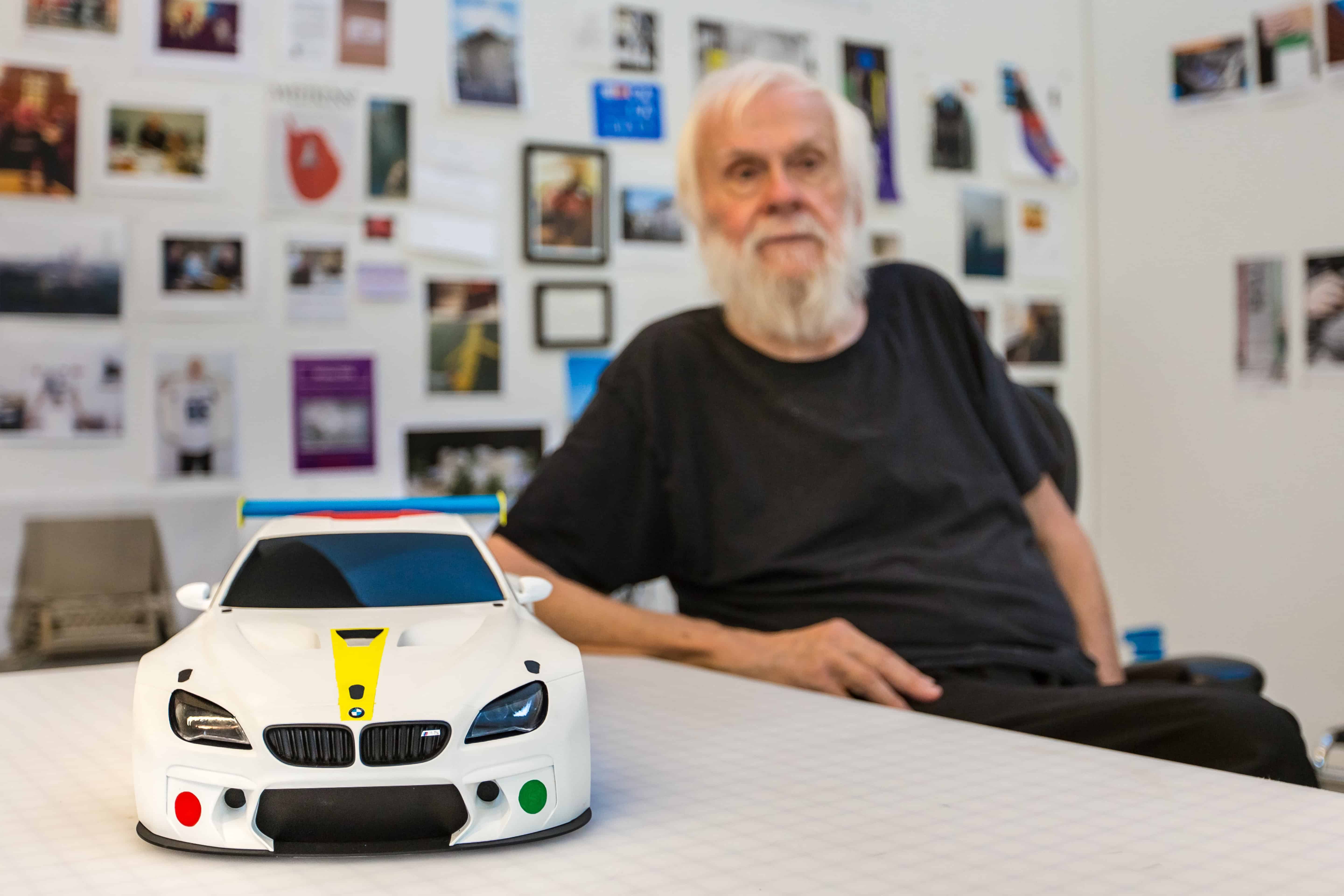 As for John Baldessari, he is an icon of American conceptual art who tends to use primary colors like red, yellow or blue. All this is reflected in his first design study for the BMW Art Car – which demonstrates his fascination for the multidimensionality and typography of the car as an object.