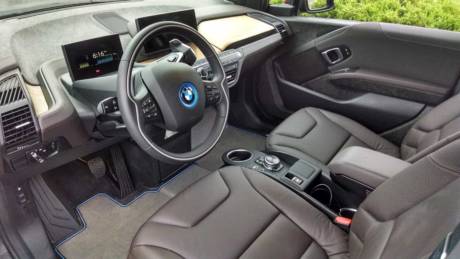 The 94 Ah BEV will list for $44,595 and the REx will now cost $48,350. Comfort Access and the Universal remote garage door opener are standard on the 94 Ah i3. To get them on the 60 Ah i3, you need to upgrade to the Giga World package. So that alone helps to close the $1,200 gap in pricing between models. The much anticipated moonroof is available as an option on both models for $1,000, but it’s not available on the 60 Ah model. The 94Ah i3 has a new standard trim called Deka World. With the standard Deka trim, as mentioned above, the Turbine 429 style wheels are standard, as is the Deka Dark cloth, an interior not previously offered in the US although it had previously been offered as the standard interior on European i3s.