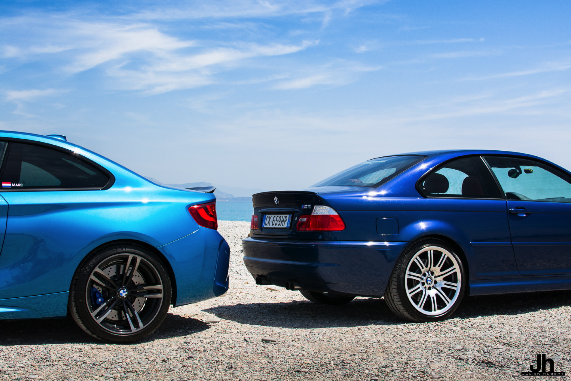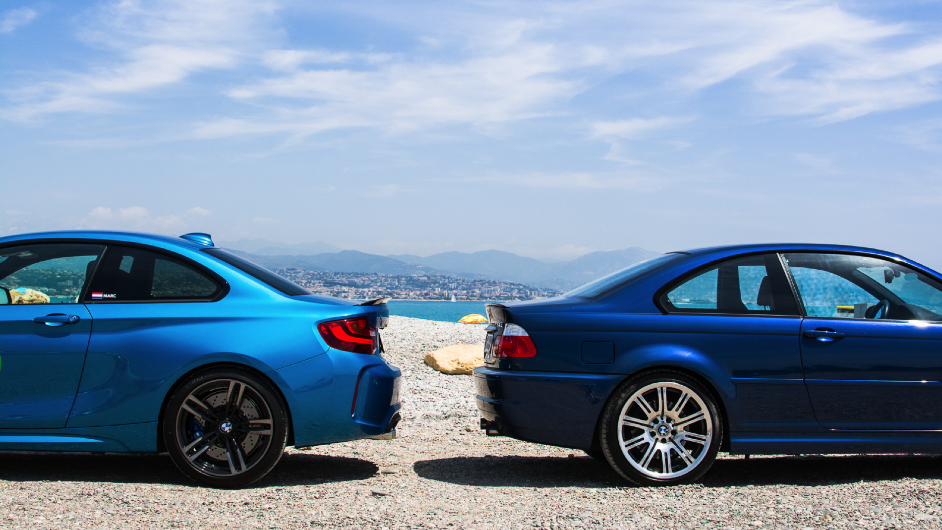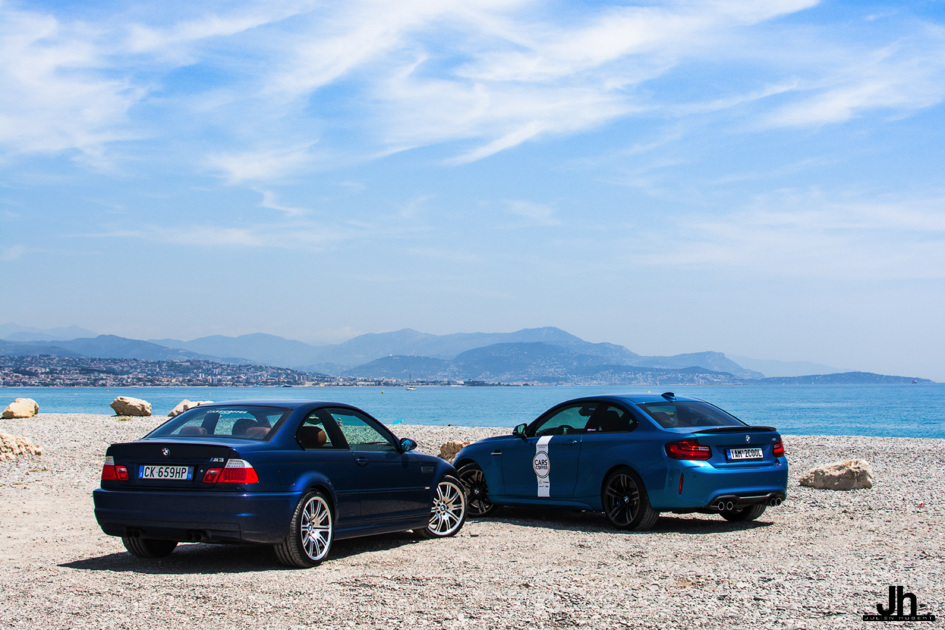 From a beach near Antibes in the Cote d’Azur comes an intriguing photoshoot featuring the all-new BMW M2 and the E46 M3. While the M2 was often referenced in the same sentence as its spiritual predecessor – the E30 M3 – it’s the E46 M3 which is closer in character to the M2. Both cars are similar in size, shape, engine size, power, weight and look, and they both have a large following of BMW fans.