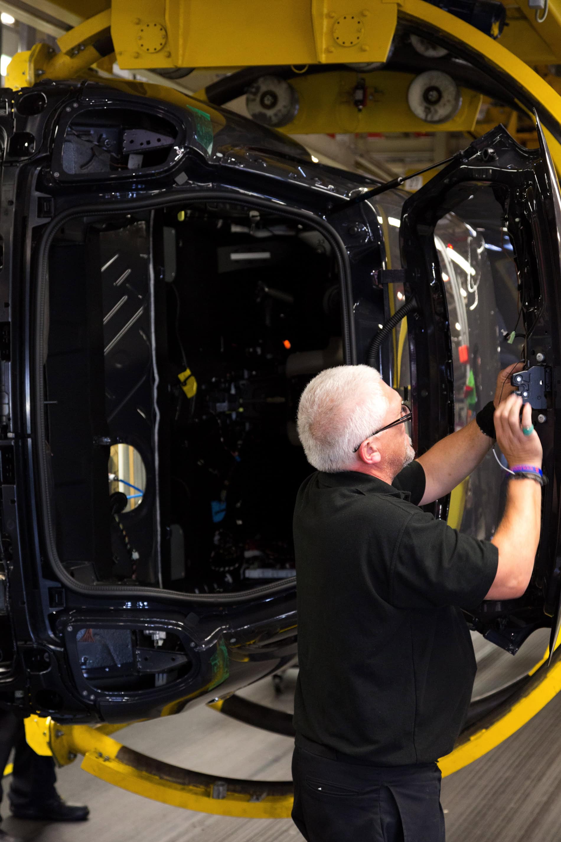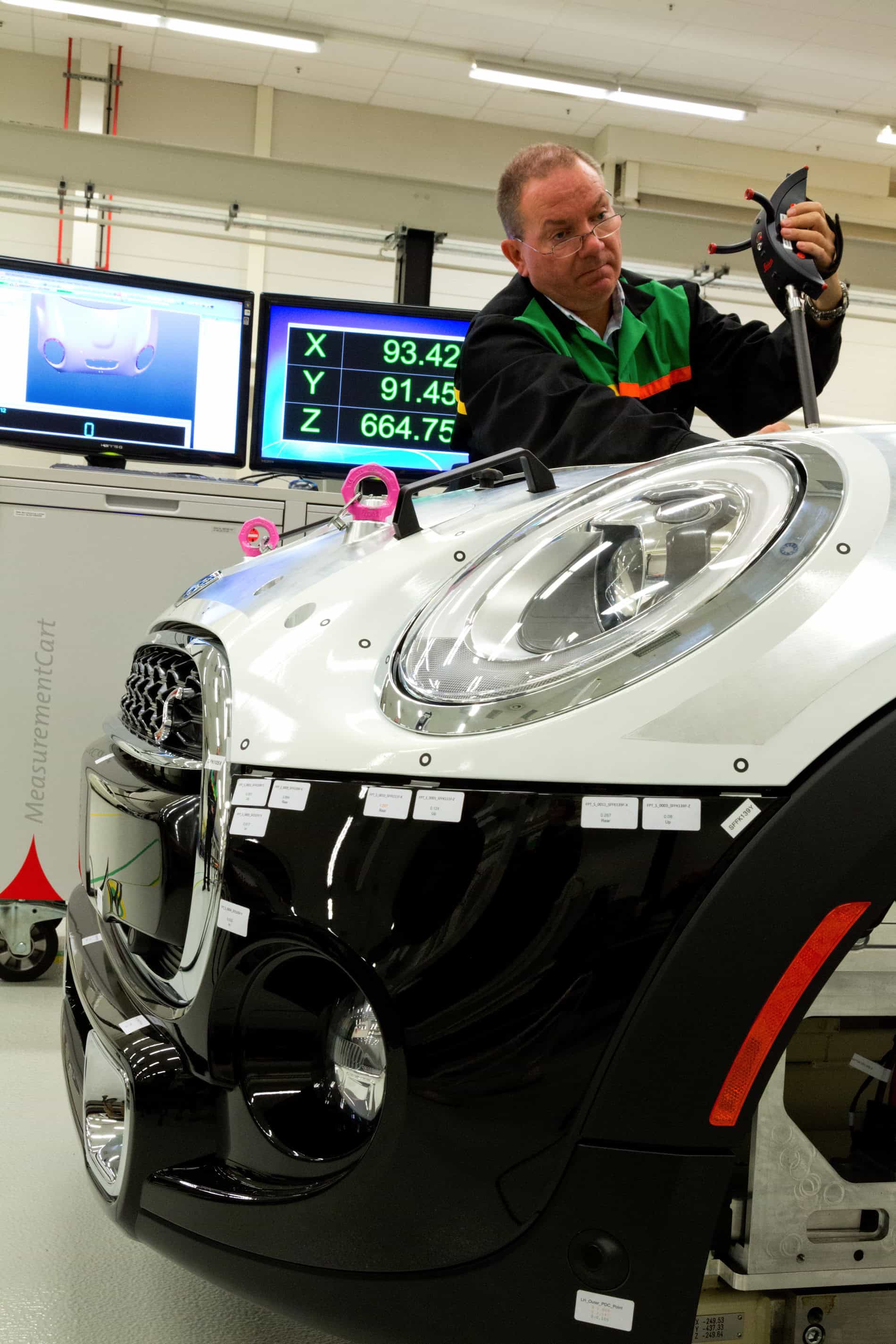 However, the Oxford plant is just one third of the MINI production. A MINI plant in Swindon produces body panels for both MINI and BMW and a plant in Hams Hall produces engines for both MINI and BMW. But it’s the Oxford plant where all of the magic happens. It’s home to to final assembly, where all of the body pieces get welded, screwed and riveted together. Accuracy of every single body is measured by Perceptron cameras which measure to a tolerance equal to half the width of a human hair. There are 500 Perceptron measuring points.