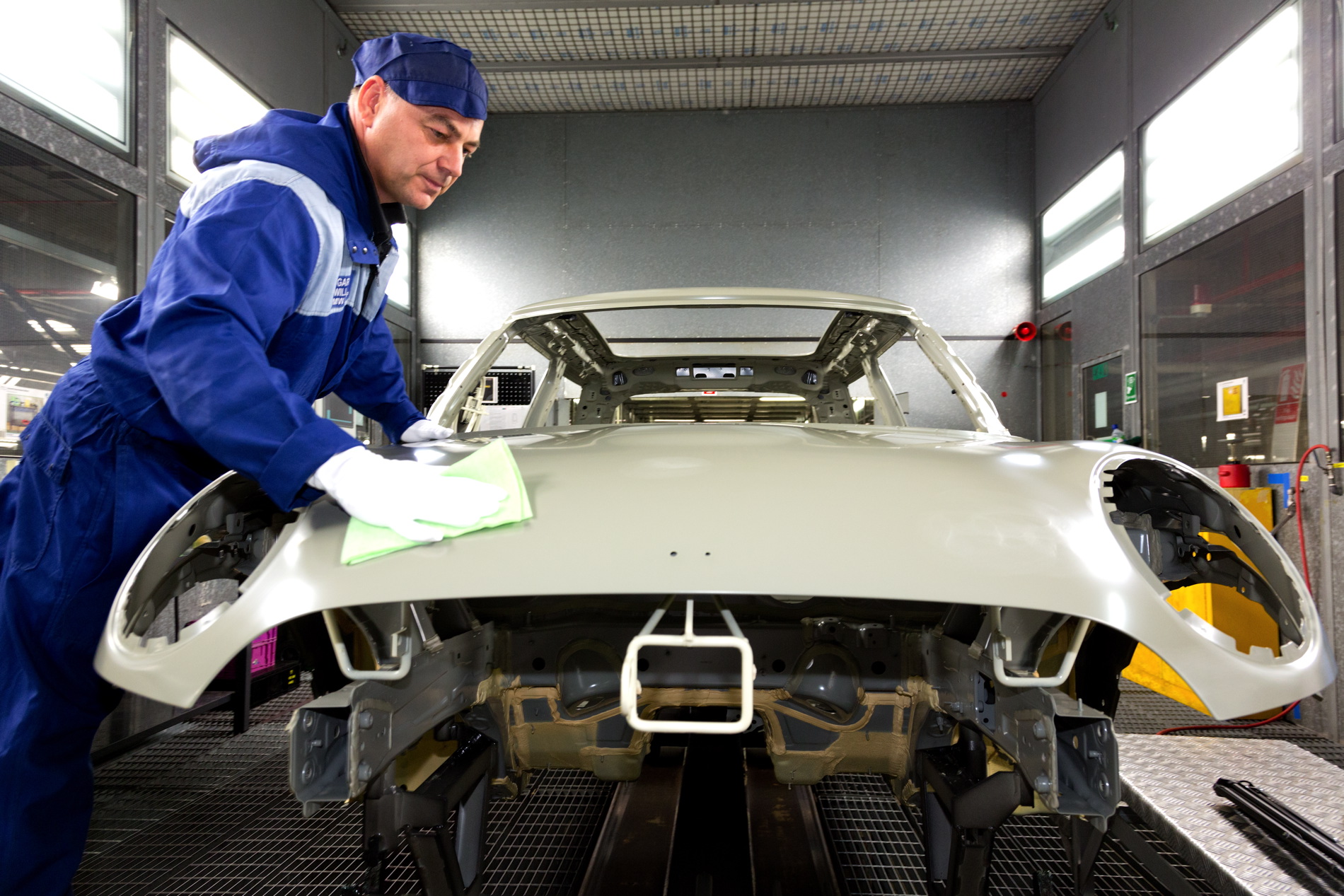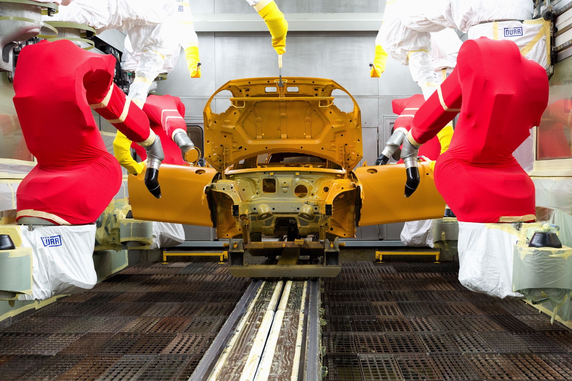 After that, the newly assembled body-in-white is ready for paint. The MINI Oxford plant holds the first paint shop worldwide to use an IPP, integrated paint process. Car bodies are painted in bulk and sorted by colour, not by model and it takes 15 seconds to change colors. MINI employees take such car to rid the freshly painted cars of dust and dirt that they use ostrich feathers, as they’re extremely soft and fine.
