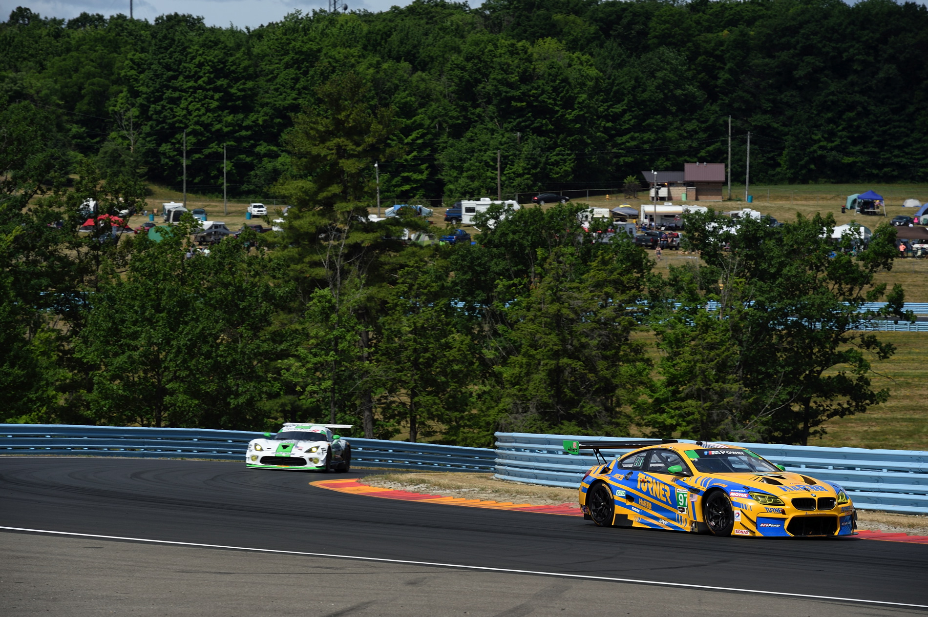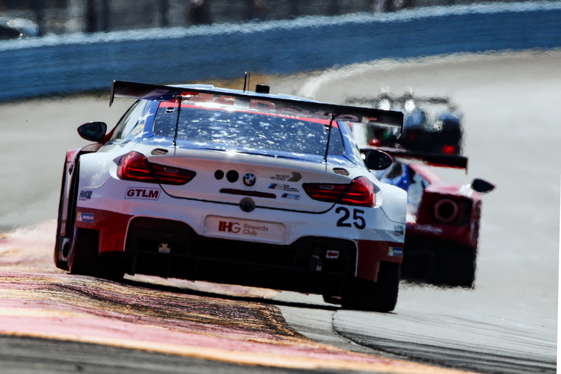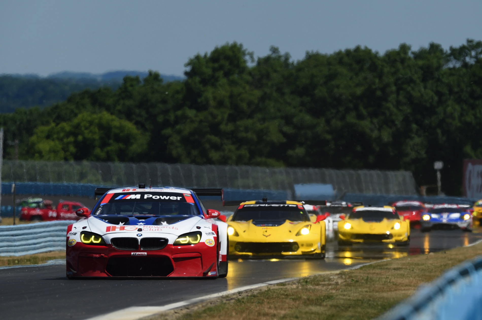At the start Edwards jumped from his third place starting position to take the GLTM class lead as the field snaked through the uphill esses after taking the green flag. He surrendered the lead a few laps later, ultimately dropping to the rear of the class after a problem during a pit stop in the race’s first caution period. Werner, after a flawless stop by the No. 25 M6 crew, had the lead of the GTLM class as the race finished the first hour. Just before the second hour both Werner and Edwards relinquished their seats to Auberlen and Edwards during green flag stops. Auberlen continued in the class lead and Luhr moved up to the fifth spot after quick pit work. At the race’s mid-point Auberlen and Luhr still held the first and fifth positions.