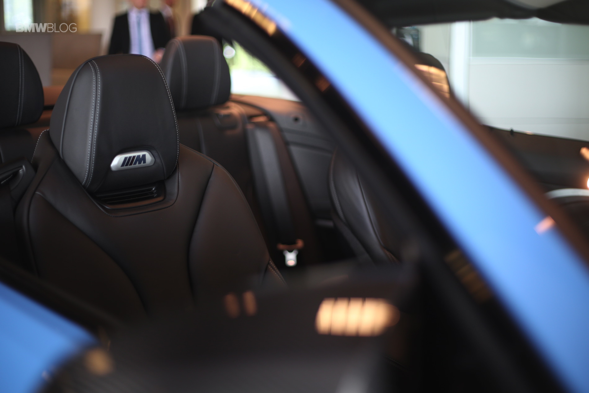 Next on the upgrade list was a set of blacked out kidney grilles which now offers great contrast against the beautiful blue shade. The carbon fiber mirror caps and the side skirts are further enhancing the sportiness and dynamics of this M4 Convertible.