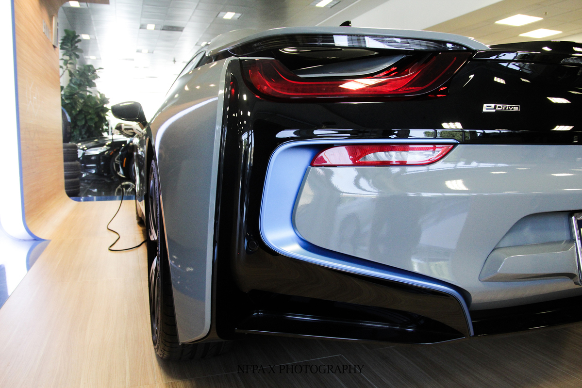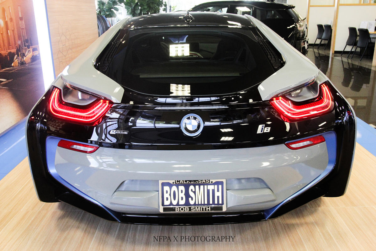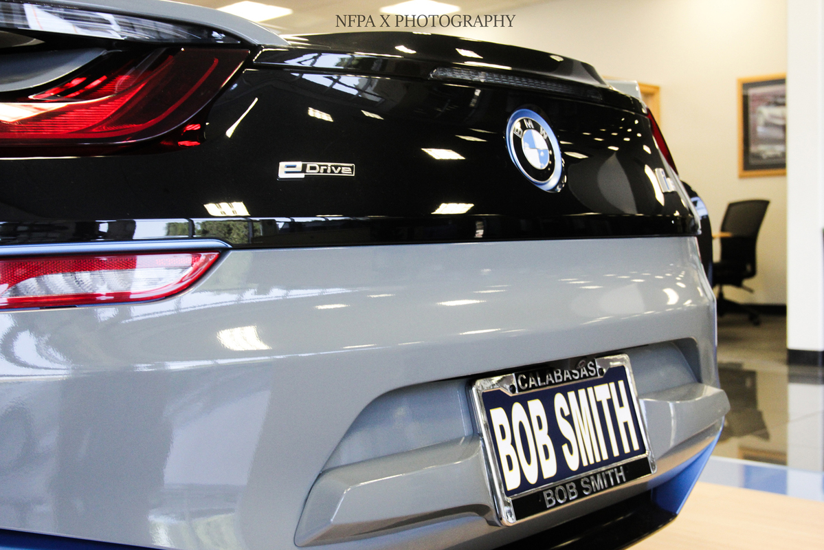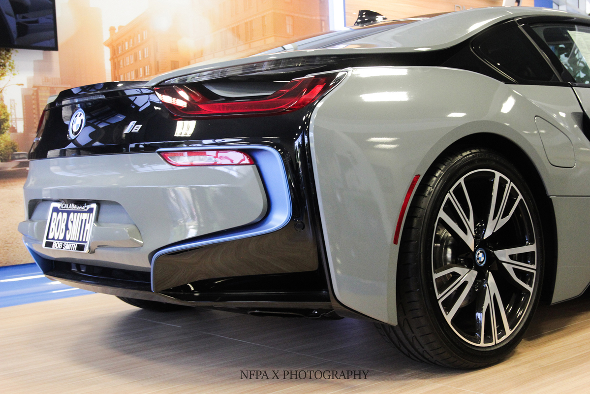 BMW Bob Smith in California has in their showroom one of the most unique BMW i8 hybrid sports cars in the world. This particular i8 was wrapped in the beautiful Nardo Grey color, an exterior paint job popular within Volkswagen Group, and available on many Audi models. The beautiful shade of grey matches perfectly the black accents of the i8 delivering a unique combination which will make the i8 stand out even more. Not that it needs to.