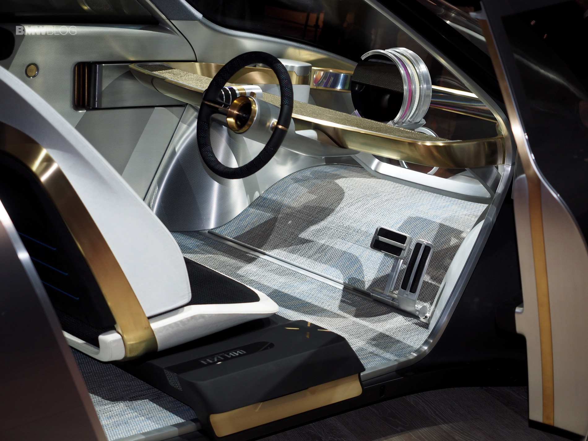 To deliver this futuristic project, the MINI design team created a sort of “blank canvas” design, where the MINI Vision NEXT 100 is wrapped in a sort of silver skin that can change colors and designs, depending on the driver’s preferences. The information is controlled through the “Cooperizer”, a centrally-positioned circular instrument, similar to the center screen on current MINIs which changes color like a kaleidoscope, as the multi-faceted digital intelligence selects different personality, entertainment, communications and autonomous settings for the driver.