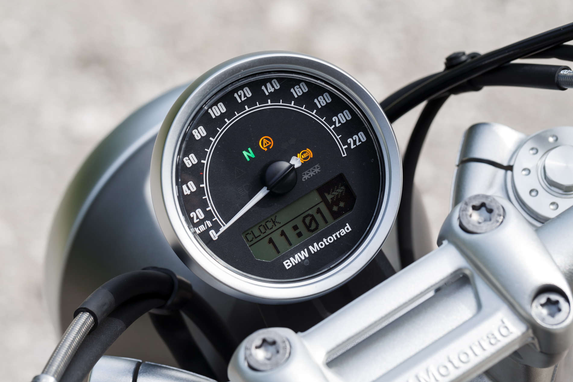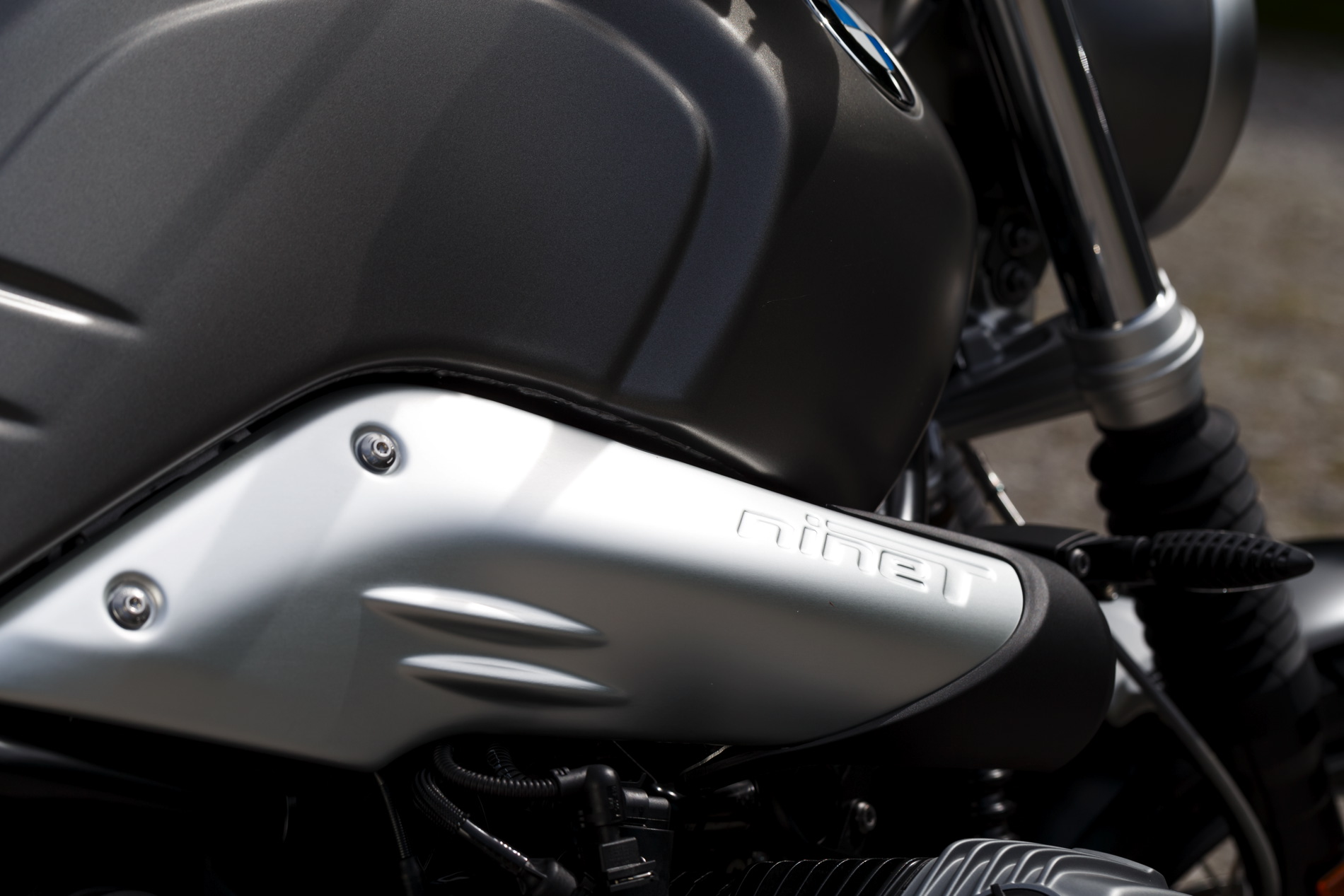 The circular headlamp gives it an expression of freedom, independence and serenity, while the speedometer with analog display features an inelaborate style that very much reflects the classic principles applied to the development of the BMW Scrambler. Eye-catching elements are the painted 17-litre sheet-steel fuel tank and the trim cover made of fine aluminium sheet with embossed R nineT inscription which runs across the air intake duct on the right-hand side.