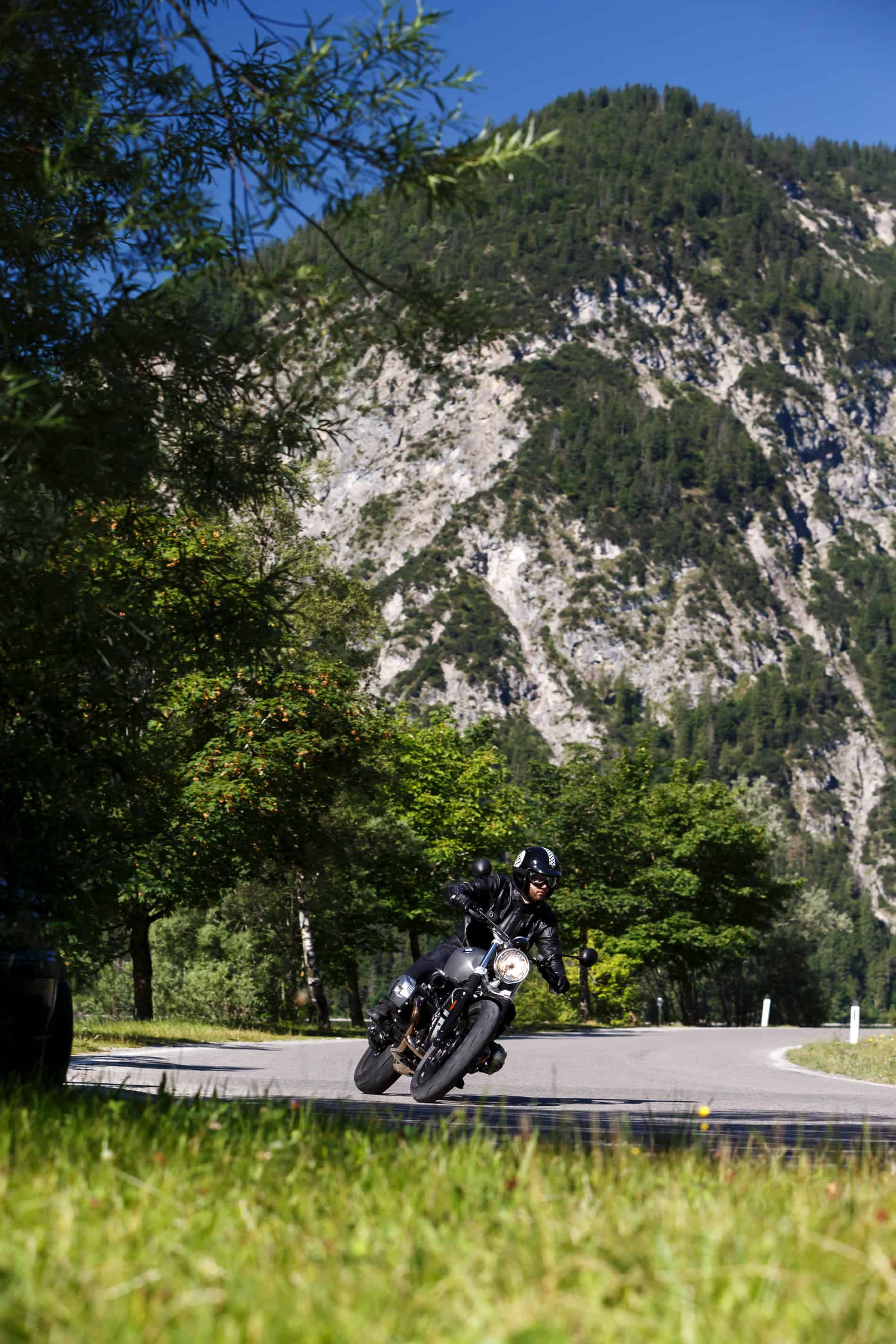 In good Scrambler style, front wheel suspension is in the form of a telescopic fork with rubber gaiters and a spring travel of 125 millimetres. Rear wheel suspension is taken care of by a Paralever single-sided swinging arm as used in the other boxer models. Suspension and damping are carried out via a central spring strut. The spring travel is 140 millimetres.