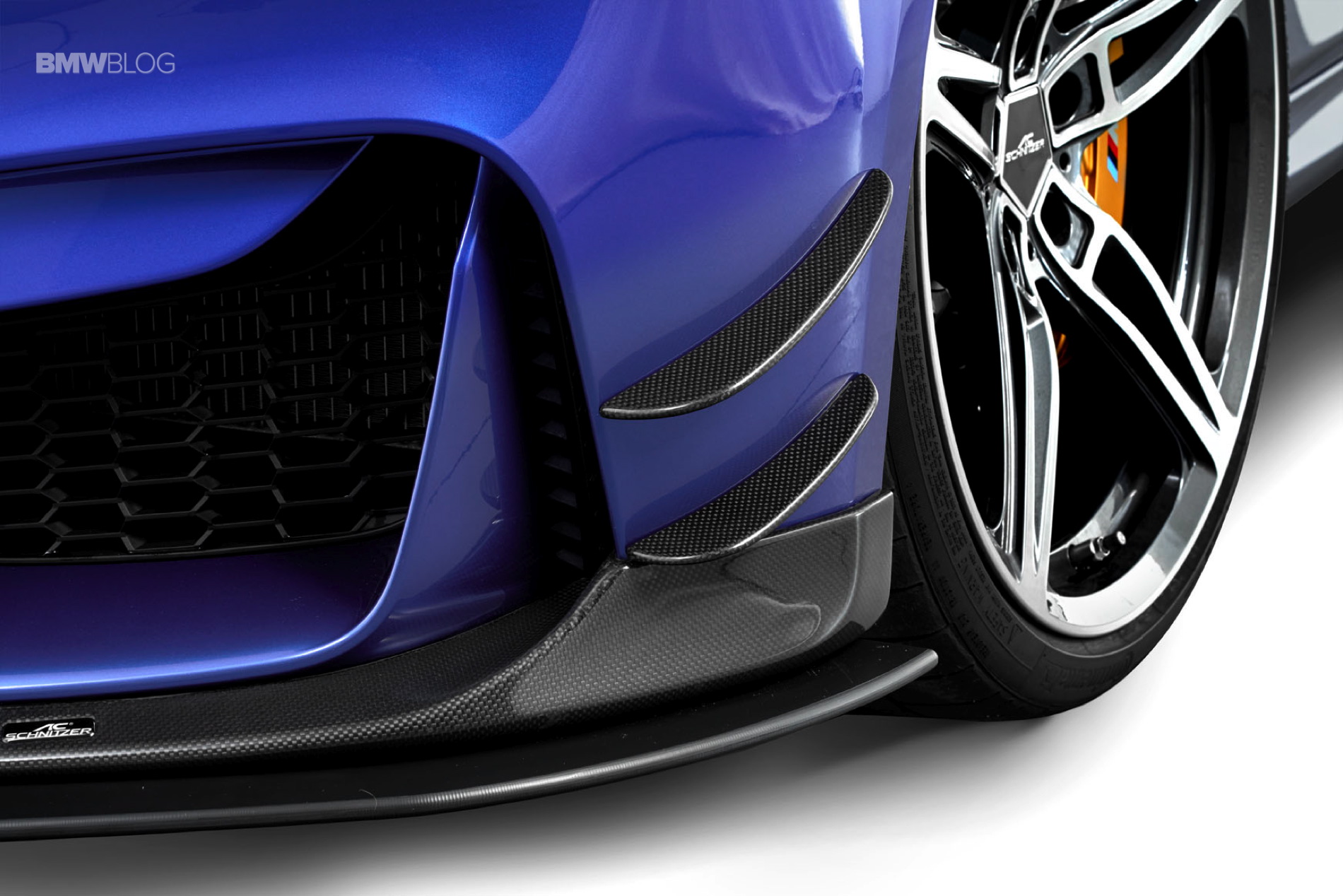 The final stage of the AC Schnitzer front aerodynamic conversion for the M3 and M4 is achieved with the carbon front side wings. These are fitted to the front skirt in sets of two on the right and two on the left (4 per set). The arrangement enhances the air flow along the vehicle side, further improving downforce on the front axle. The components of the aerodynamic package for the front of the BMW M3 and M4 are available individually or as a complete kit.