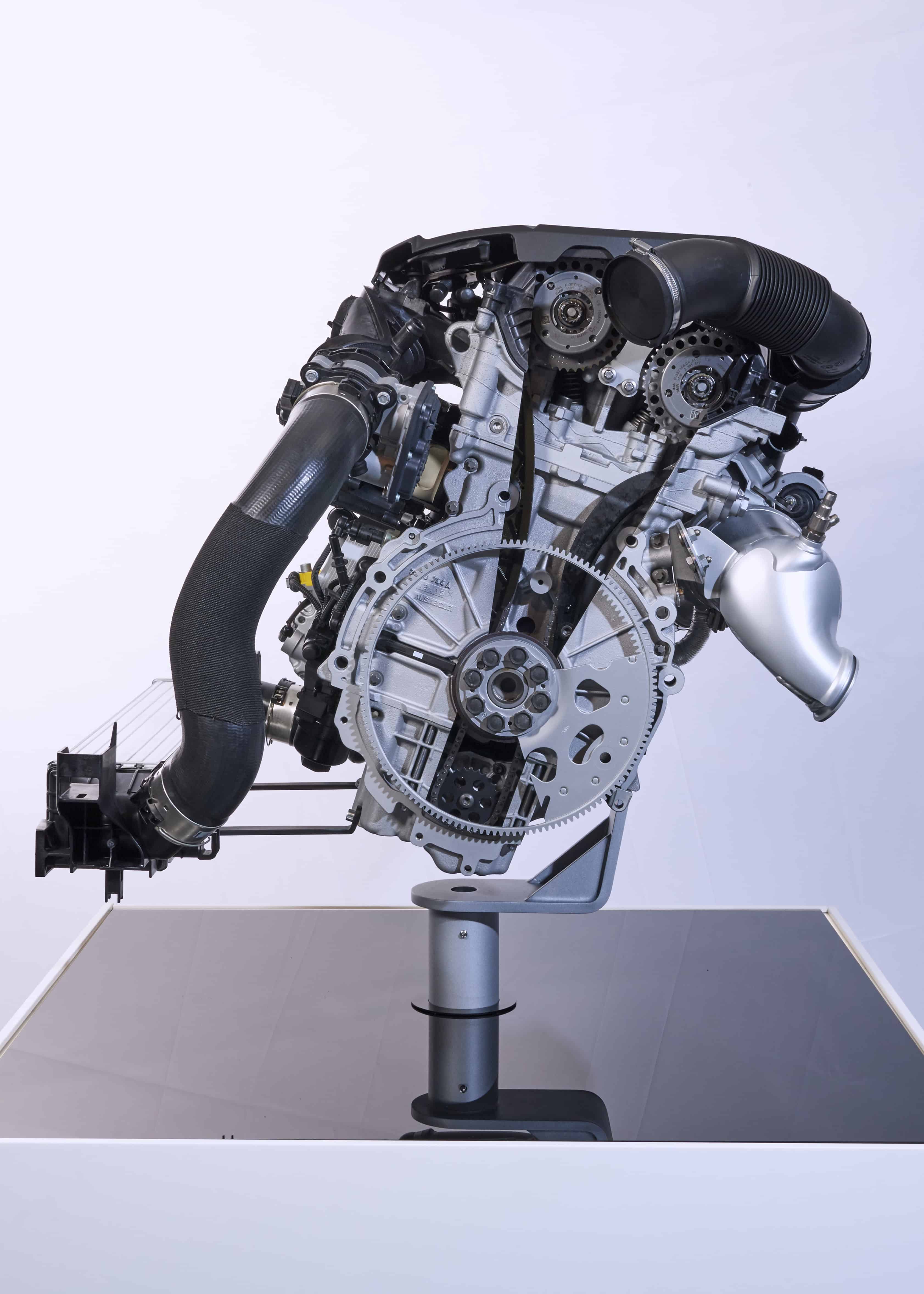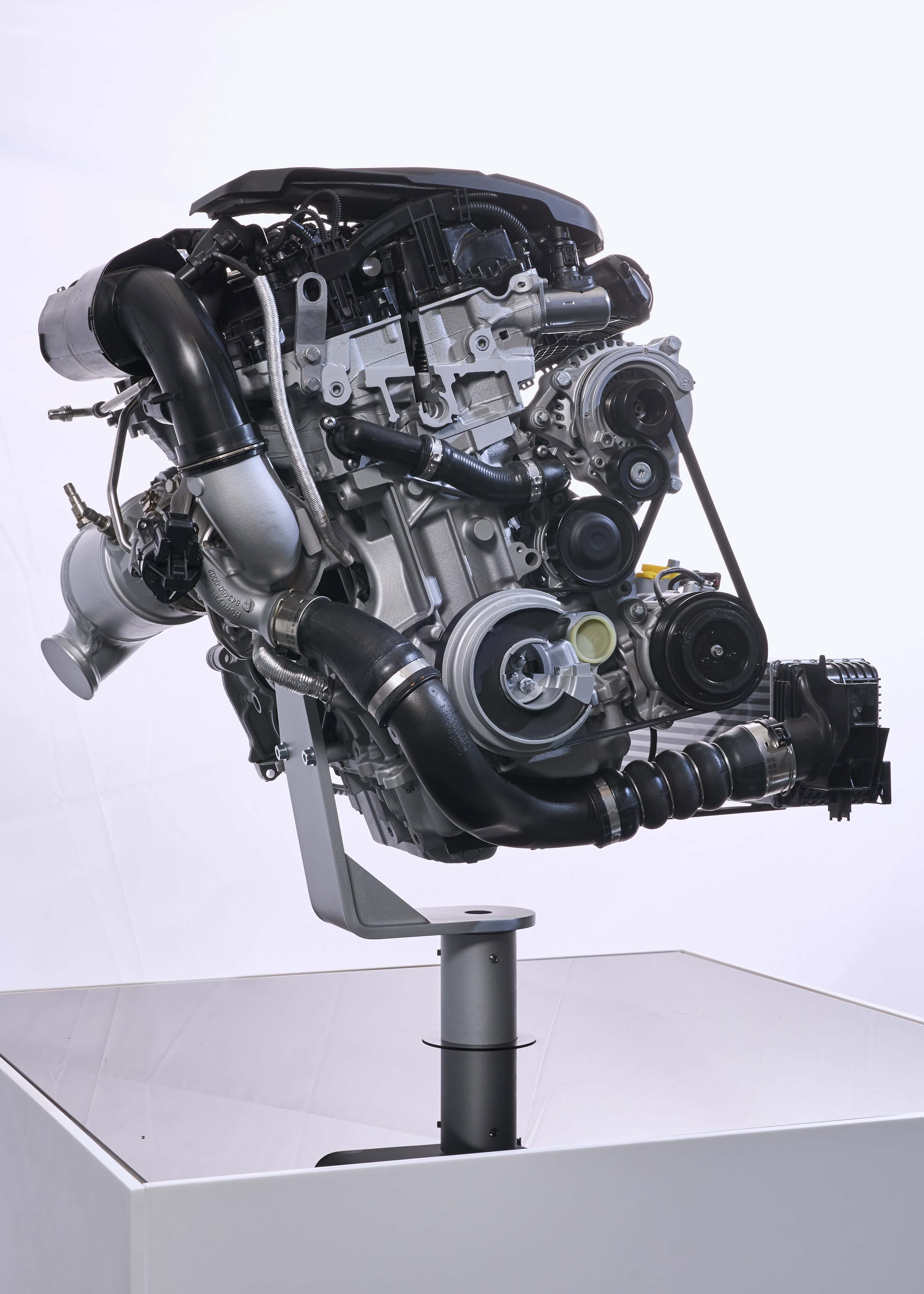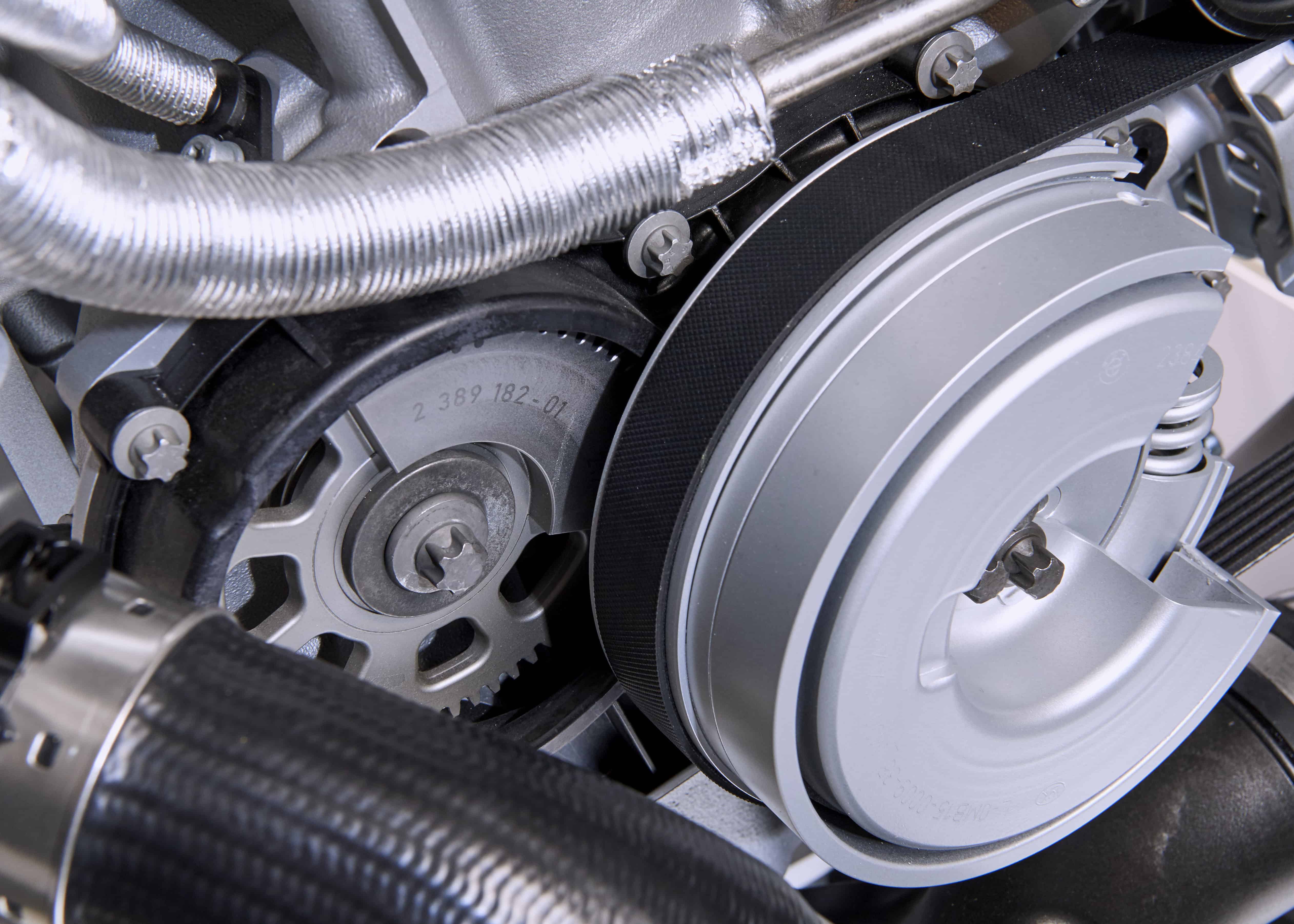 Other modifications that have a positive impact on engine efficiency include the use of a single-piece timing chain drive, which has the additional effect of optimizing acoustics. Plus, the revised engines are fitted with a new belt drive that is now the same on all variants. An L-shaped belt arrangement is used for driving the alternator, water pump, torsional vibration damper and air conditioning compressor.