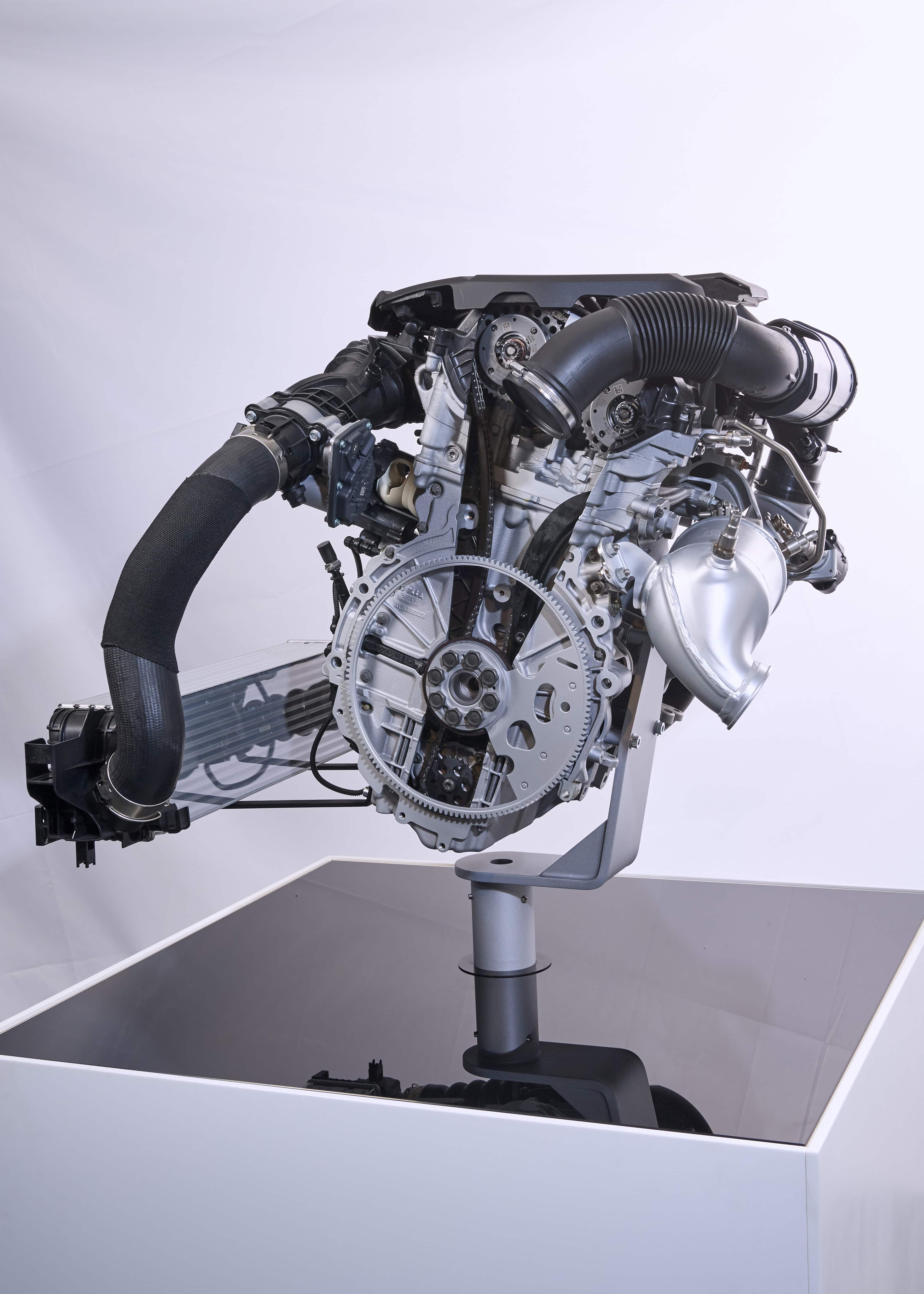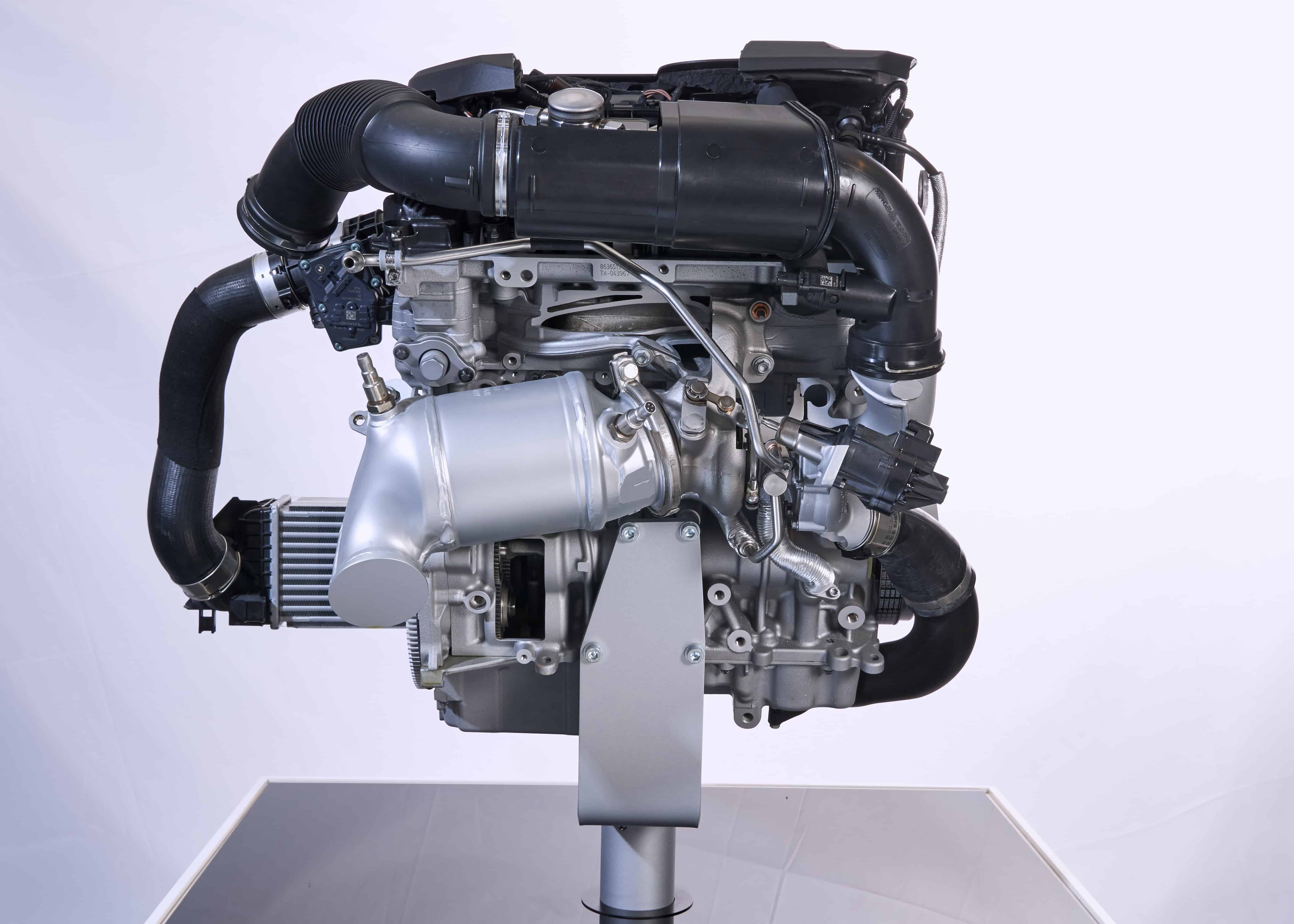 The turbocharging system, consisting of a turbocharger integrated into the exhaust manifold has undergone additional development as part of the engine family’s overhaul. The exhaust manifold and turbocharger are now housed together in the cylinder head. The turbocharger casing for the 3-cylinder engines is made from either aluminum or steel depending on the output variant, while the four-cylinder units all feature steel casing.