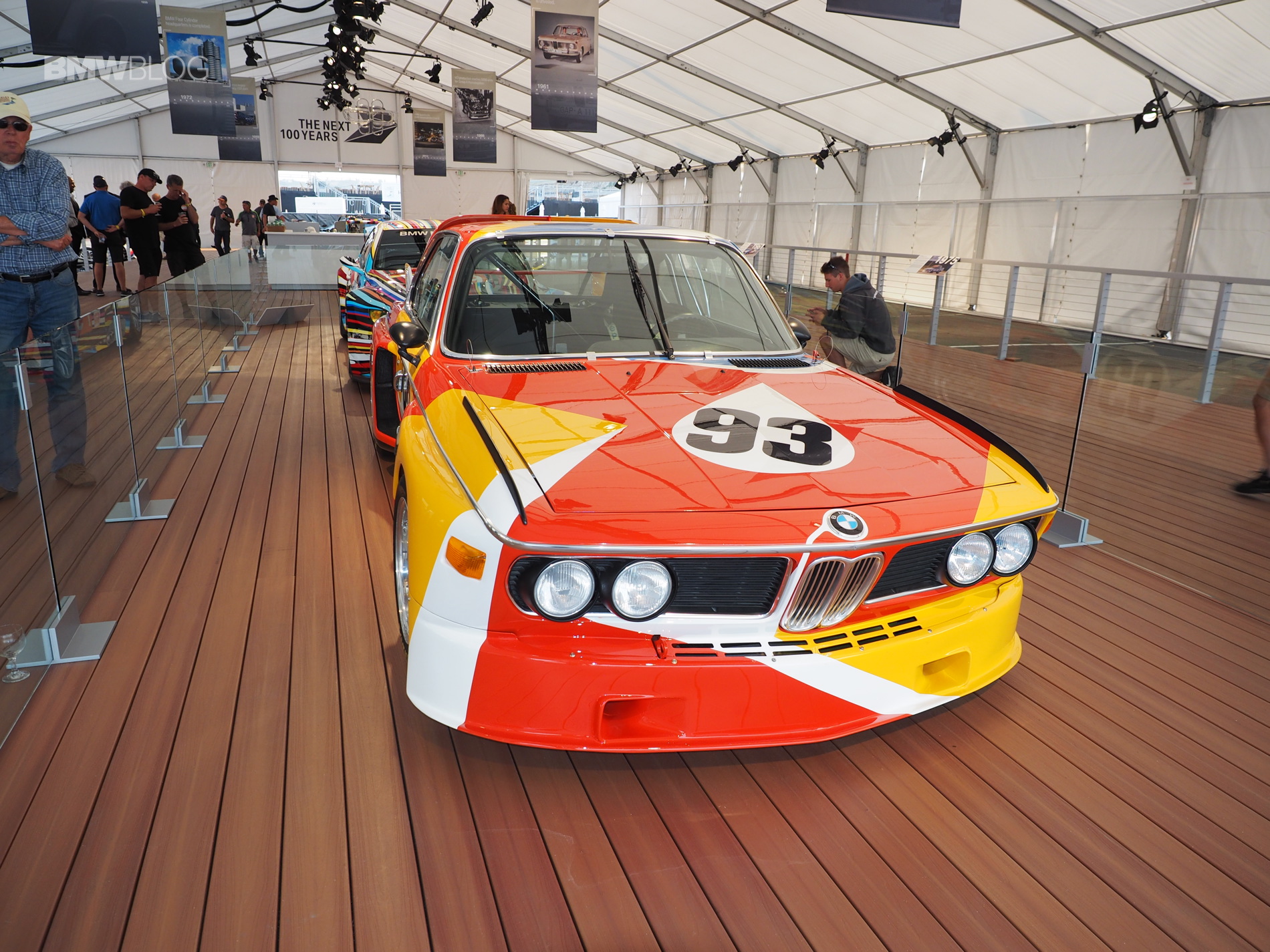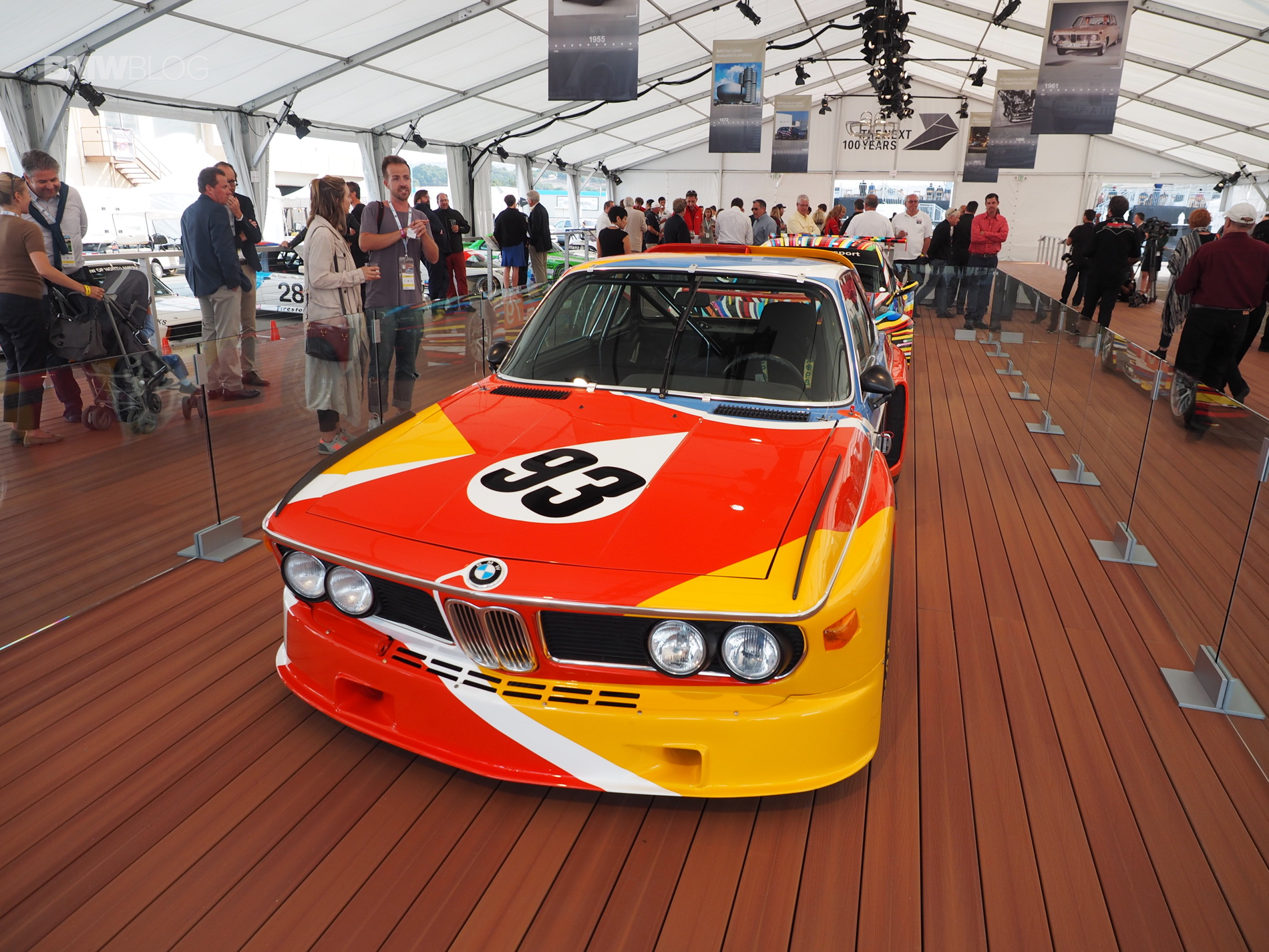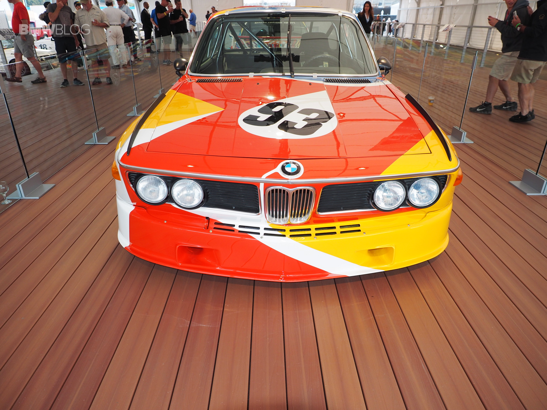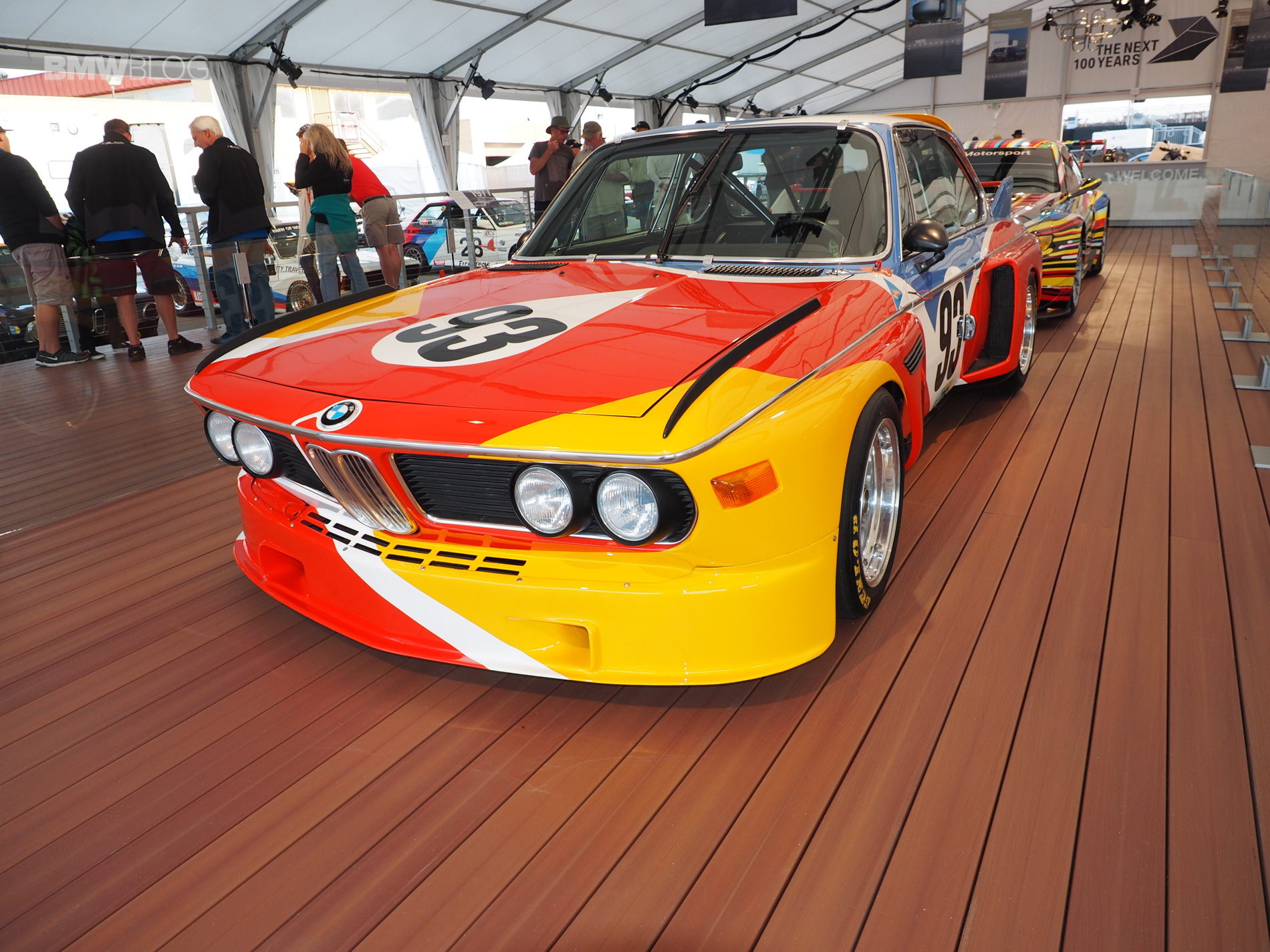 The very first BMW Art Car, a BMW 3.0 CSL, designed by American artist Alexander Calder, was showcased by BMW in Monterey this week. The iconic race car was displayed next to the BMW M3 GT2 Art Car and it’s the centerpiece at the BMW stand in Laguna Seca.