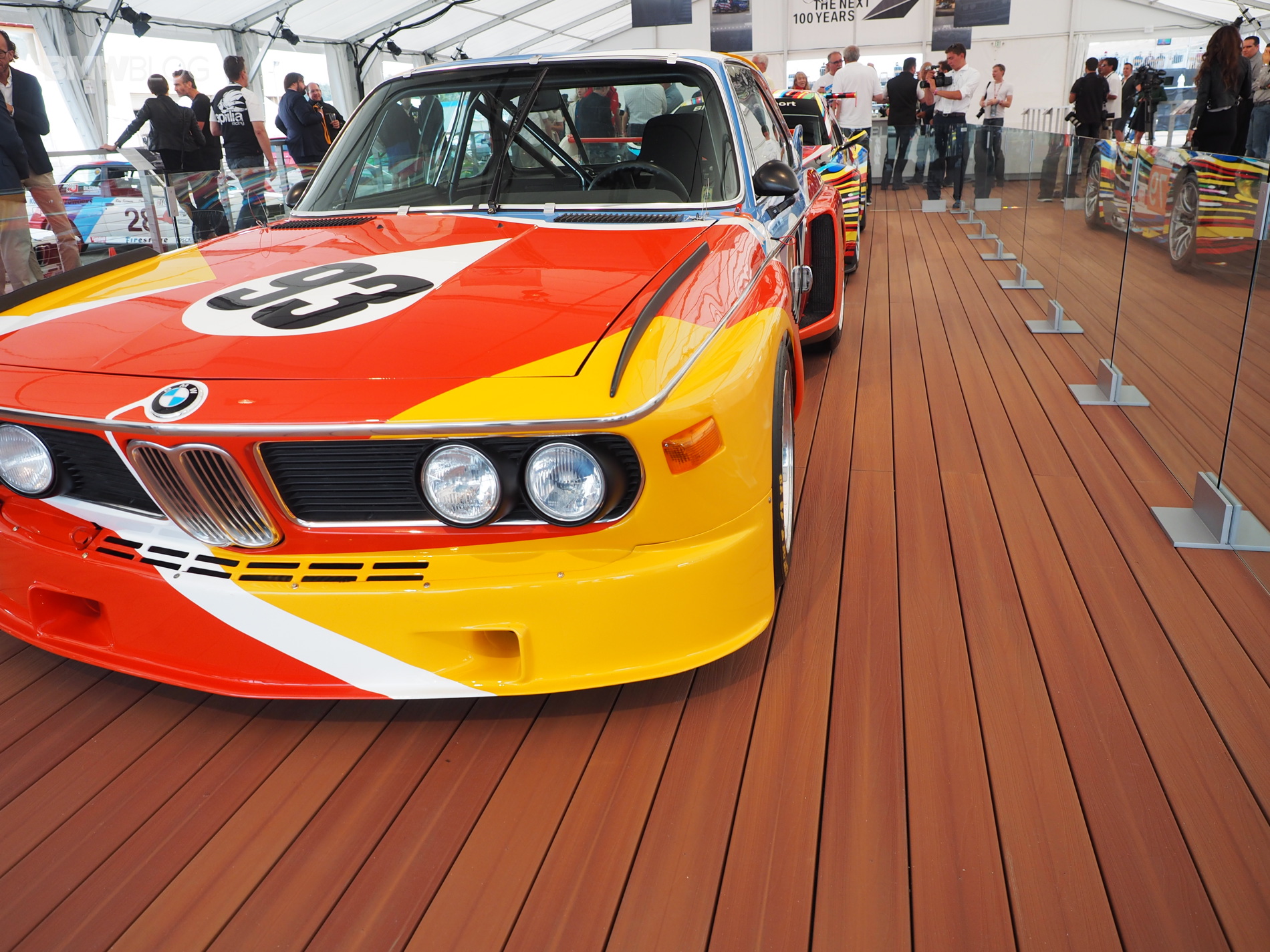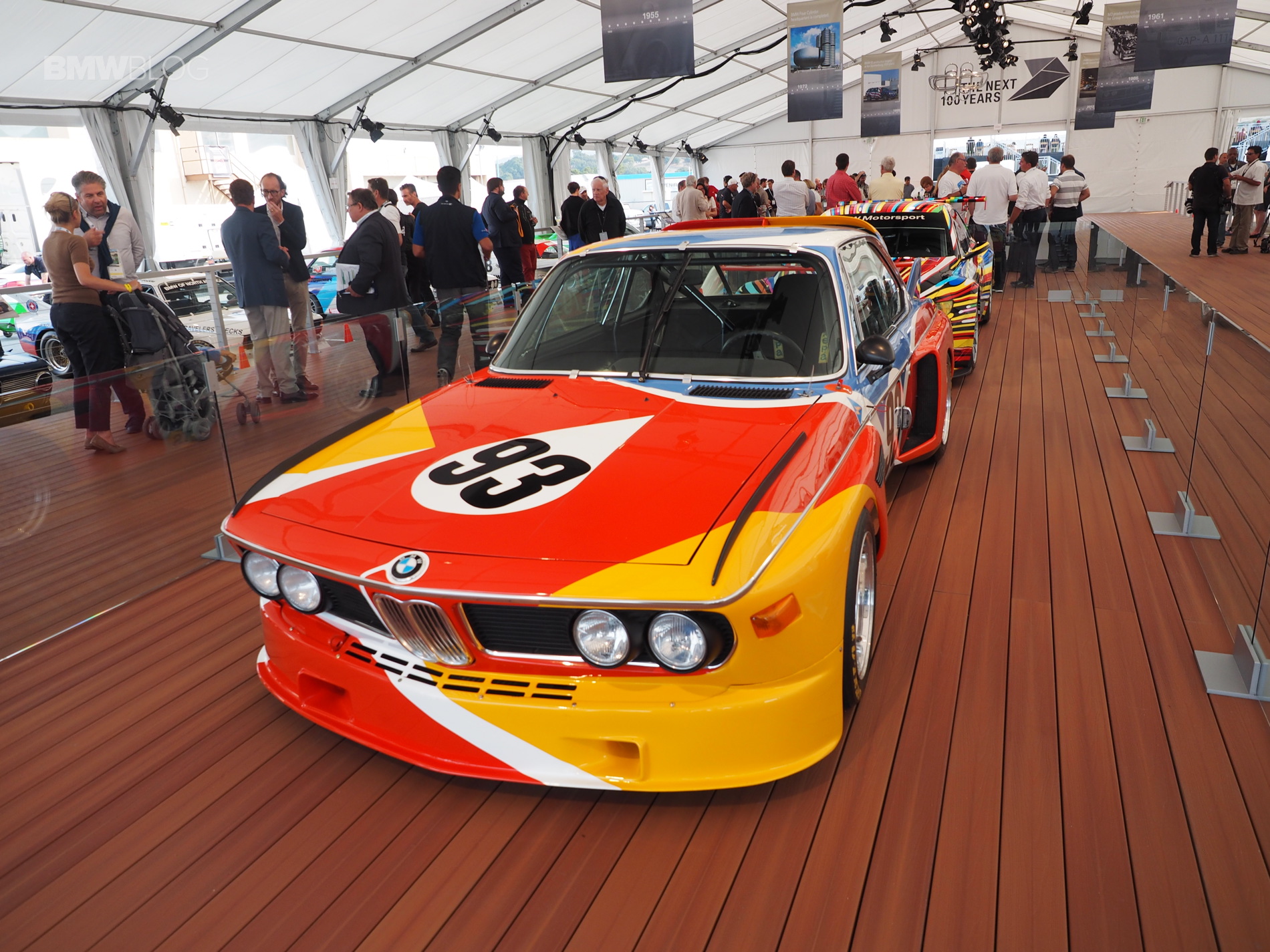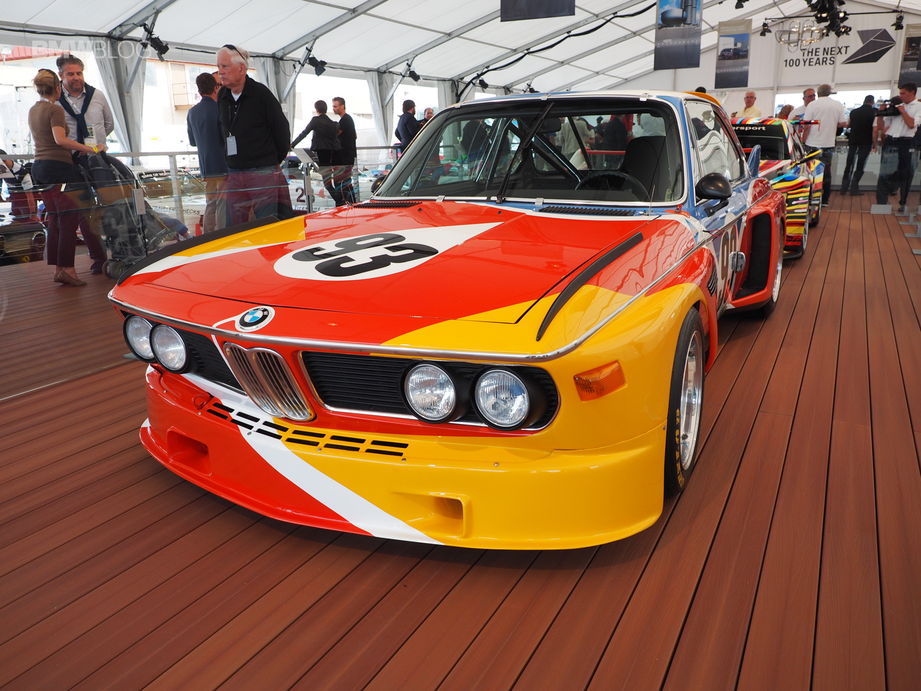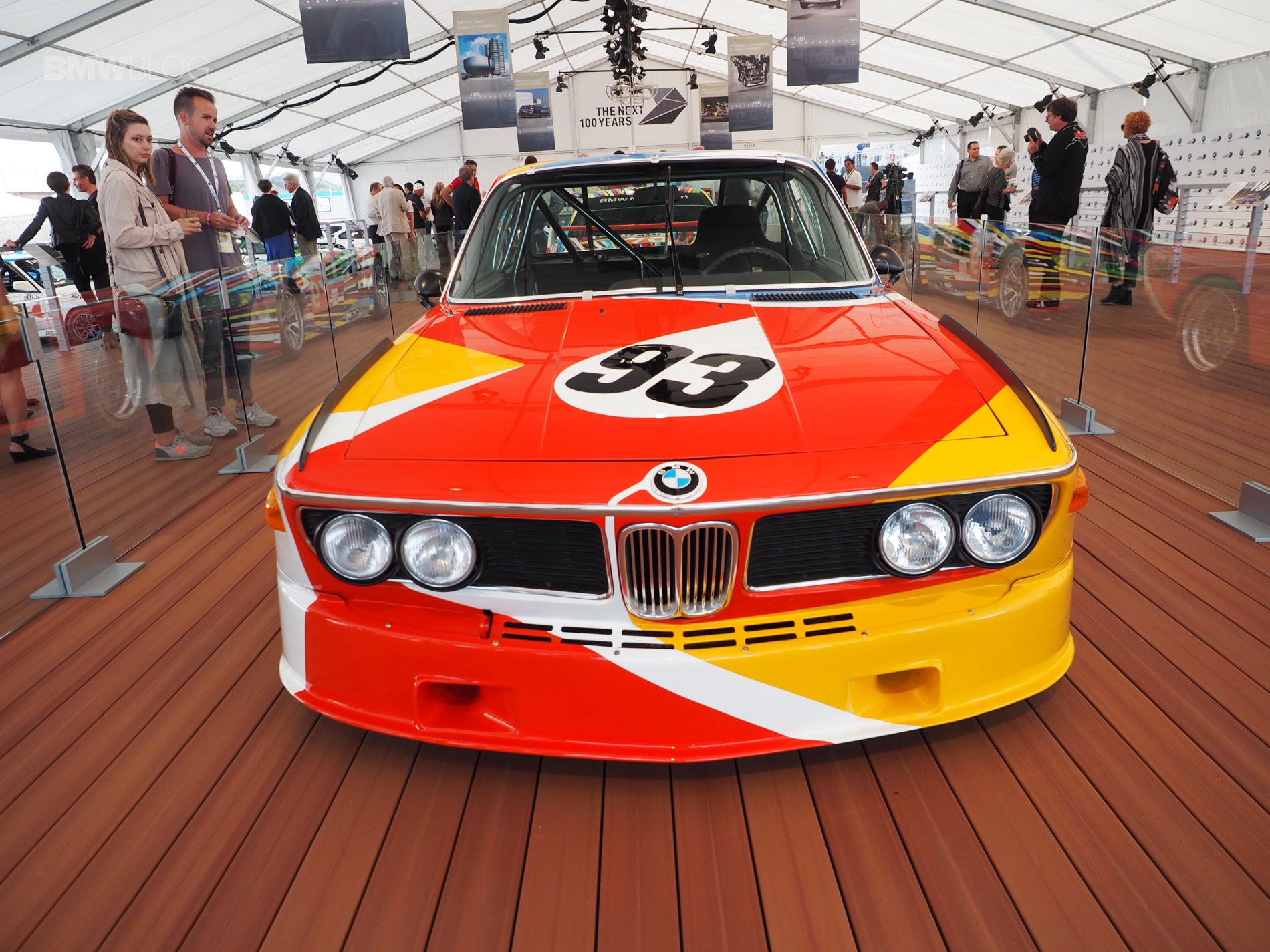 The very first BMW Art Car, a BMW 3.0 CSL, designed by American artist Alexander Calder, was showcased by BMW in Monterey this week. The iconic race car was displayed next to the BMW M3 GT2 Art Car and it’s the centerpiece at the BMW stand in Laguna Seca.