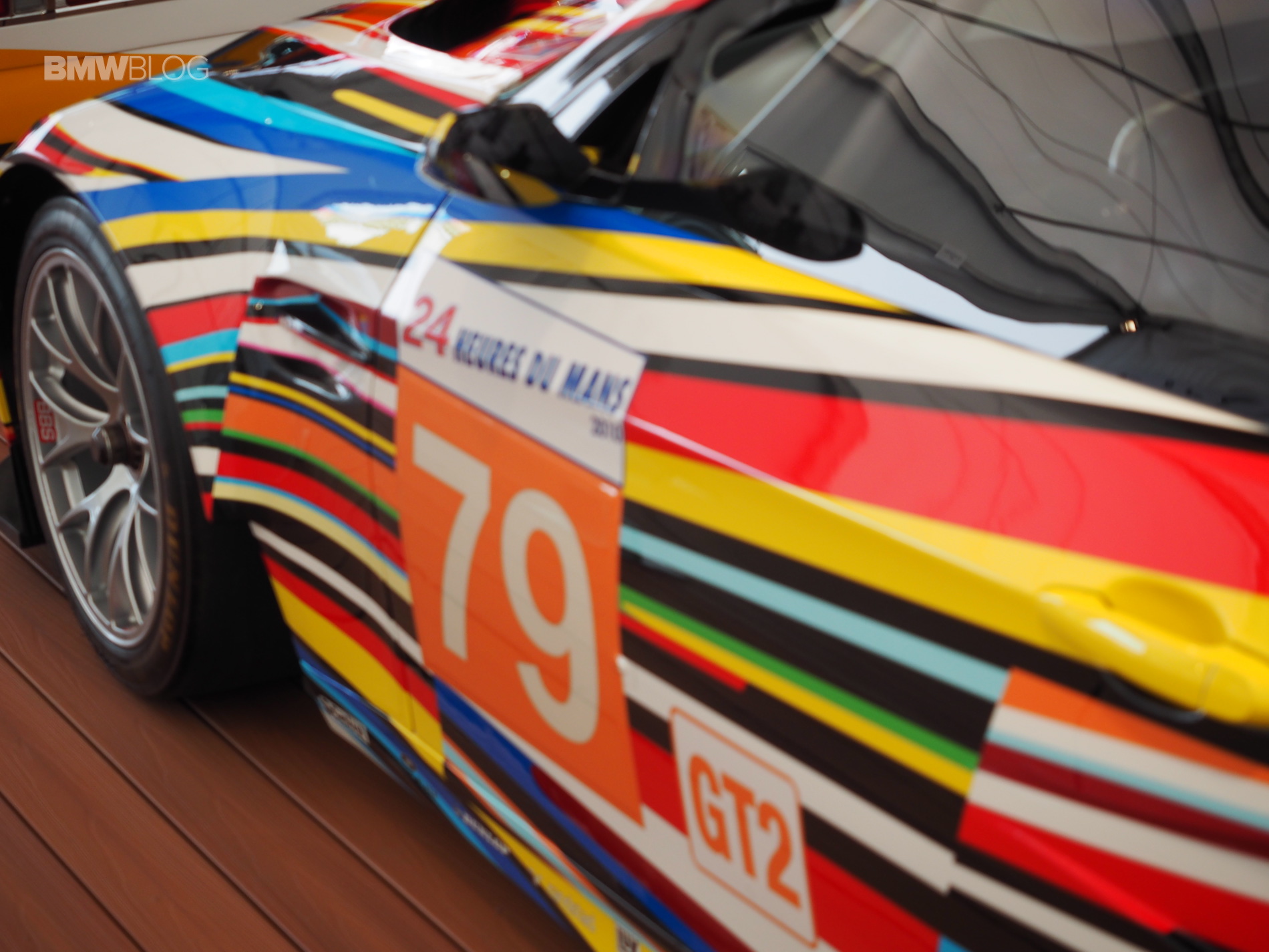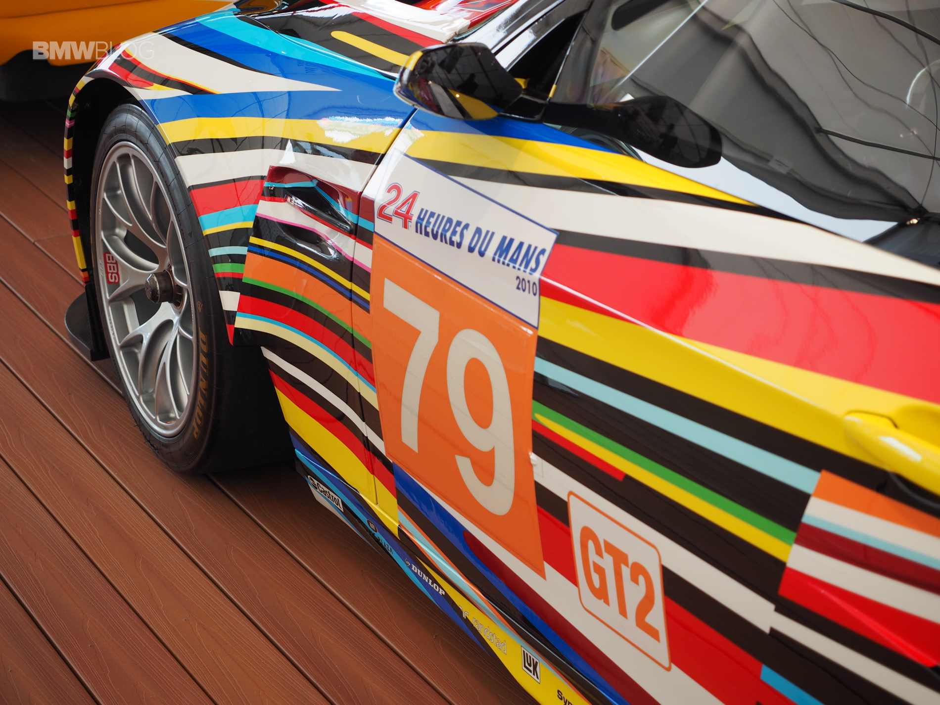 I think we can all agree that Koons nailed it. The streaking stripes give off a look of lights streaming off the body of the car and it makes it seems like it’s driving at warp-speed. Out back, there’s an explosion of color and debris with two shock wave circles surrounding it. Koon wanted to evoke power, speed, color and emotion, as that’s what he felt actual race cars evoke. It’s a stunning car that looks even better in person. Check the photo gallery below to see live photos of the BMW M3 GT2 Art Car from Laguna Seca.