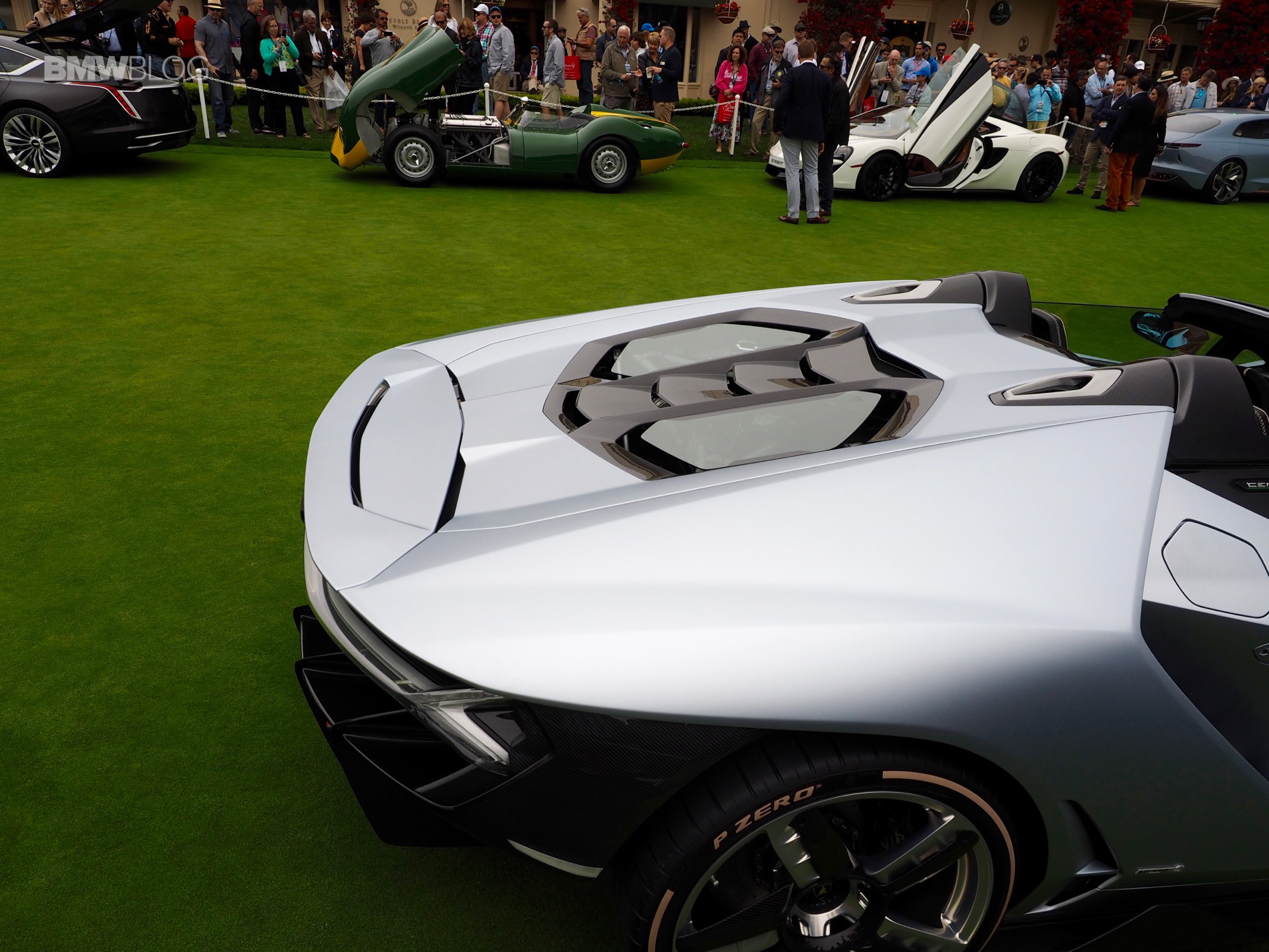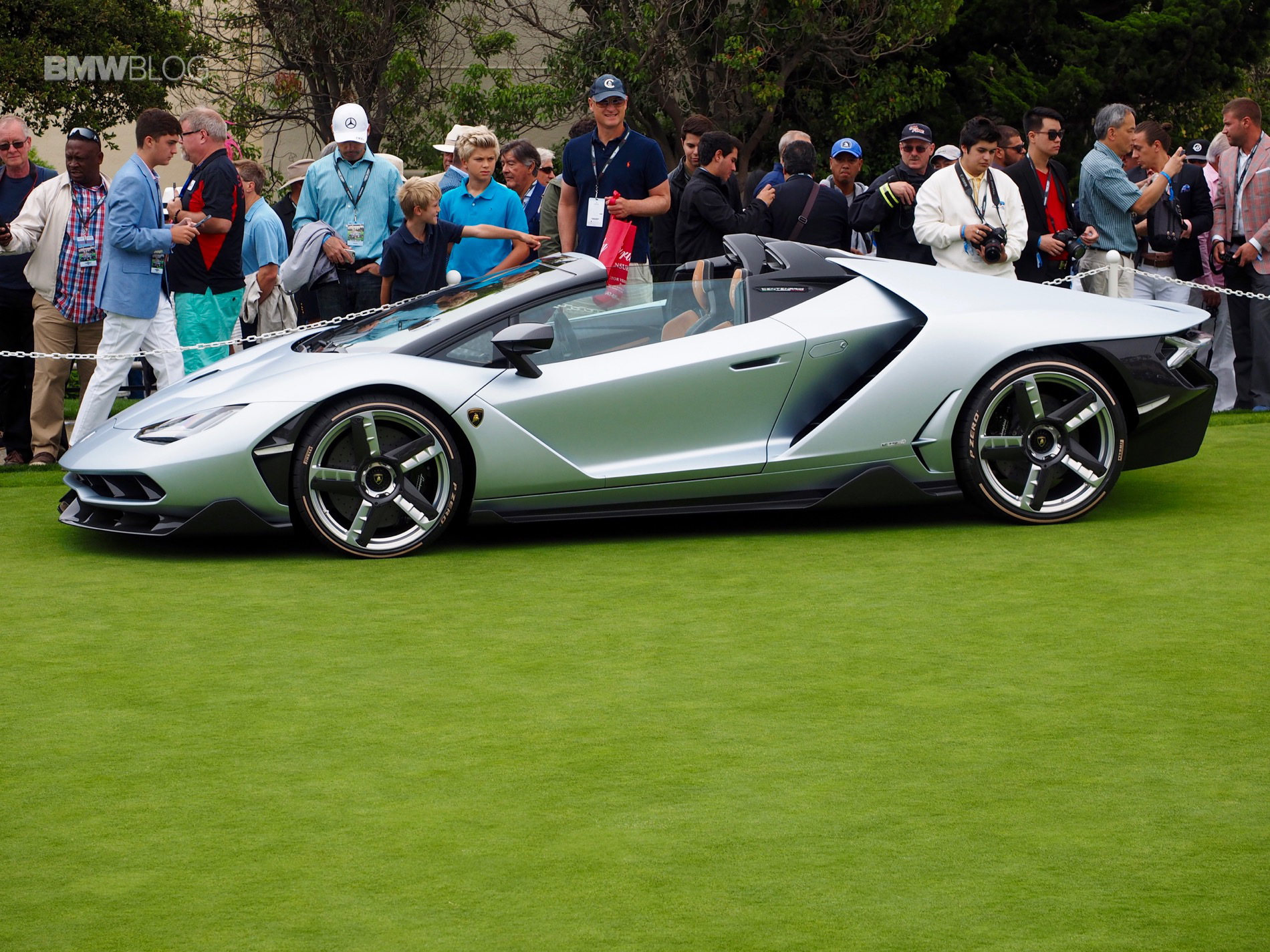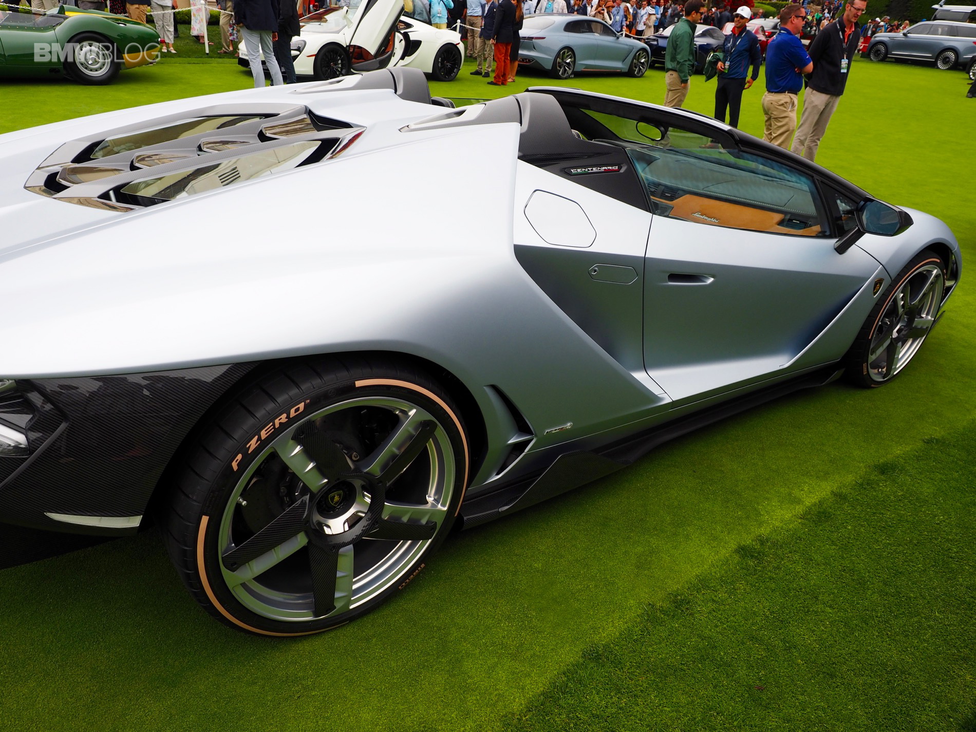The naturally-aspirated V12 screamer mounted in the middle makes 759 hp, through a seven-speed automated manual gearbox to all four wheels. Lamborghini claims it can get from 0-60 mph in 2.8 seconds. It features four-wheel steering and a seemingly absurd amount aerodynamic scoops. But it sure is awesome and we loved seeing it at Pebble Beach. Plus, it honors one of the greatest automotive minds in history.