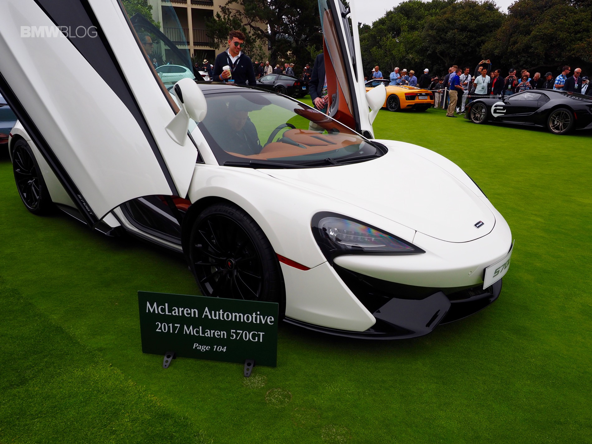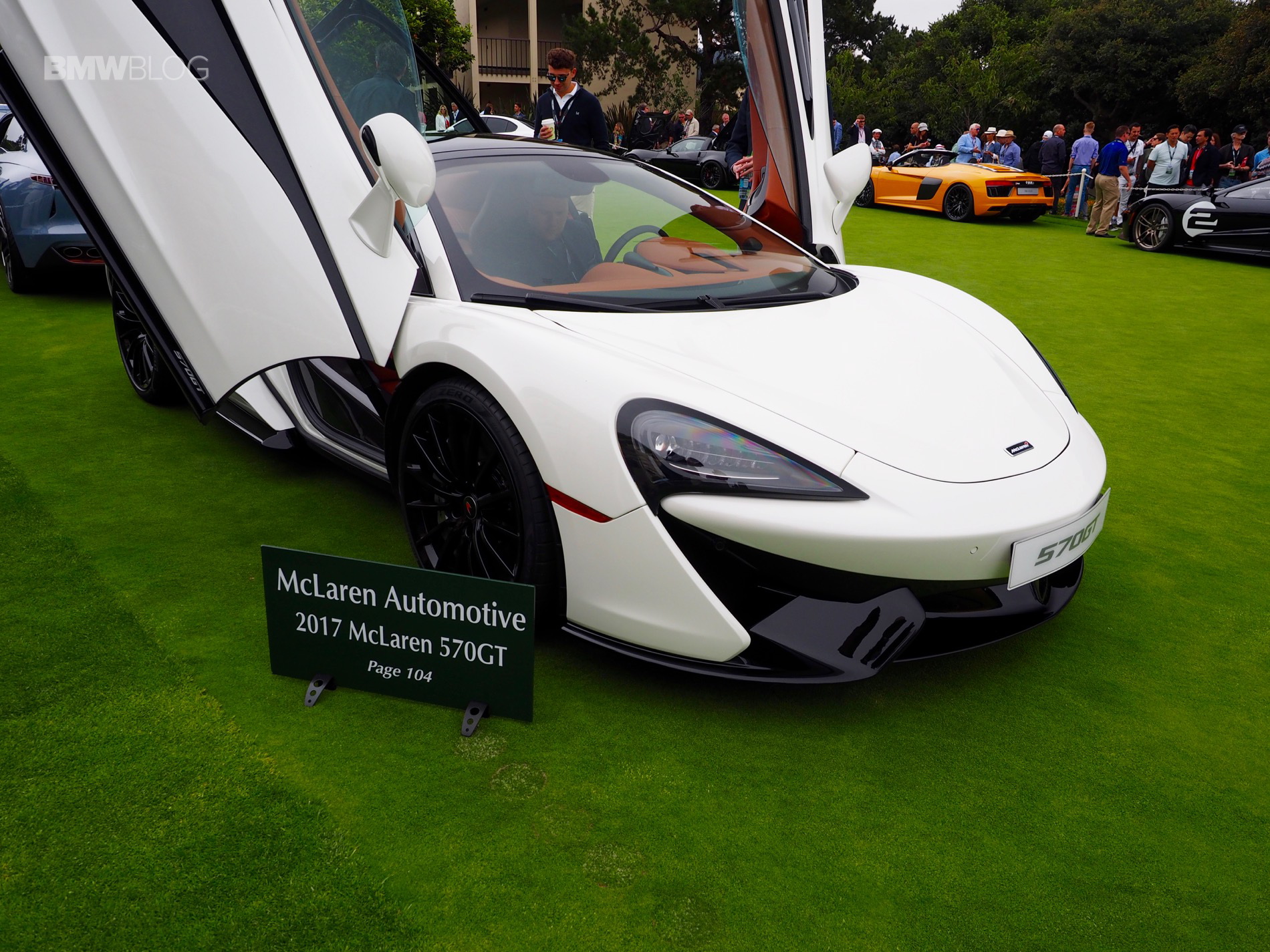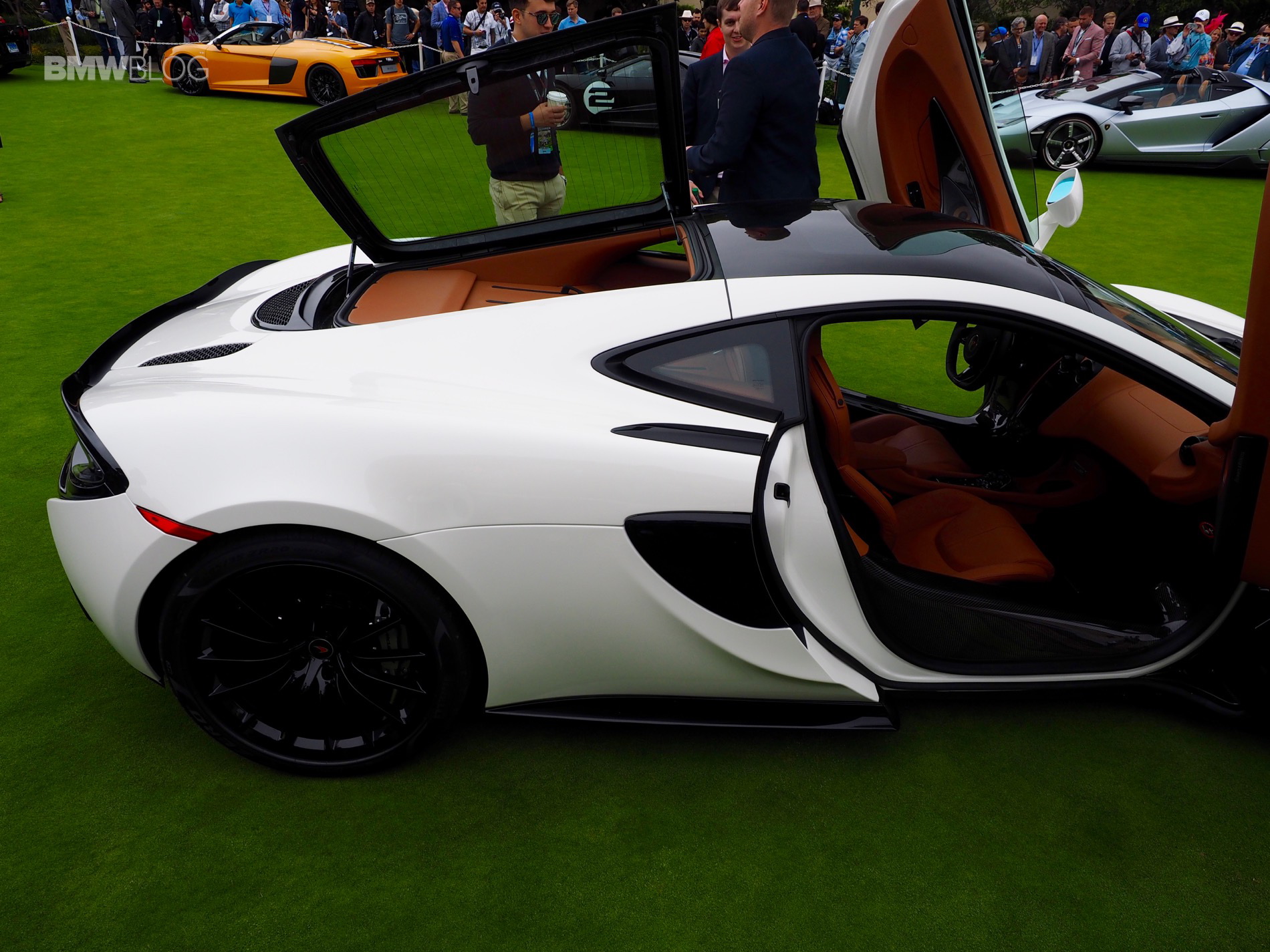 McLaren Special Operations sounds more like an agency that James Bond might freelance for, but it’s actually a group of folks at McLaren who make the British brand’s cars even more incredible. For instance, the new McLaren 570GT MSO is a more luxury oriented variant of the standard McLaren 570GT. It features a Pearl White paint job and Piano Black detail package. The latter coats all of the exterior aerodynamic bits in glossy black paint. But my personal favorite touch is the visible exhaust shield with a “golden titanium nitride tint” to it. McLaren likes gold and this reminds me of the gold-lined engine bay of the McLaren F1.