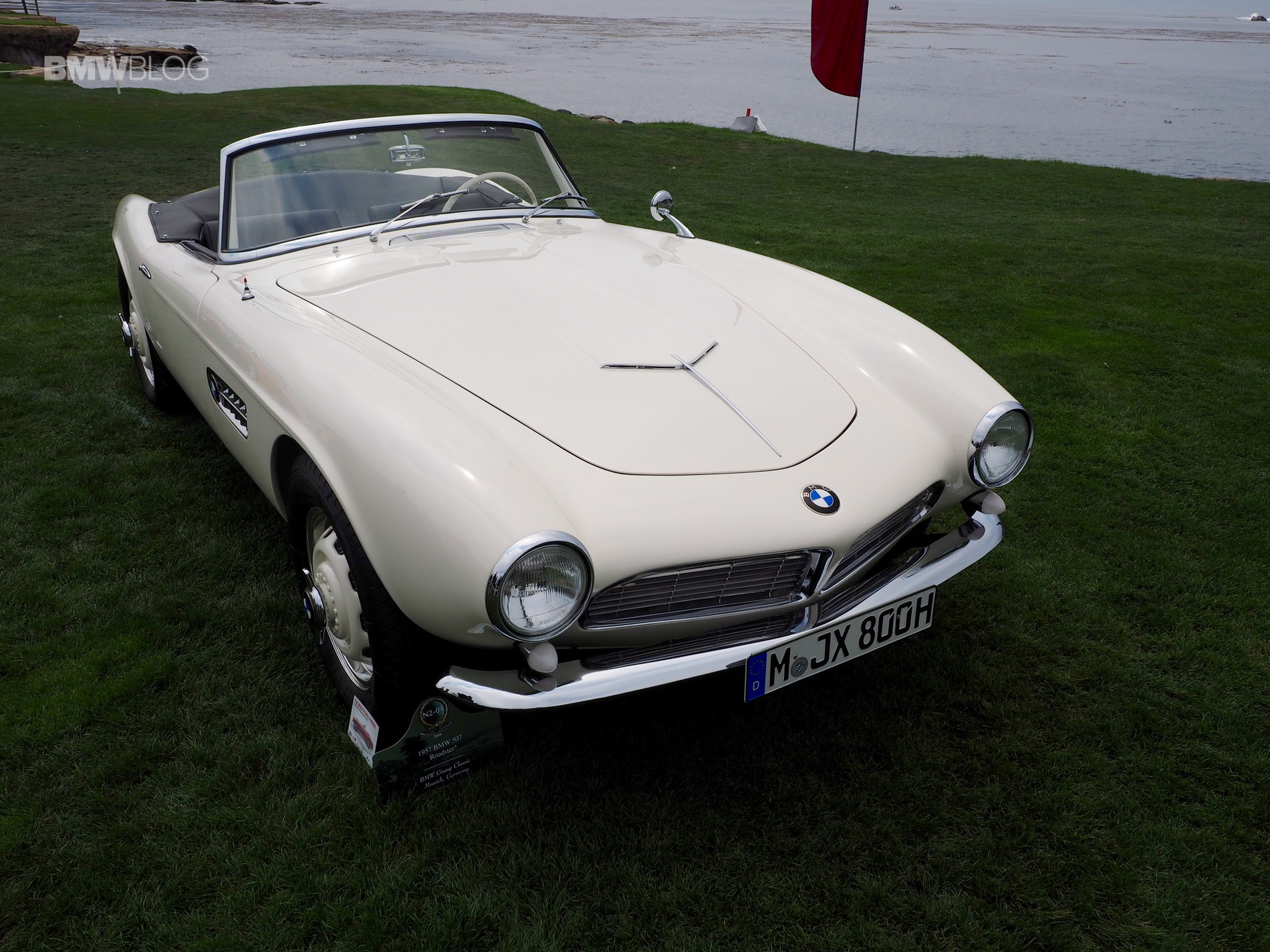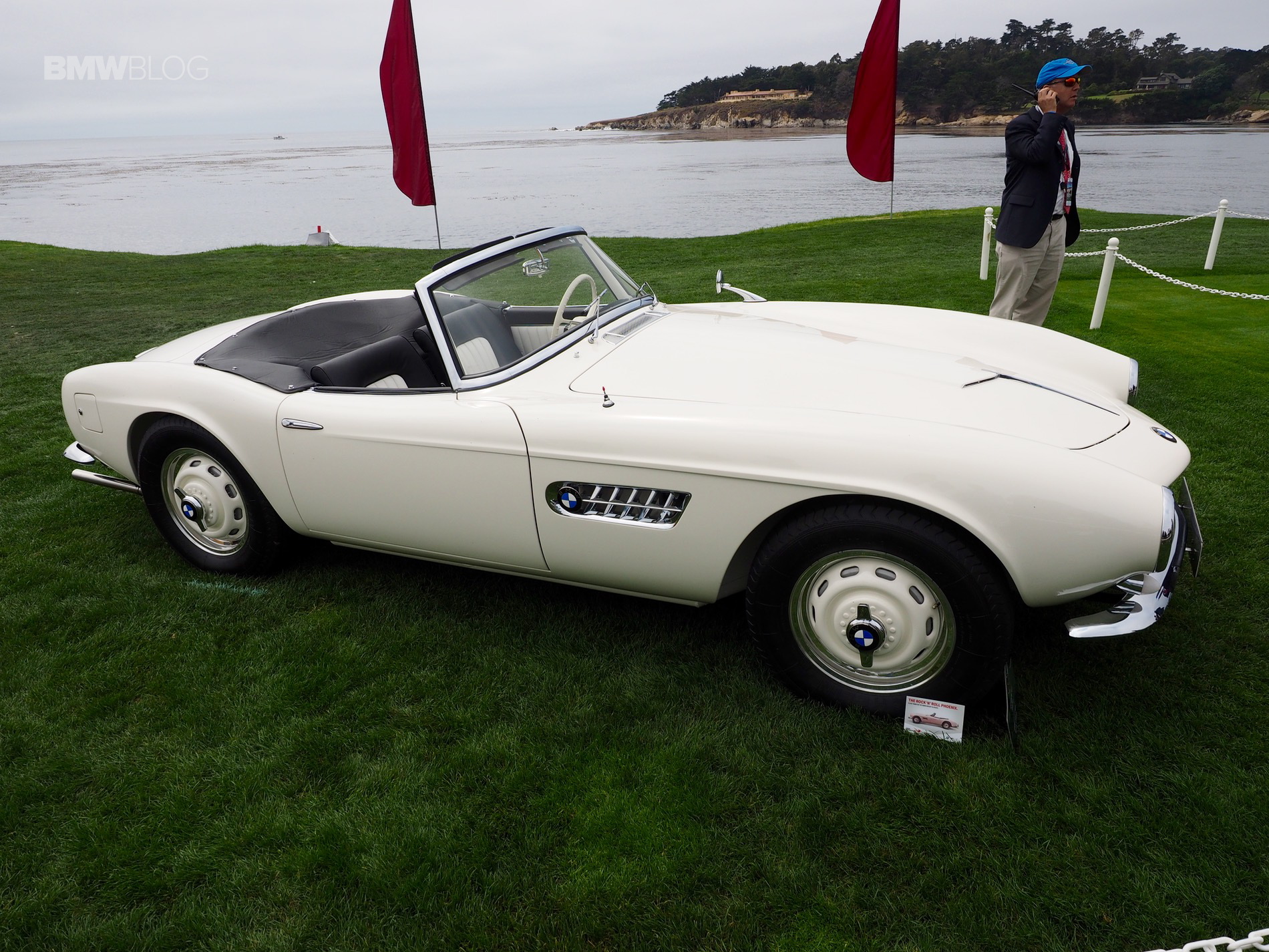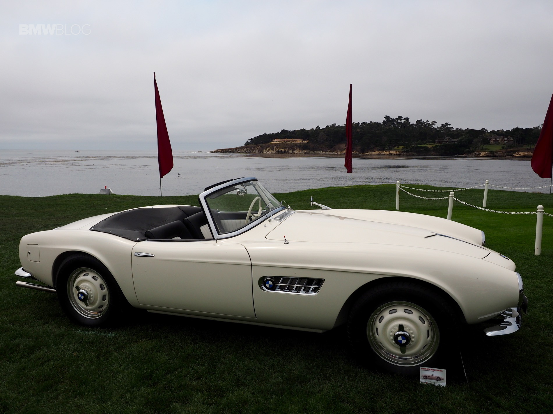 Elvis Presley’s BMW 507 made its tour at different venues during the Monterey Car Week before ending up on the beautiful lawn at Pebble Beach Concourse d’Elegance. The immaculate white-painted 507 was one of the main attractions on the extremely expensive golf course where hundreds of iconic classic cars were being displayed.