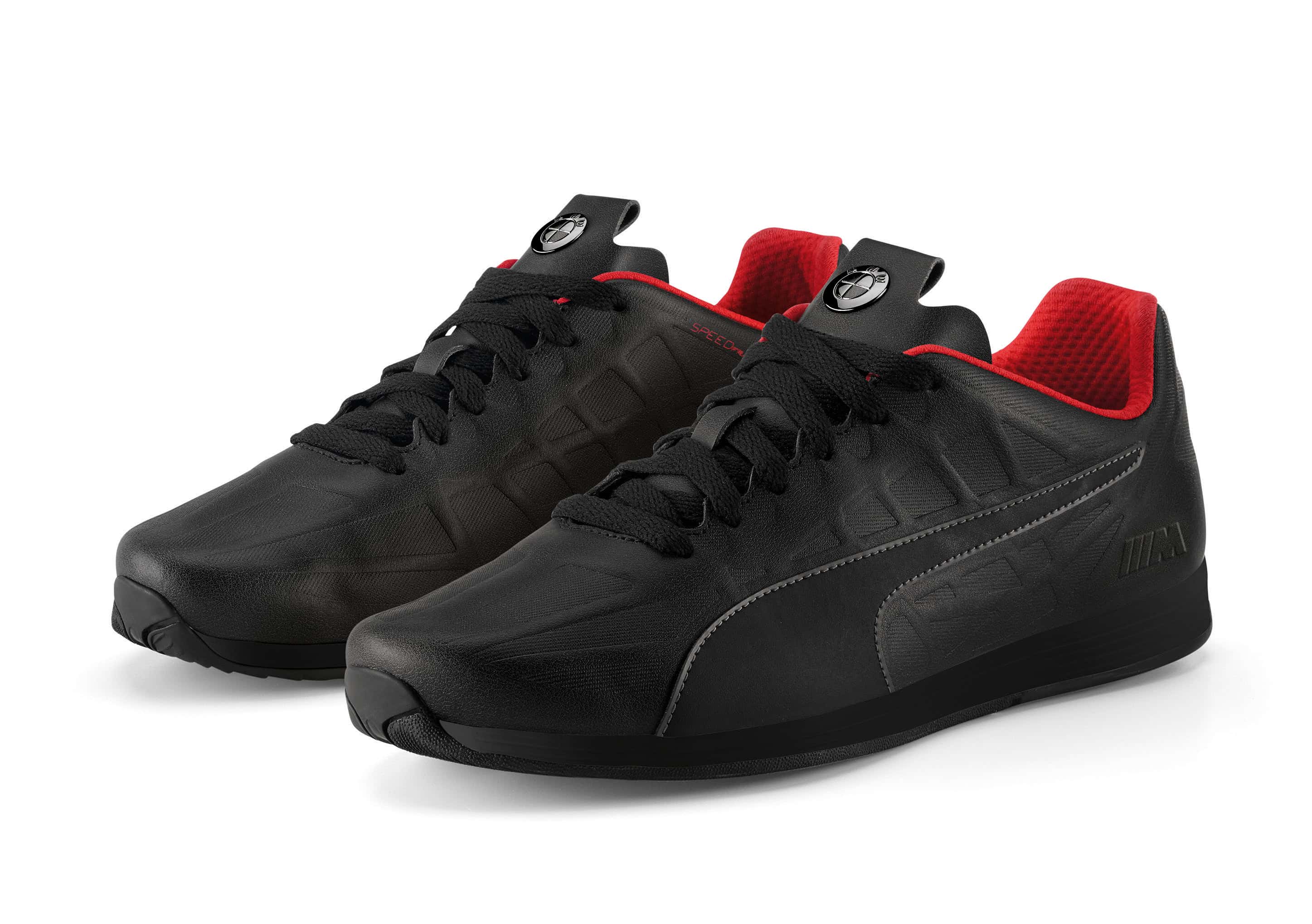 The unisex Puma sneakers in BMW M design bring sporty levels of grip to the soles of your feet. The silver-colored BMW M X-Cat with distinctive carbon-look details and the BMW M Puma Evo Speed, whose characteristic design is elegantly underlined by a black structured appearance, send a strong dynamic message.