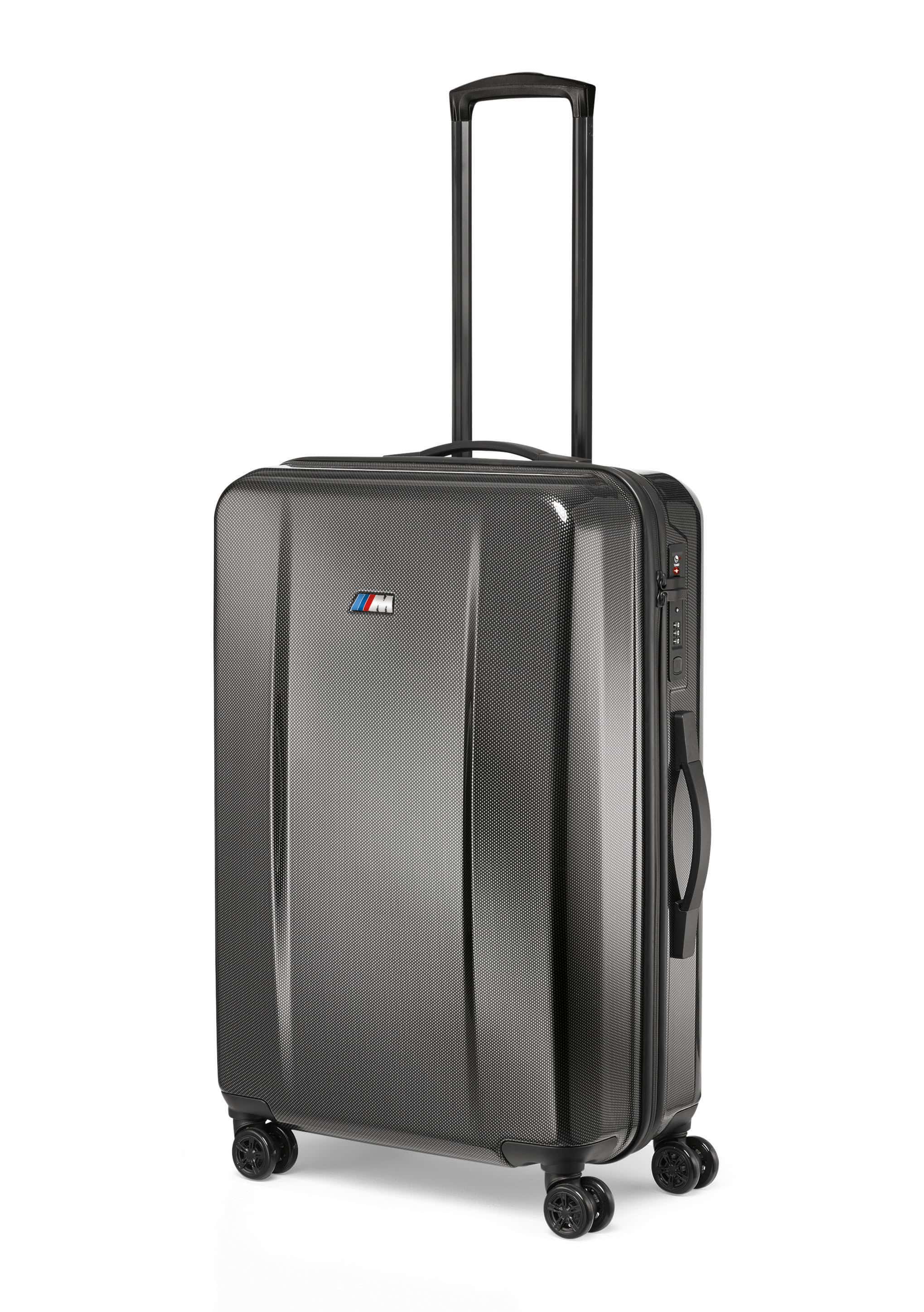 The BMW M Bag, can be carried either as a spacious tote or as a messenger bag thanks to its ingenious design. A padded compartment provides excellent protection for a laptop or tablet. Anyone needing a highly robust yet stylish traveling companion will find what he’s looking for in the BMW M Trolley case and the BMW M Boardcase. These high quality hard-shell trolley cases in carbon design have a sturdy telescopic handle and four double castors in M4 wheel effect. The distinctive appearance of the cases, is based on the BMW M4 roof design. All these new items are now available for purchase at selected BMW dealers and online.