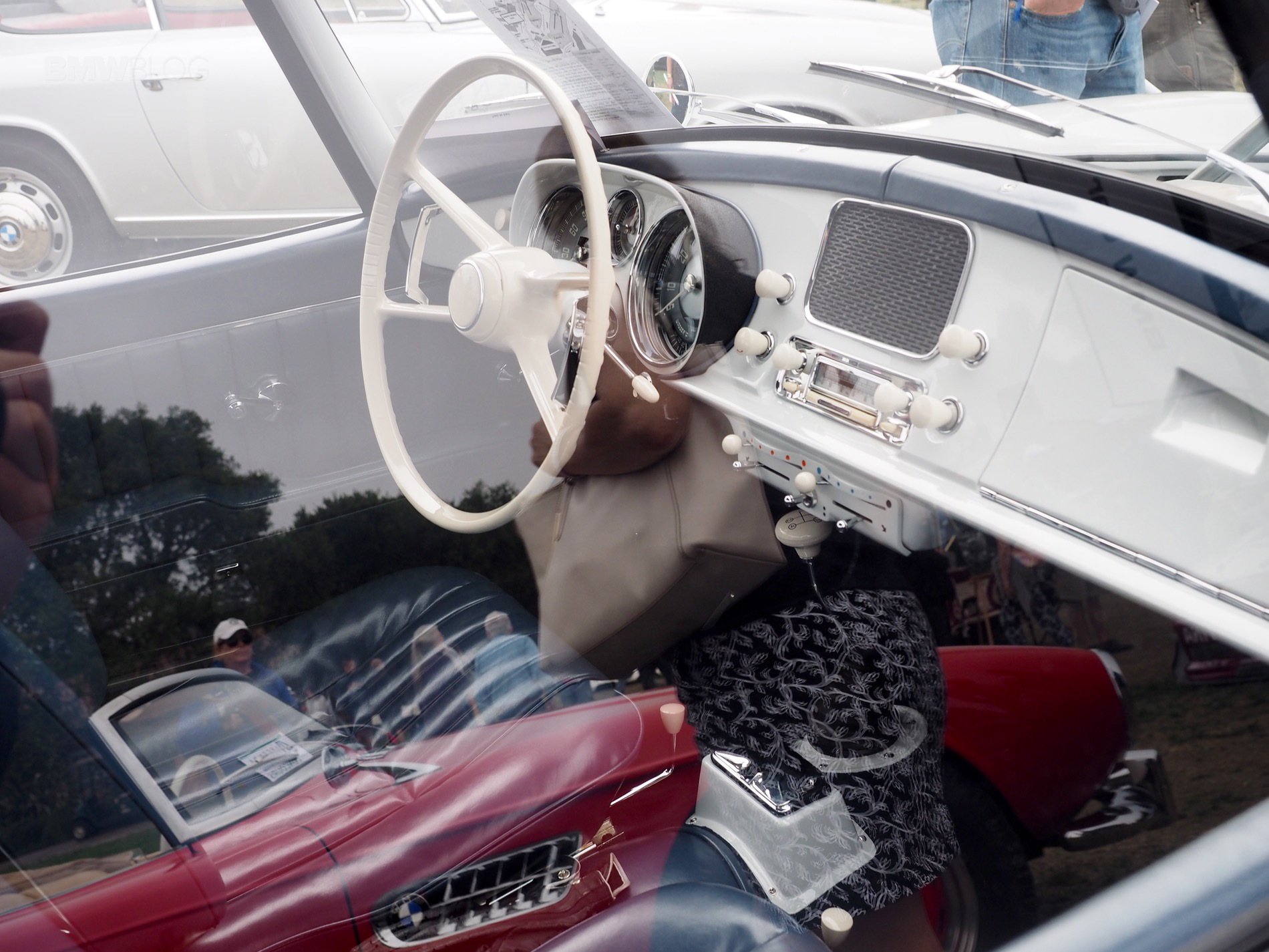 Ron Gilmartin bought the other car, presumably from Jack Castor’s widow, who was with the car on Sunday at Pebble Beach. By the of the week, this freshly restored 507 was driven for all of 24 km. The Gilmartin car is Ash White, which has a bit of grey in it. The Elvis car is Feather White, which is more beige.