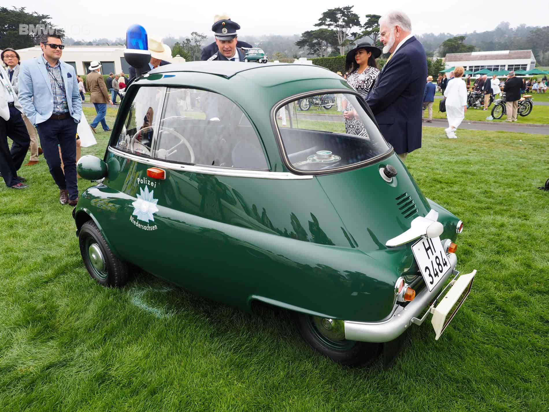 A cute, little BMW Isetta Police Car was the darling this year at the 2016 Pebble Beach Concours d’Elegance. A crowd favorite, the green-painted Isetta Police Car came with its own police officer, dressed up in the Lower Saxony old school police uniform. The car was equipped with the typical police lights system on top of the roof and was in absolute mint condition.