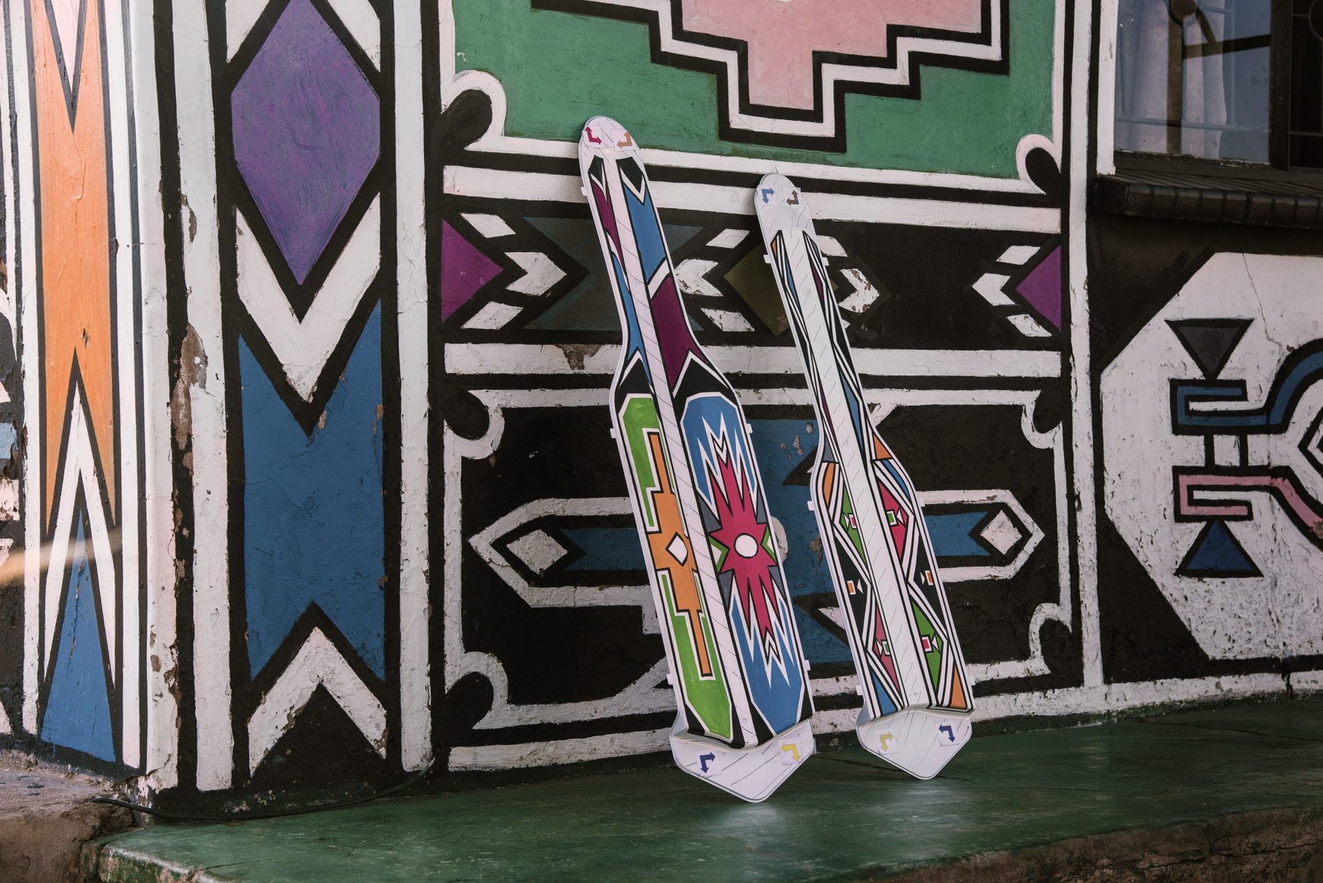 Esther Mahlangu was born a member of the Ndebele tribe in 1935 in Middelburg, a small town in the north-eastern province of Mpumalanga. At the early age of 10, she began to paint under the guidance of her mother and grandmother.