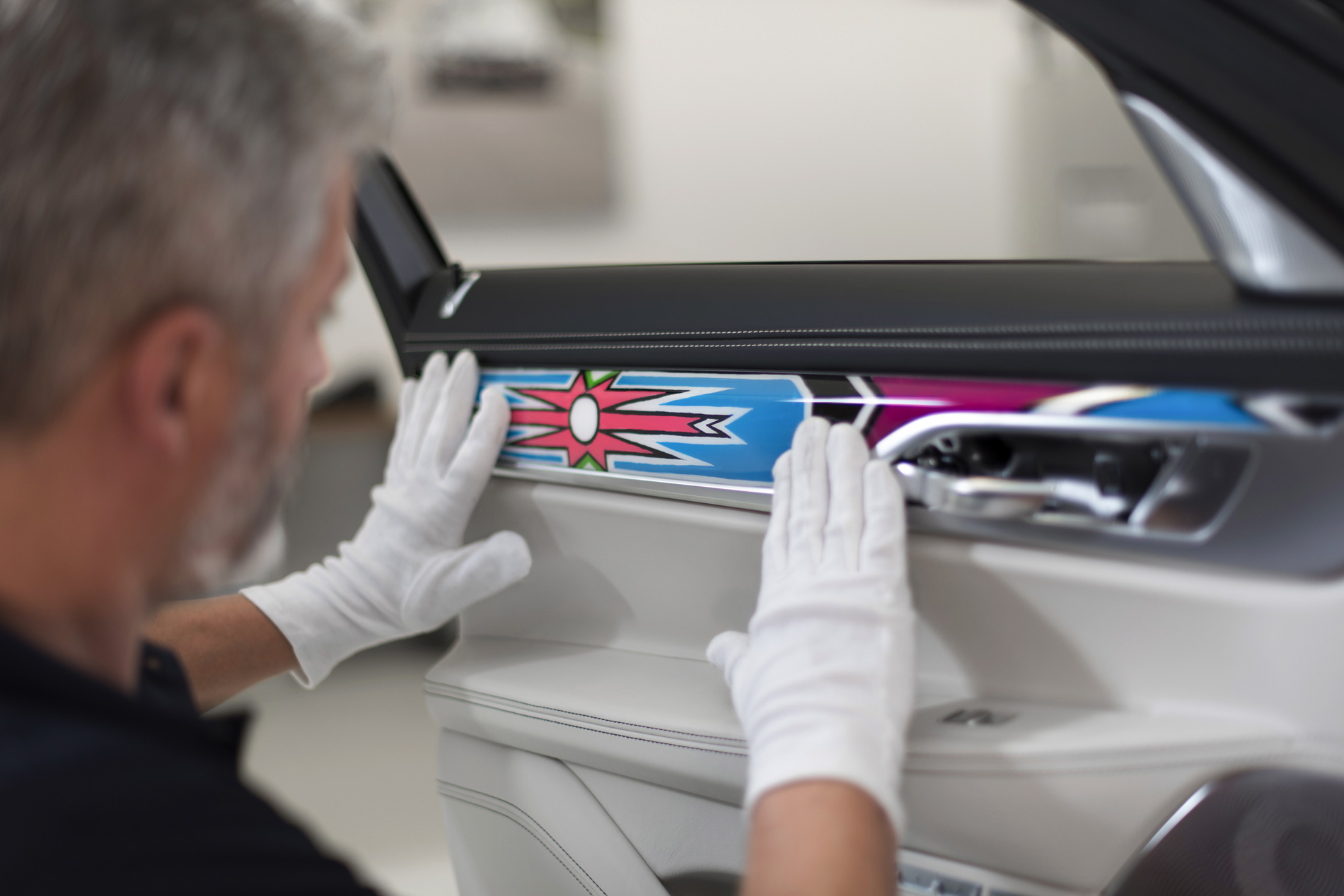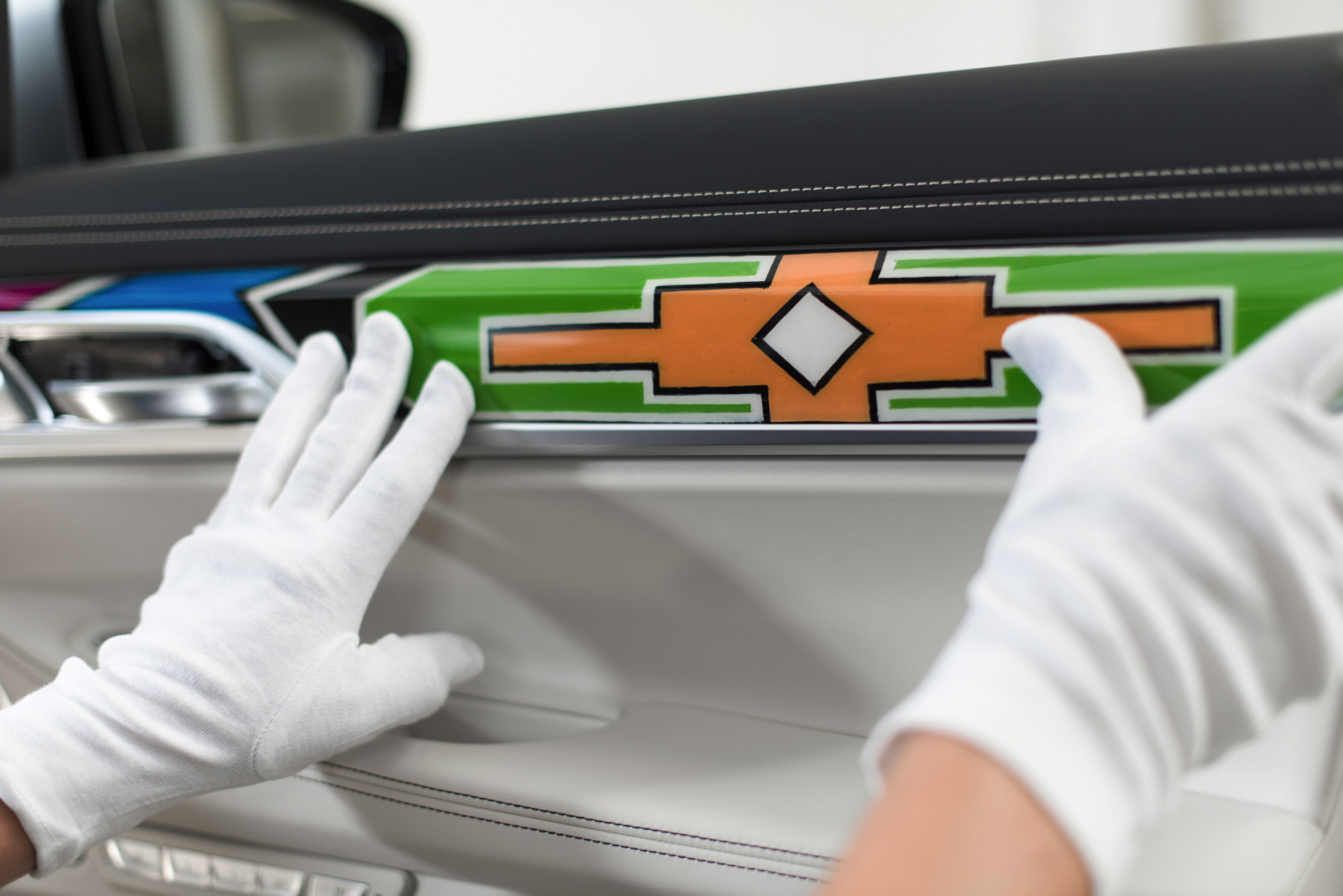 The 81-year-old artist said: “To paint is in my heart and it’s in my blood. The way I paint was taught to me by my mother and my grandmother. The images and colours have changed and I have painted on many different surfaces and objects but I still love to paint. The patterns I have used on the BMW parts marry tradition to the essence of BMW. When BMW sent me the panels to paint, I could see the design in my head and I just wanted to get started! I start by painting the small ones first to get the feel of the surface and then it was easy as the design follows the lines of the panels.