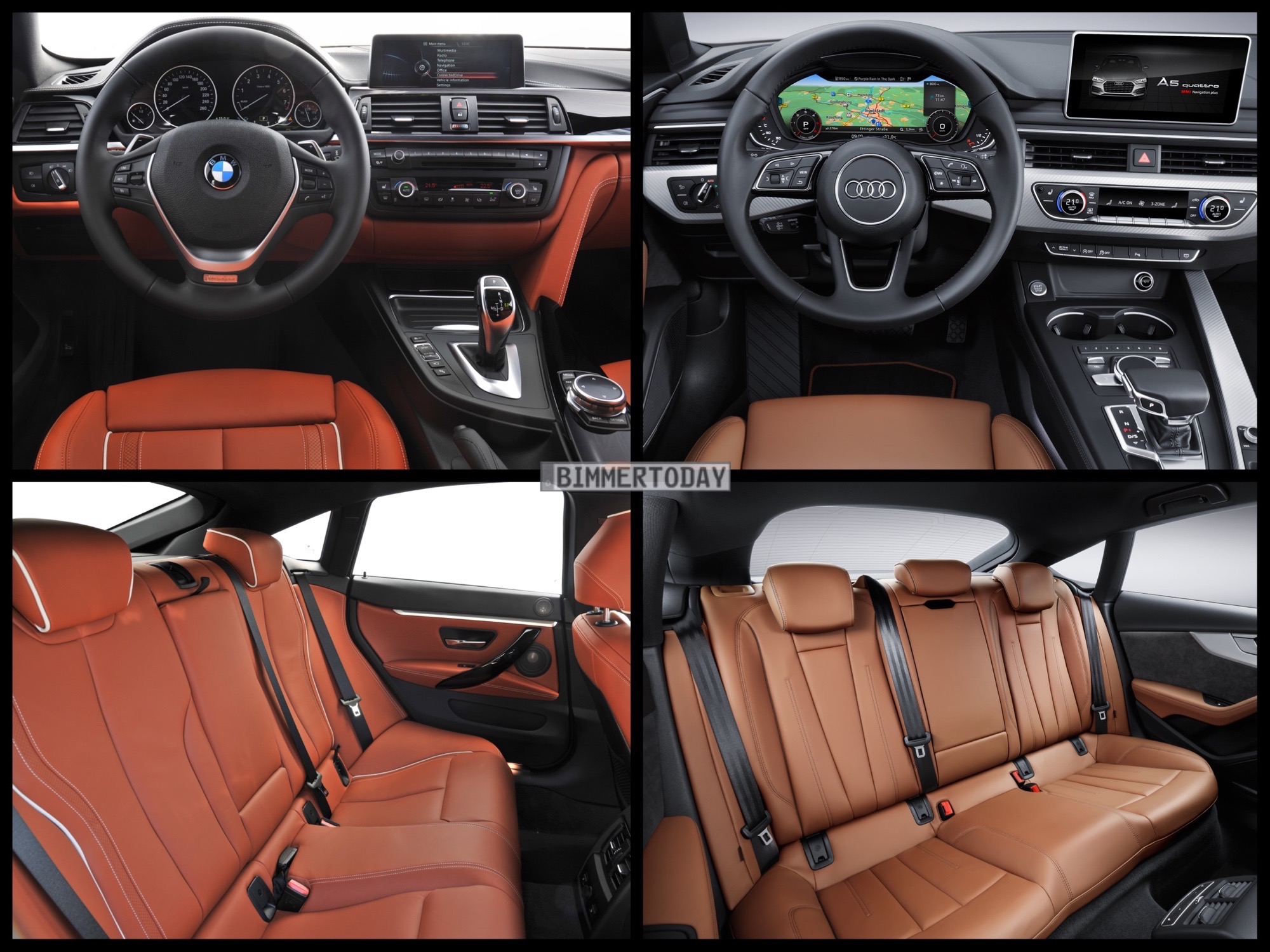 From the front, it’s business as usual for both cars, so there’s really nothing new to see. It’s from the B-pillar back that interests us today. Personally, I actually feel that the A5 Sportback is the better looking car in profile. It looks more like it was designed for four-door use from the beginning, whereas the 4 Series GC sort of looks forced. The 4 Series GC also looks a bit taller and less sporty, while the A5 Sportback looks lower and sleeker. The Audi also has a more muscular set of rear haunches.