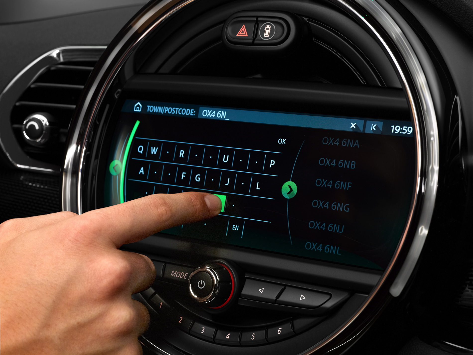 MINI’s JCW Clubman includes characteristic interior design in sports-car style, like the sports seats in Dinamica/fabric and Carbon Black with integrated headrests, John Cooper Works door sill finishers, roof liner in anthracite, John Cooper Works leather steering wheel with multifunction buttons and shift paddles in conjunction with the 8-speed Steptronic sports transmission, gear lever or selector lever and cockpit displays in model-specific design, pedals and driver footrest in stainless steel.