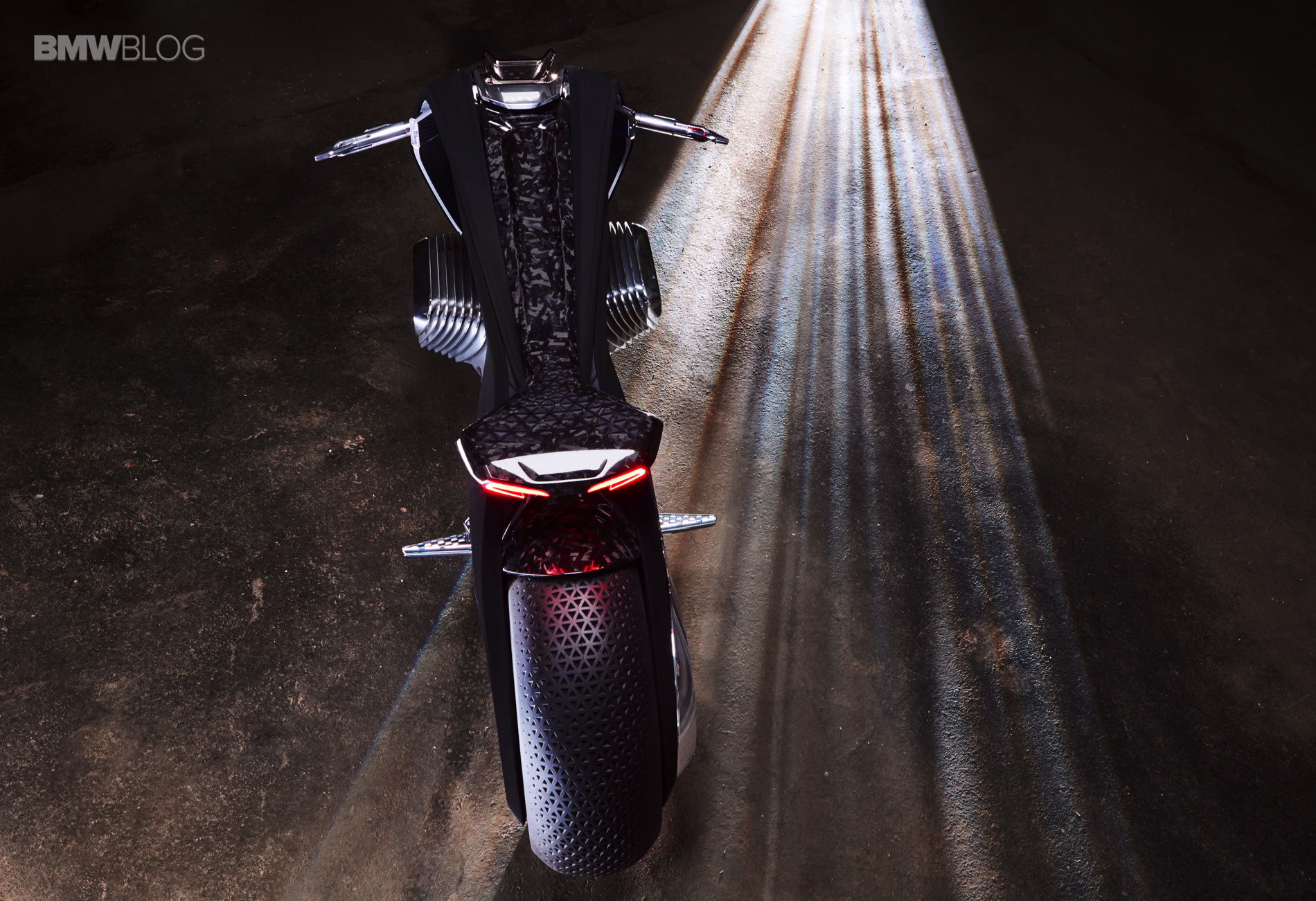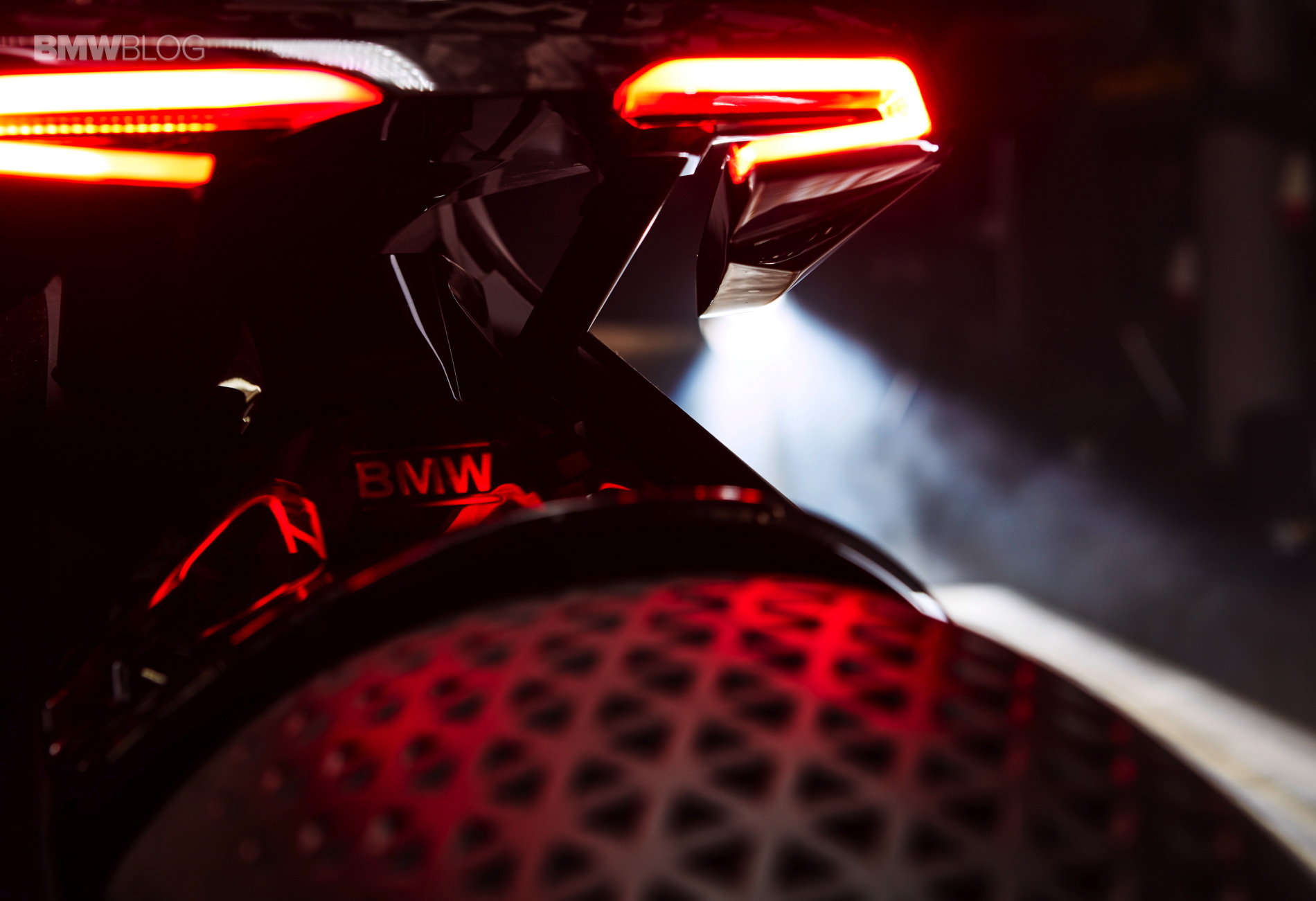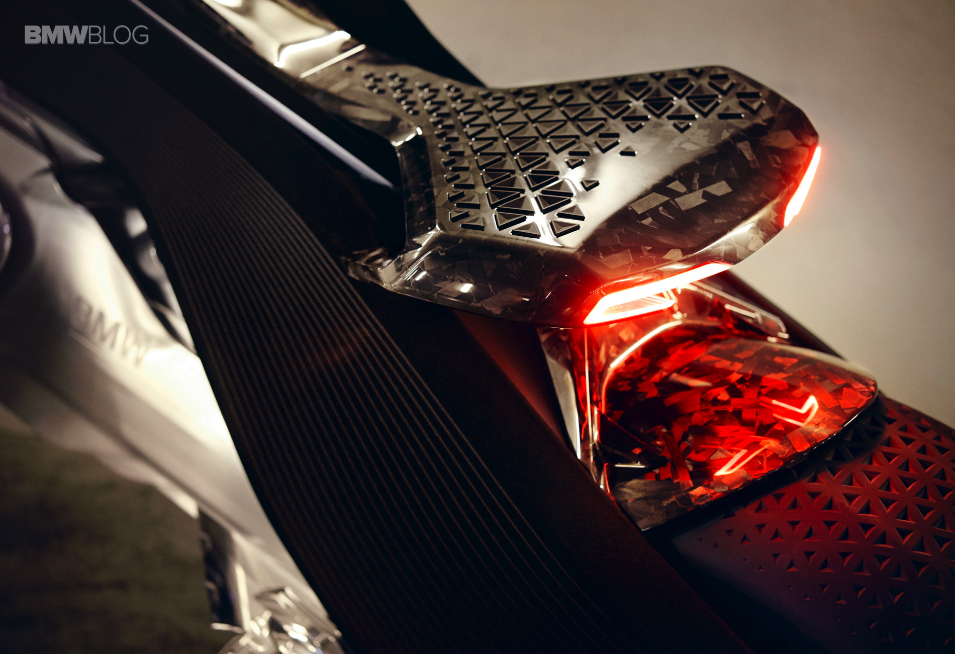 Beneath the seat shell, two fine, red, illuminated strips form the rear light and indicators – picking up on the typical double-C form of the rear lights on today’s BMW Motorrad bikes – but with a new, futuristic twist.