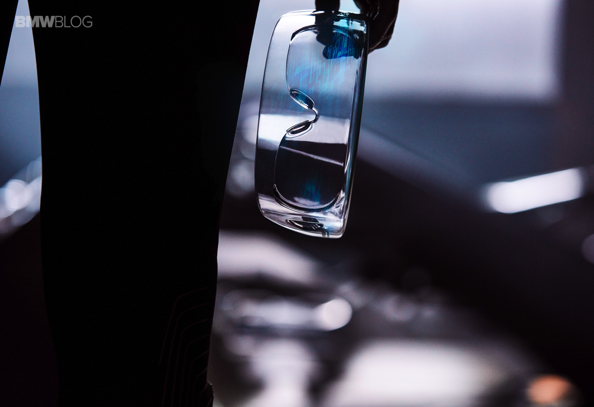 Information exchanges between rider and bike take place largely via the visor. This essentially consists of a pair of data glasses that extends across the wearer’s entire field of vision. As well as providing wind protection, it shows relevant data in one of four designated display areas. These are controlled by the rider’s eye movements: looking up or down changes the content that appears, and looking straight ahead switches the information off completely, leaving the rider to focus even more fully on biking experience. Information is only projected onto the visor on request, or to alert the rider to the fact that action is needed.