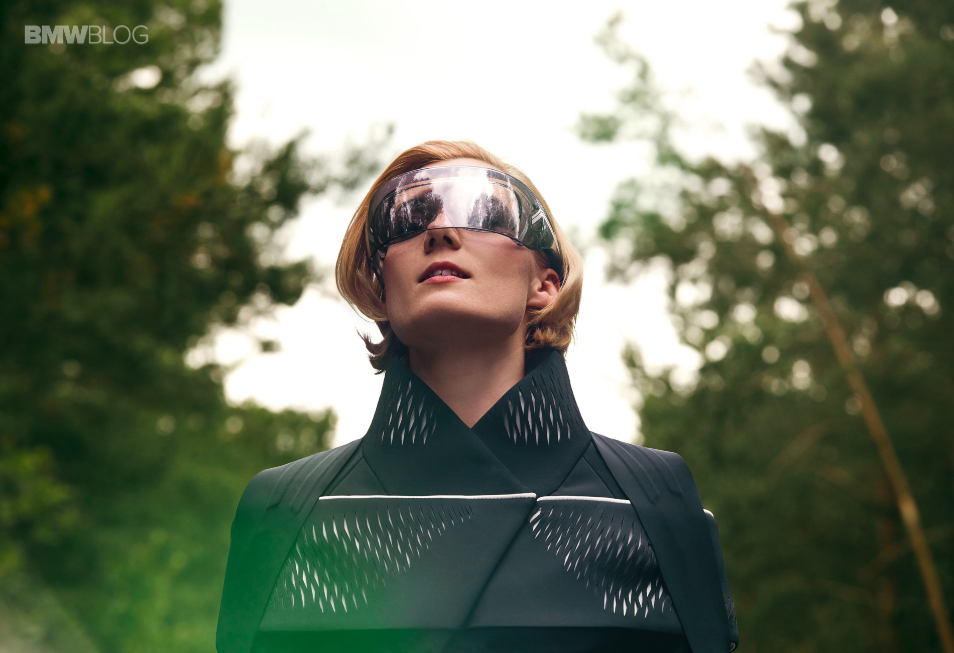 The rider’s gear accompanying the BMW Motorrad VISION NEXT 100 is integral to the unique overall experience. In classic black and white, the airy suit enhances the sense of freedom and is both fashion statement and weather- wear. Depending on conditions, it warms or cools the user. While the diagonal zipper across the chest is reminiscent of traditional motorcycle clothing, the flexible, banded structure of the suit and shoes is inspired by the muscle areas of the human body and provides body support and relief whenever needed.