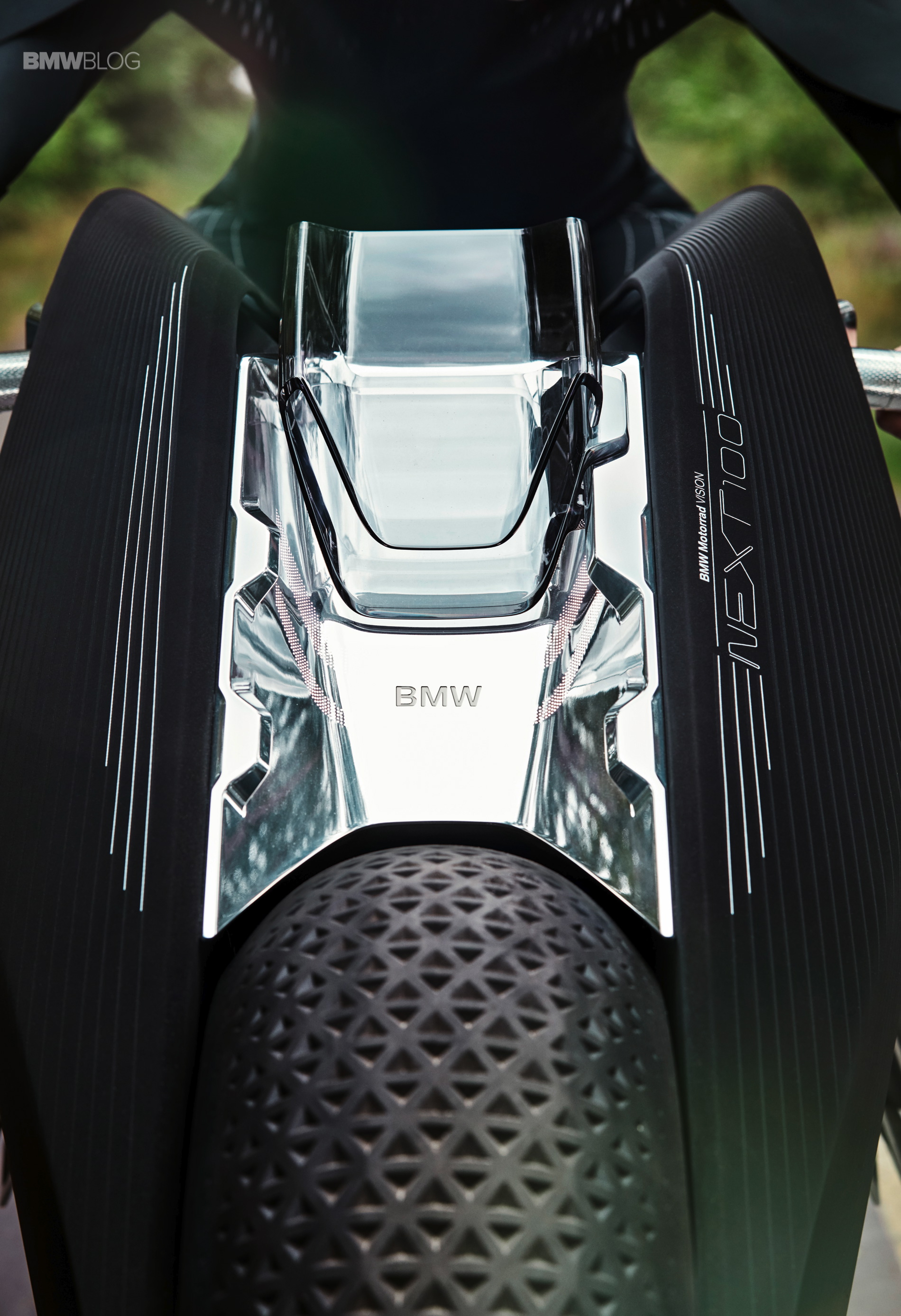 BMW’s VISION 100 bike employs active assistance systems of the future which will also enhance stability and safety by automatically balancing the motorcycle, both out on the road and when stationary. Novice riders will benefit from additional guidance in all riding situations and from a bike that will never tip over.
