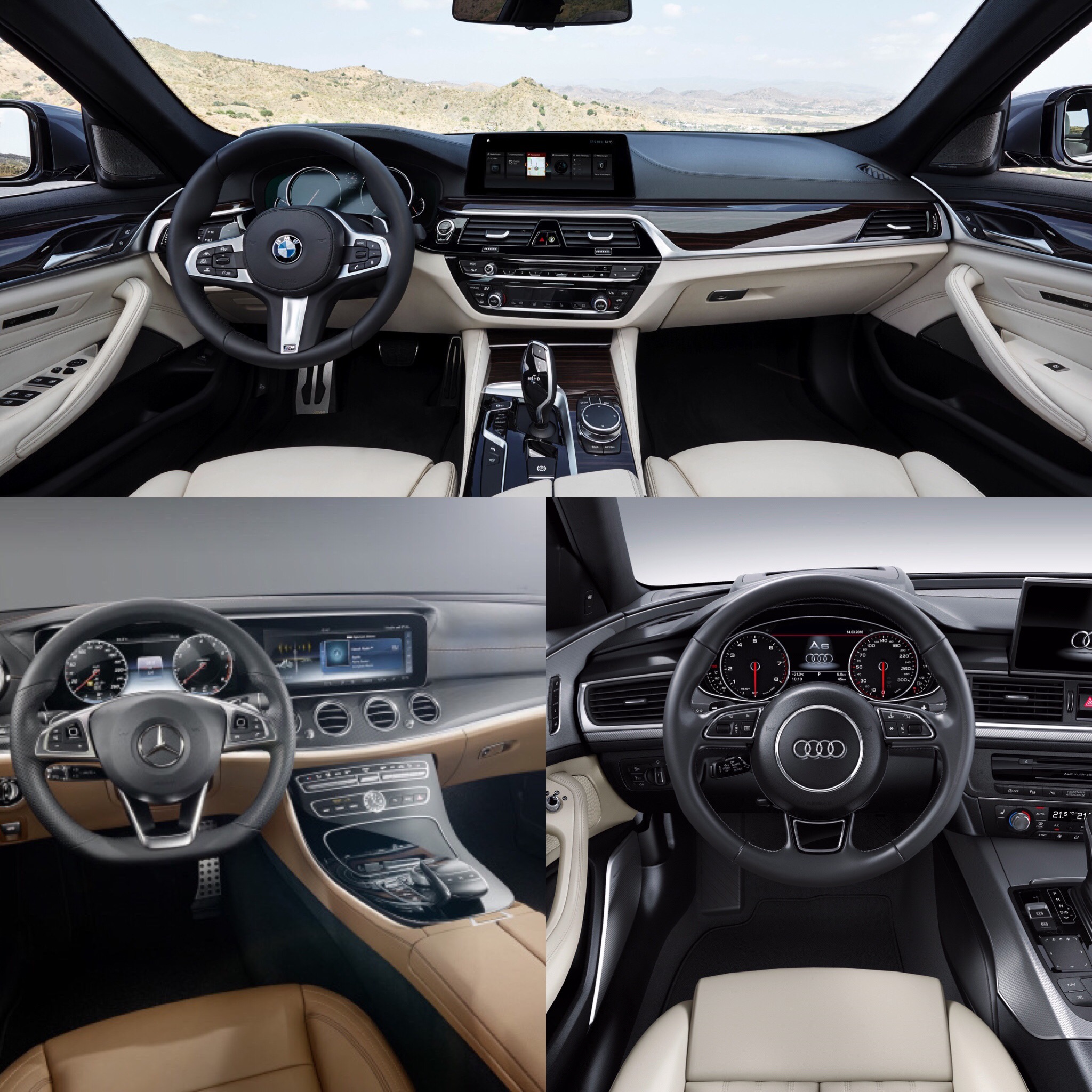 From the front, in this humble man’s opinion, it’s the BMW 5 Series that looks best, with the Audi A6 a close second and the E-Class a distant third. The reason being is that both the 5 Series and A6 are more visually exciting up front. The E-Class is a bit staid, though it is intentionally so. So that’s not a knock against Merc’s styling department but a matter of subjective opinion. But the new 5er, with its wide headlights and aggressive front fascia, is the looker of the bunch.