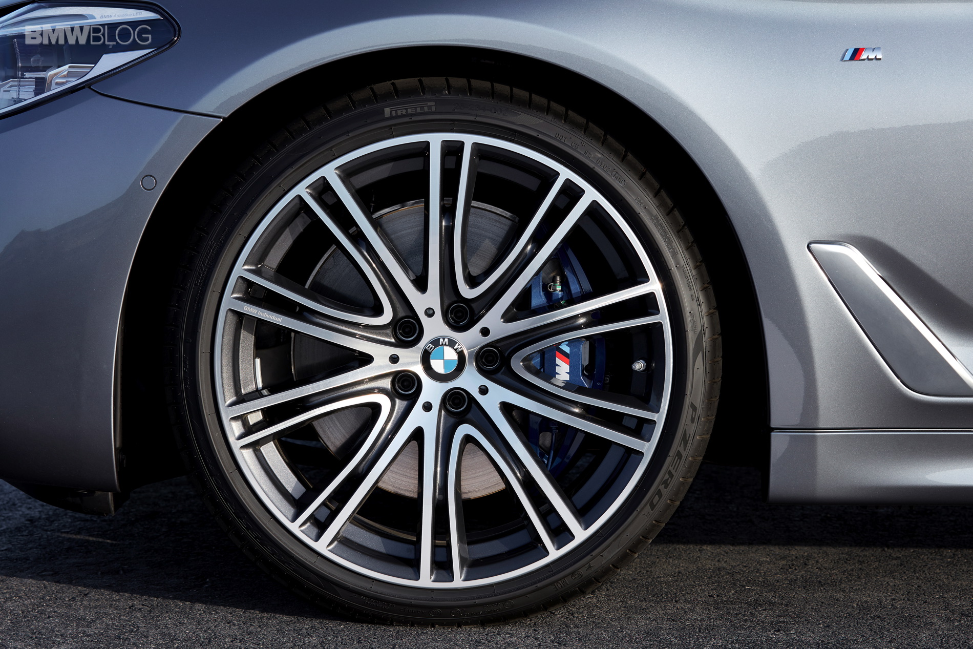 Two non-metallic and 11 metallic color shades are available for the new BMW 5 Series, and six BMW Individual paint finishes and two BMW Individual Frozen paint finishes will join the selection over the course of 2017. Customers can choose from a total of 17 different light-alloy wheels (17-inch to 20-inch). And the Original BMW Accessories range offers another three complete wheel sets in 20-inch format.