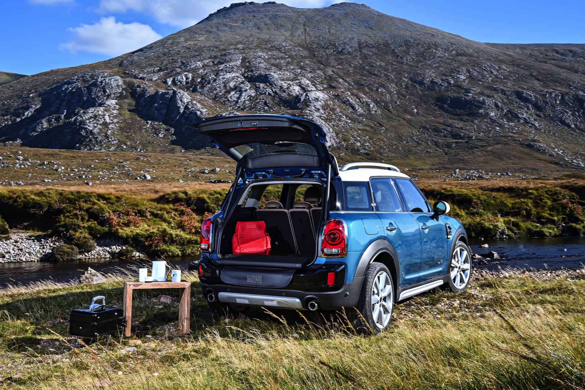 Based on BMW’s UKL architecture, the new MINI Countryman measures 7.8 inches longer than the outgoing model, a full inch wider and its wheelbase has grown 2.9 inches. This increase in size has dramatically increased interior passenger and cargo space as well as now offering five fully-fledged seats. The seating position is also higher, now, offering a more SUV-like seating height to aid in outward visibility. In the rear, the seats can slide longitudinally, fore and aft, by up to five inches. The rear seatbacks can recline and also fold flat, with a 40:20:40 split. To aid in its outdoors image, a new Picnic Bench option is available, which provides a padded cushion for the rear tailgate so passengers can sit and rest while the car is parked and maybe enjoy some lunch outdoors.