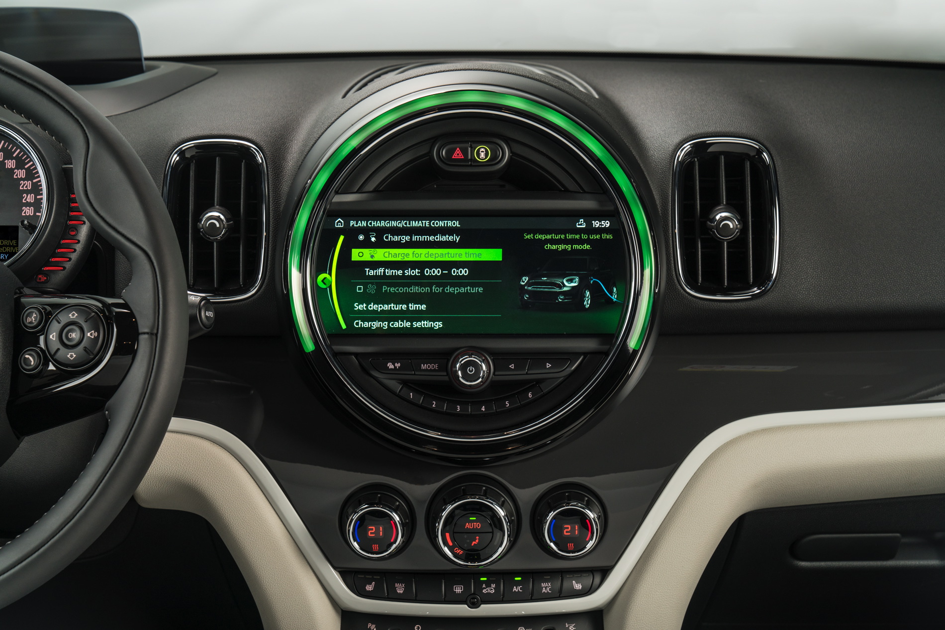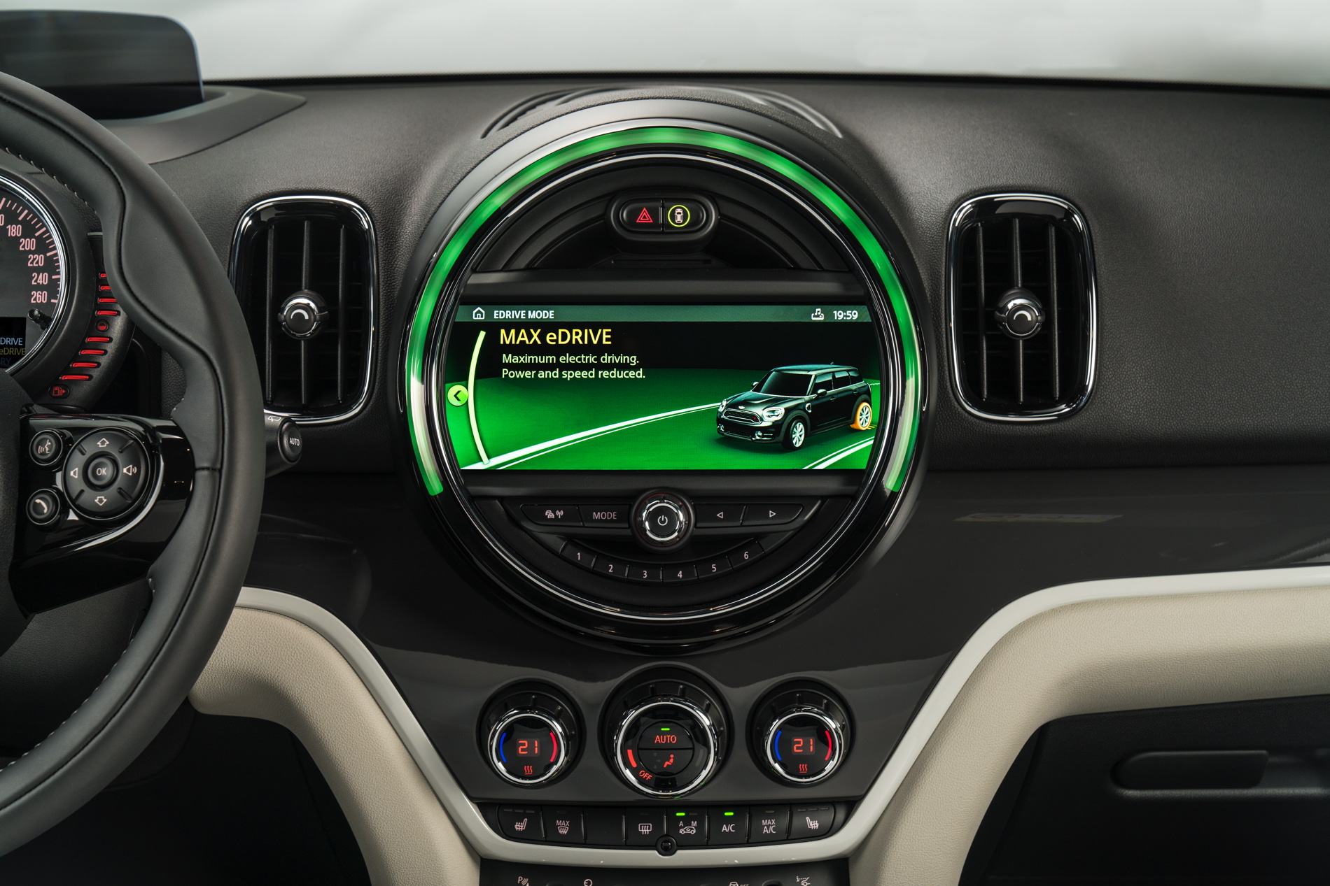The typical MINI Dynamic Damper Control will be available and will adjustable via MINI’s rotary switch around the gear lever. This will control the three usual flavors of MID, SPORT and GREEN. MID is the normal mode, or “Comfort” in BMW speak, while SPORT is obviously sportier and GREEN is the eco-friendly mode.