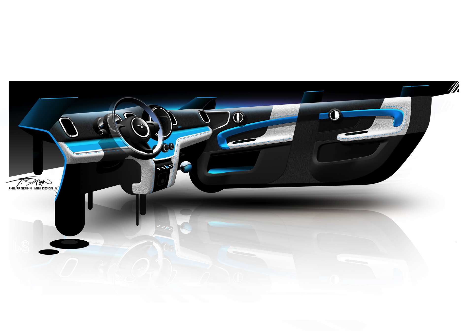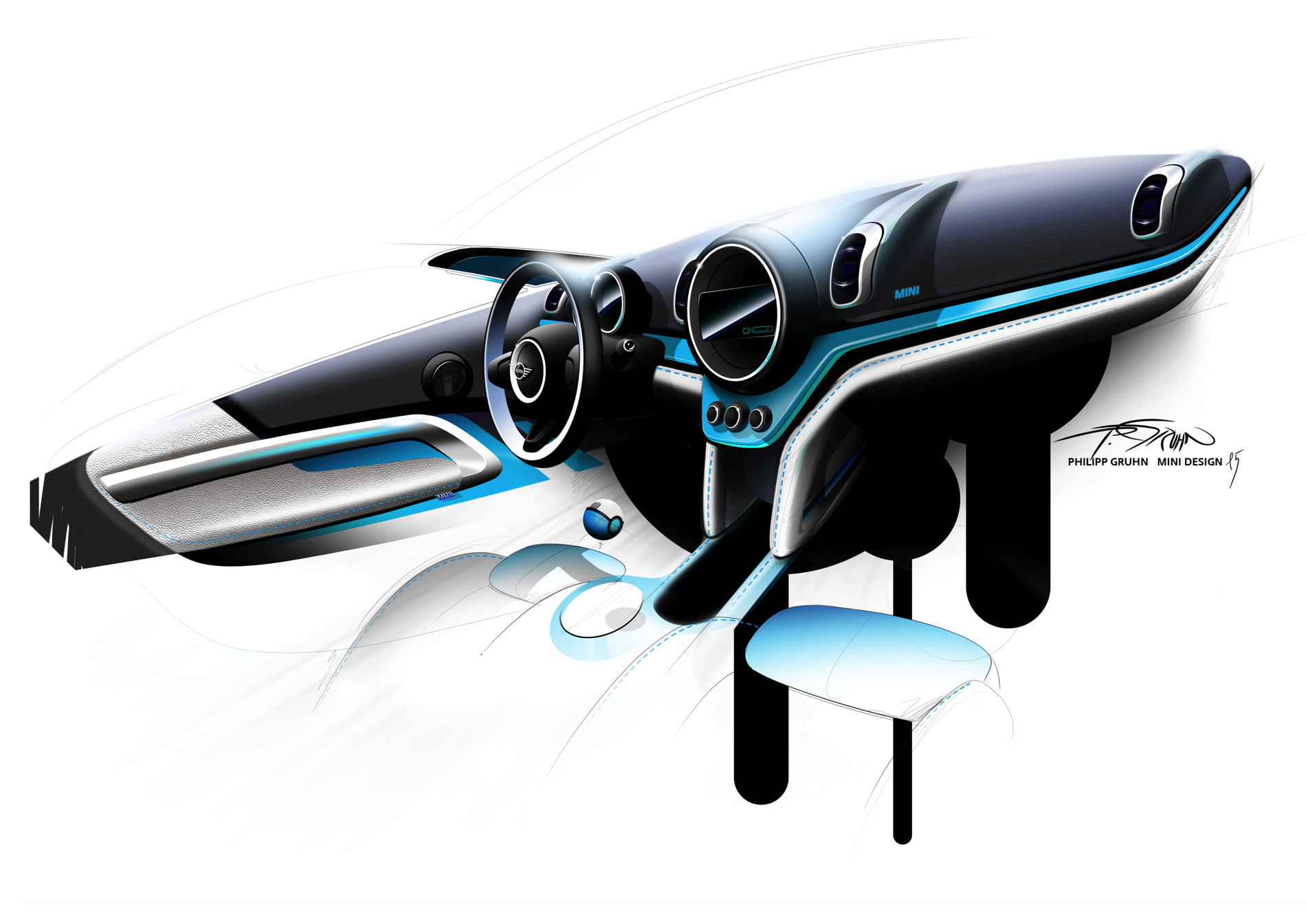 Ever since it was launched in 2010 the MINI Countryman has been winning over drivers with its distinctive design. The second generation of the Sports Activity Vehicle is equally as compact as its successful forebear and makes a convincing statement through its authentic design. “It was clear to us that the new MINI Countryman needed to go a step further aesthetically and yet still remain a MINI,” says Oliver Sieghart, Head of Interior Design at MINI. “In terms of its design, the Countryman is the most rugged and upright model in the MINI family.” Visual anchor points shared elsewhere in the brand family include the floating “helmet roof”, the chrome strip on the shoulderline and the clear silhouette, which incorporates classical MINI design features. And the new MINI Countryman extends the theme, with headlamps fully encircled by daytime driving light rings for the first time. Indeed, the evenly illuminated rings are a signature element, ensuring the striking contours of the headlights are visible during both the day and night.