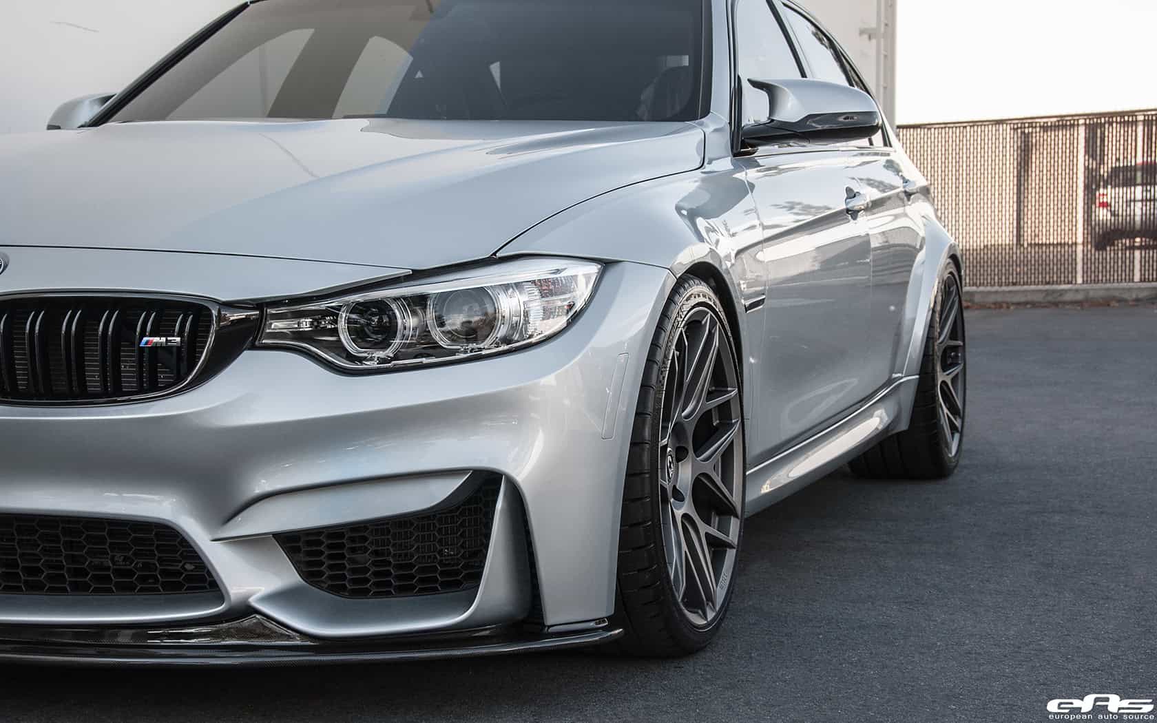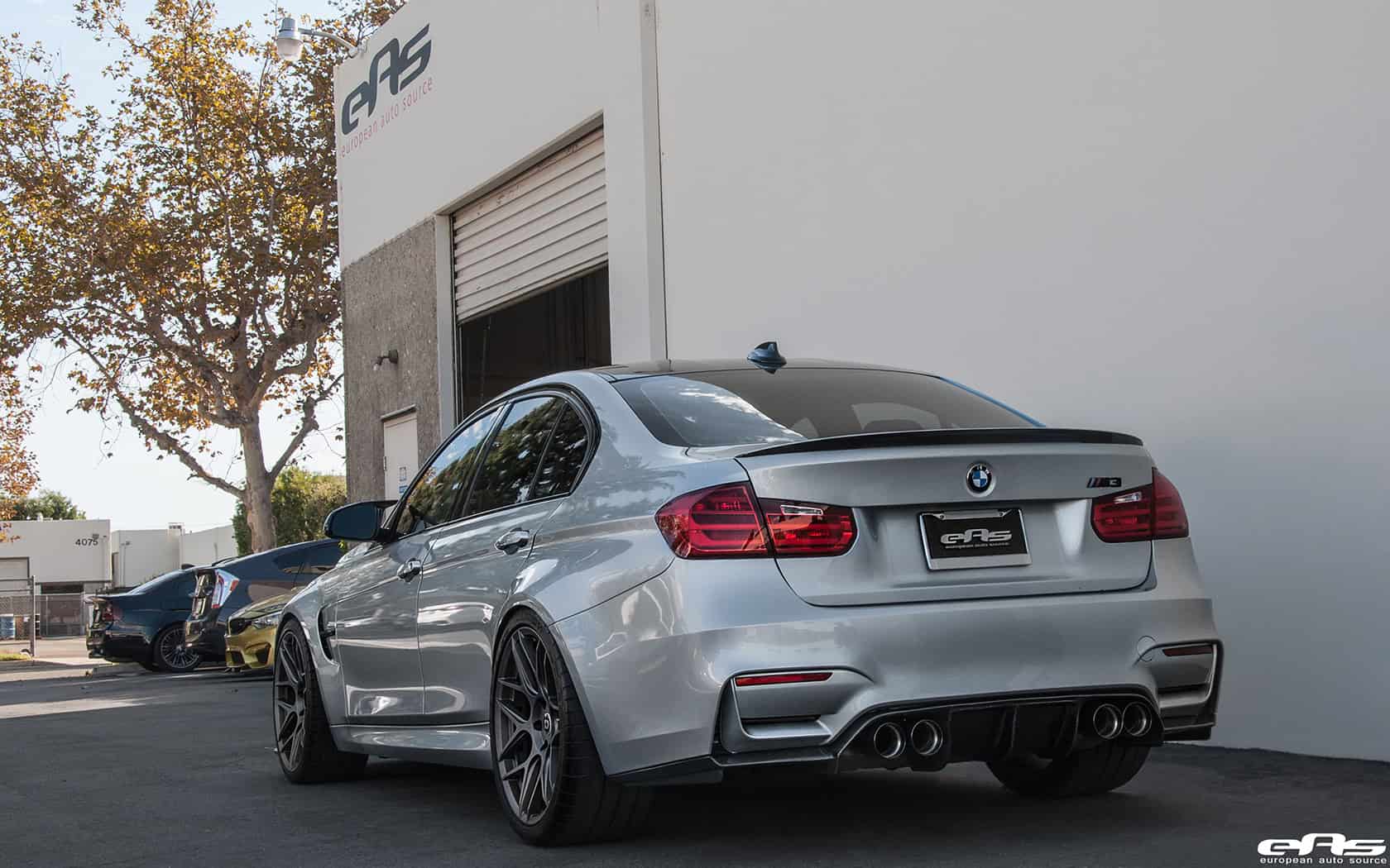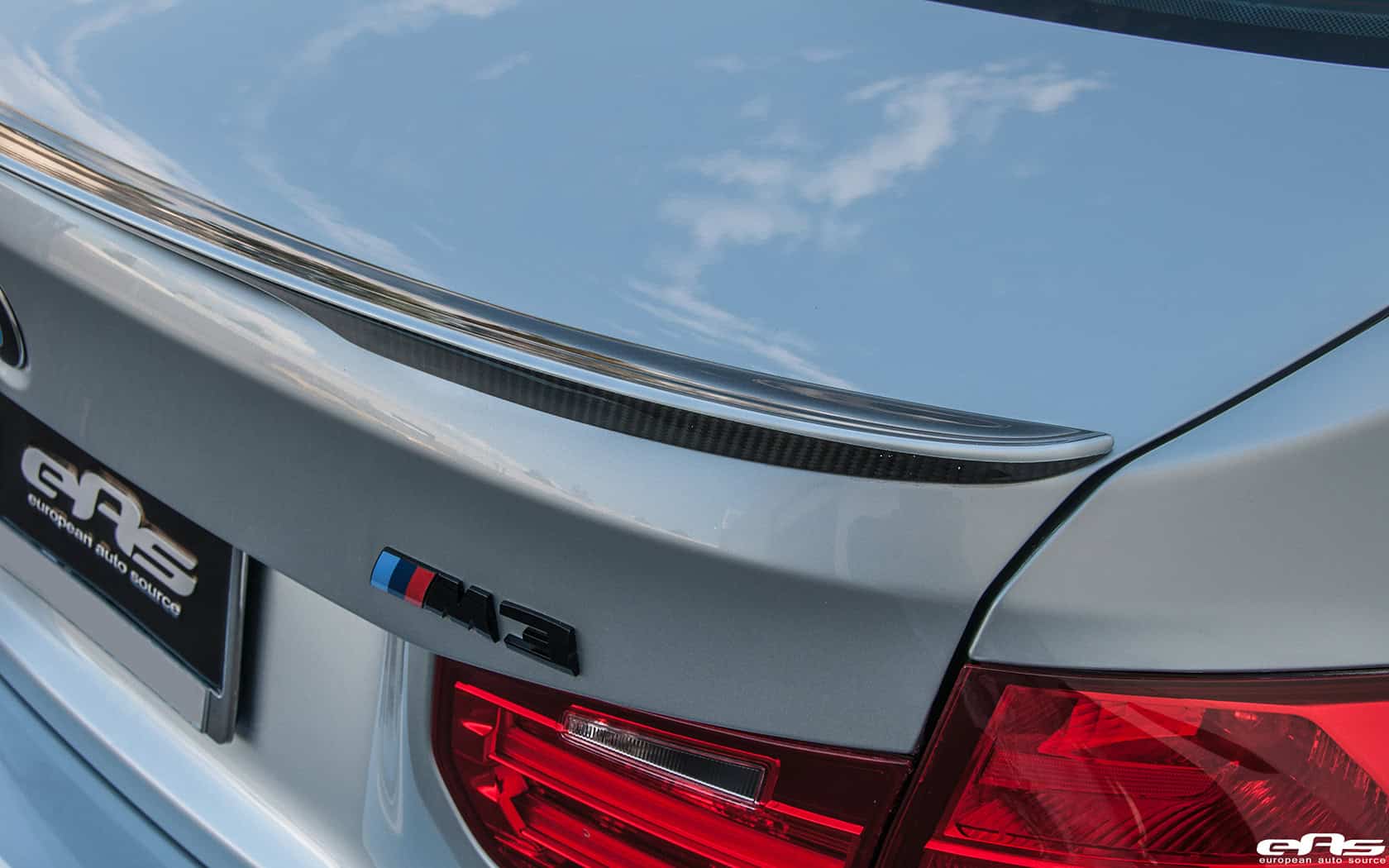 This Silverstone Metallic M3 was named “Elsa.” It has recently joined the very active Orange County Bimmer scene and, within two weeks of hanging out with out owners, the modding craze began. It started slow. First, a set of black kidney grilles were installed. But, as you will see from the media gallery below, the owner was bitten by the modding bug and the exterior mods kept on rolling. After the kidney grille, it was the time to add a gloss black painted trunk badge paired with an M Performance painted carbon fiber spoiler.
